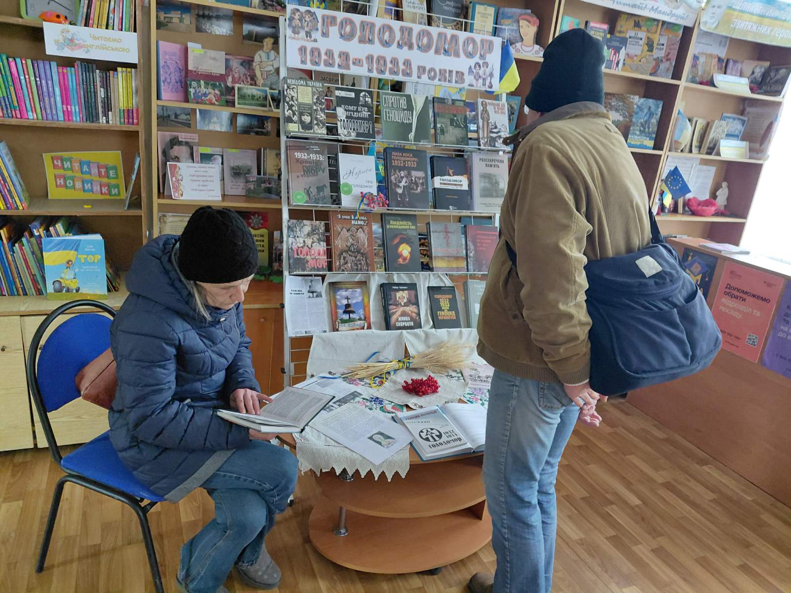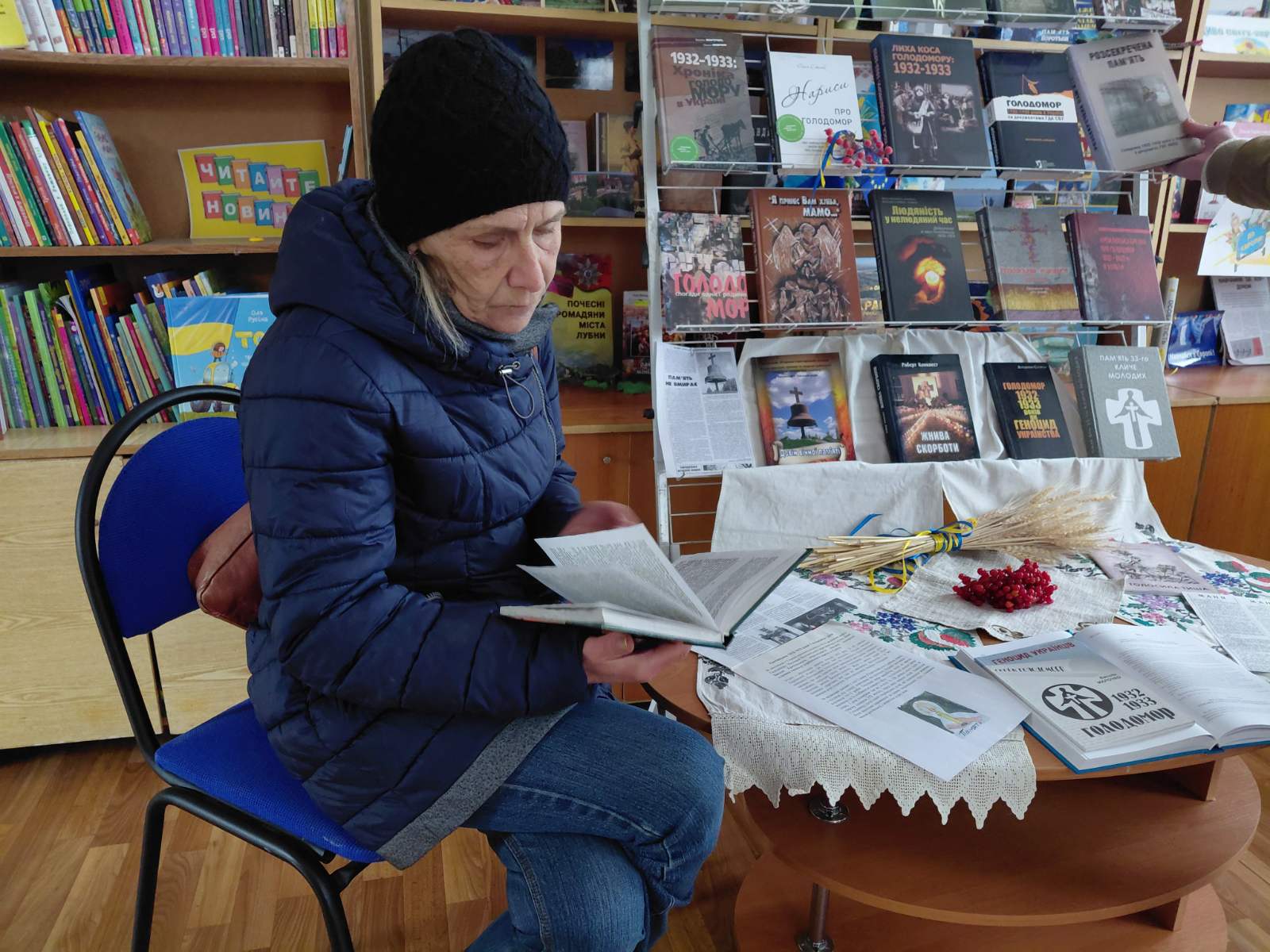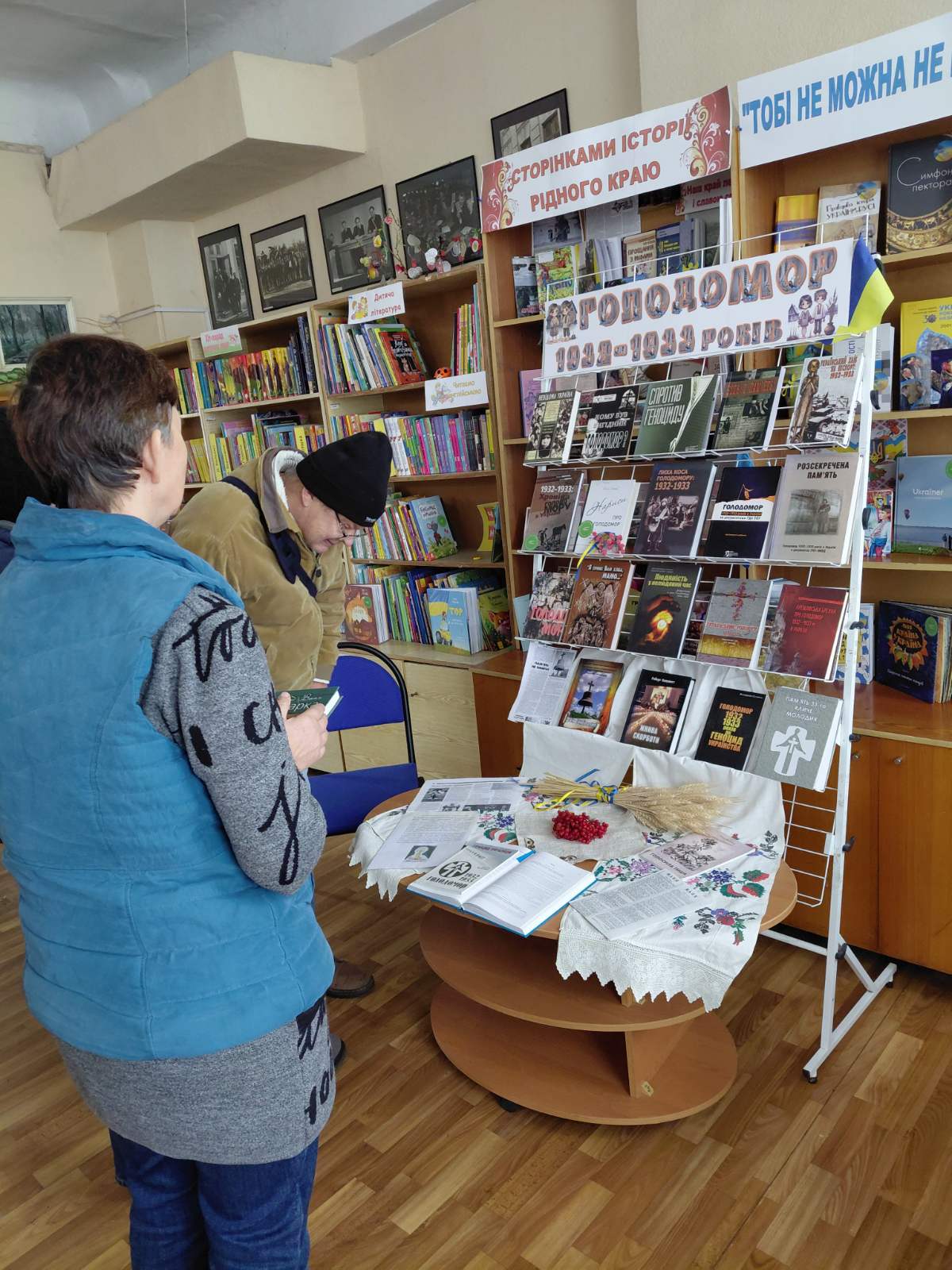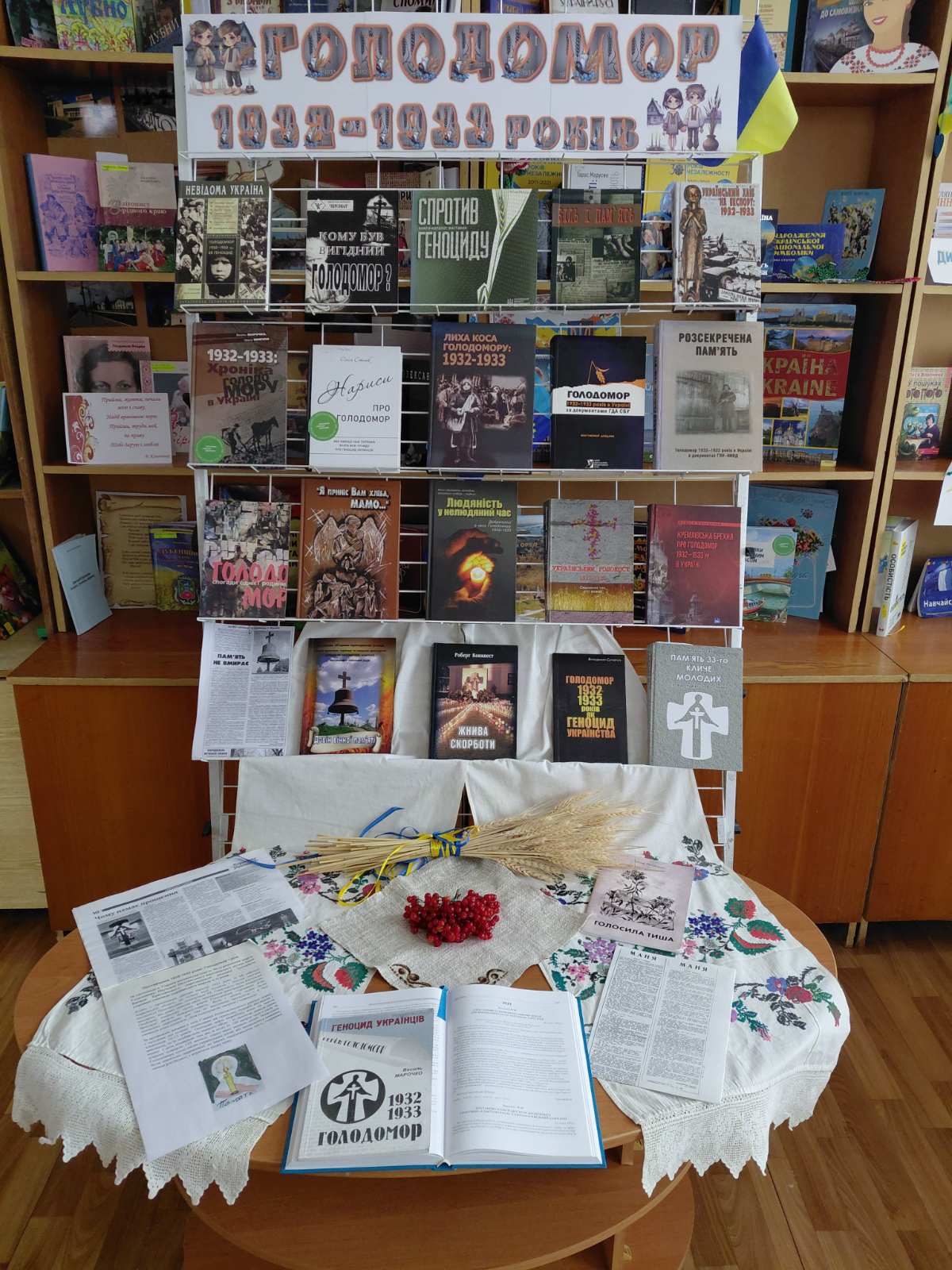 З метою вшанування пам’яті жертв голодоморів на виставці експоновані видання про один з найстрашніших геноцидів українського народу: історичні розвідки, сповіді свідків, документи та художні твори, присвячені пам’яті мучеників 33-го. Окремої уваги читачів заслуговують краєзнавчі матеріали про жахливі наслідки людомору на Лубенщині.
