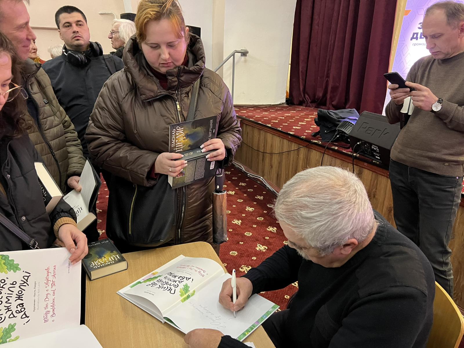 Автор розповів, що роман «Рік Шершня» почався із таємничого дзвінка невідомого, що запропонував показати печеру зустрічі гетьмана Мазепи зі шведським королем. На Шкляра чекала захоплива подорож, під якої сучасний партизан передав давні записи про повстанців 1920-х років. Тож не дивно, що істориків Олександра Карпенка, Наталію Антоненко та письменницю Ганну Кревську зацікавили подробиці документу та можливі зв’язки отаманів Сумщини з Лубенщиною. Живе спілкування, можливість придбати найкраще з доробку письменника та автограф-сесія залишили теплі й незабутні враження від зустрічі. Радіємо, що нині читачі бібліотеки імені Володимира Малика мають вісім книг із автографами Василя Шкляра. А його останній доробок придбали не лише міські, а й сільські бібліотекарі.