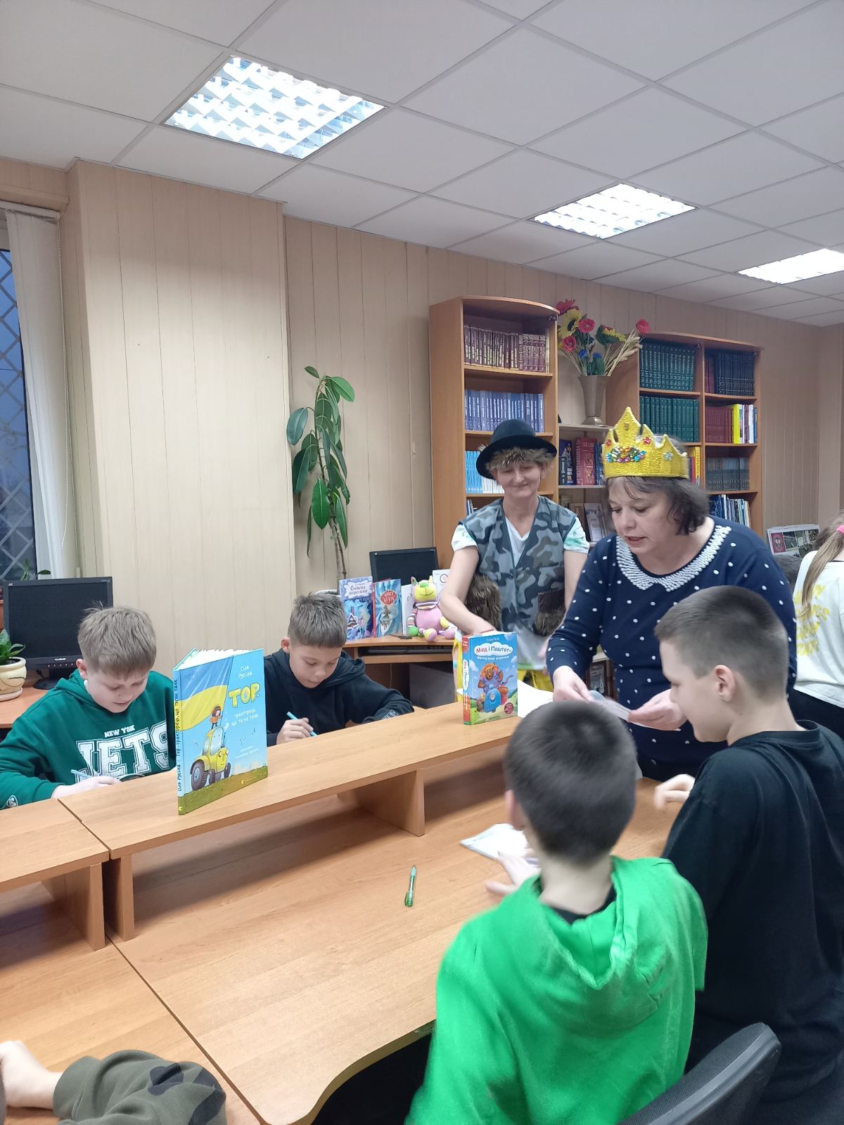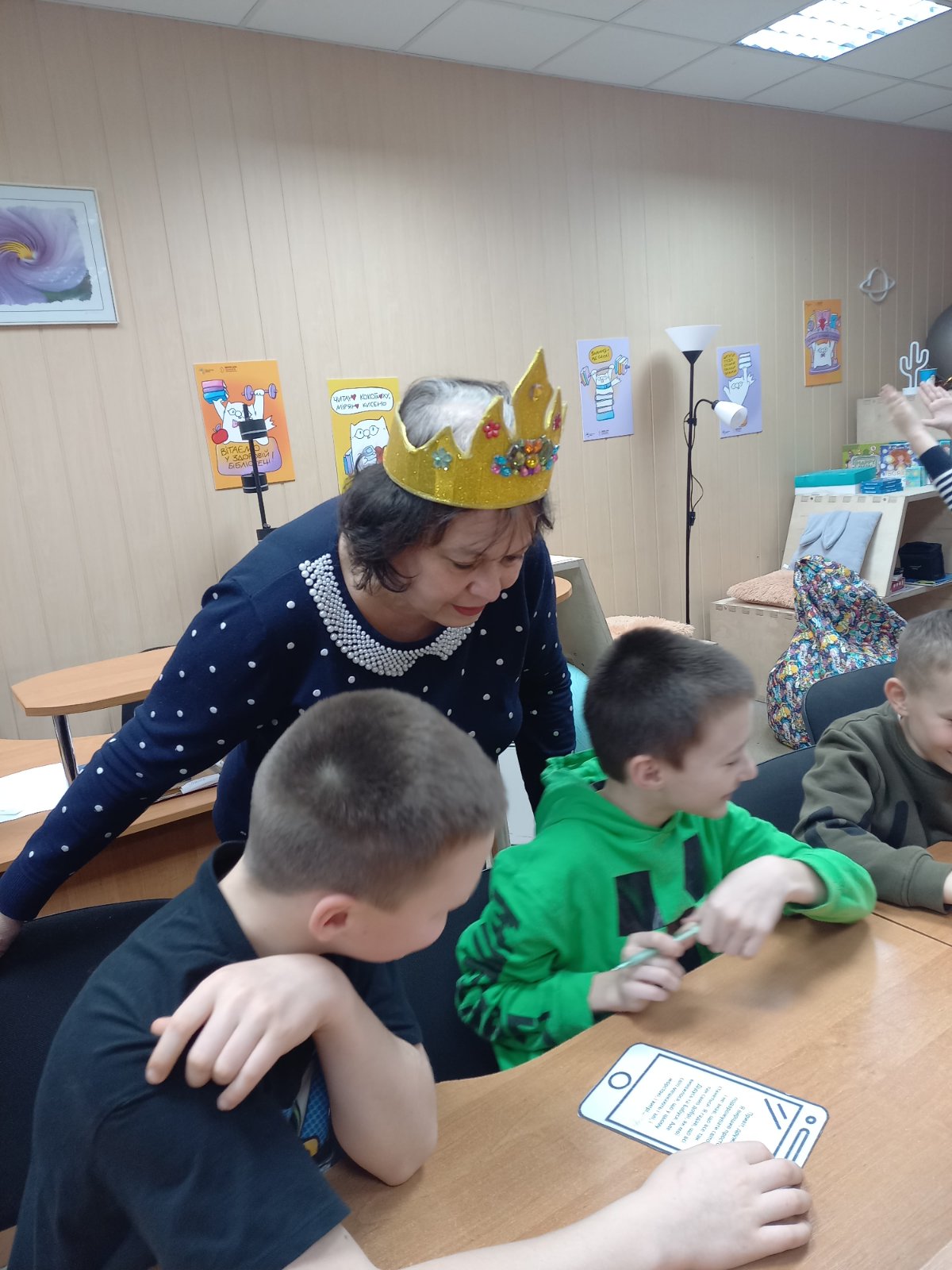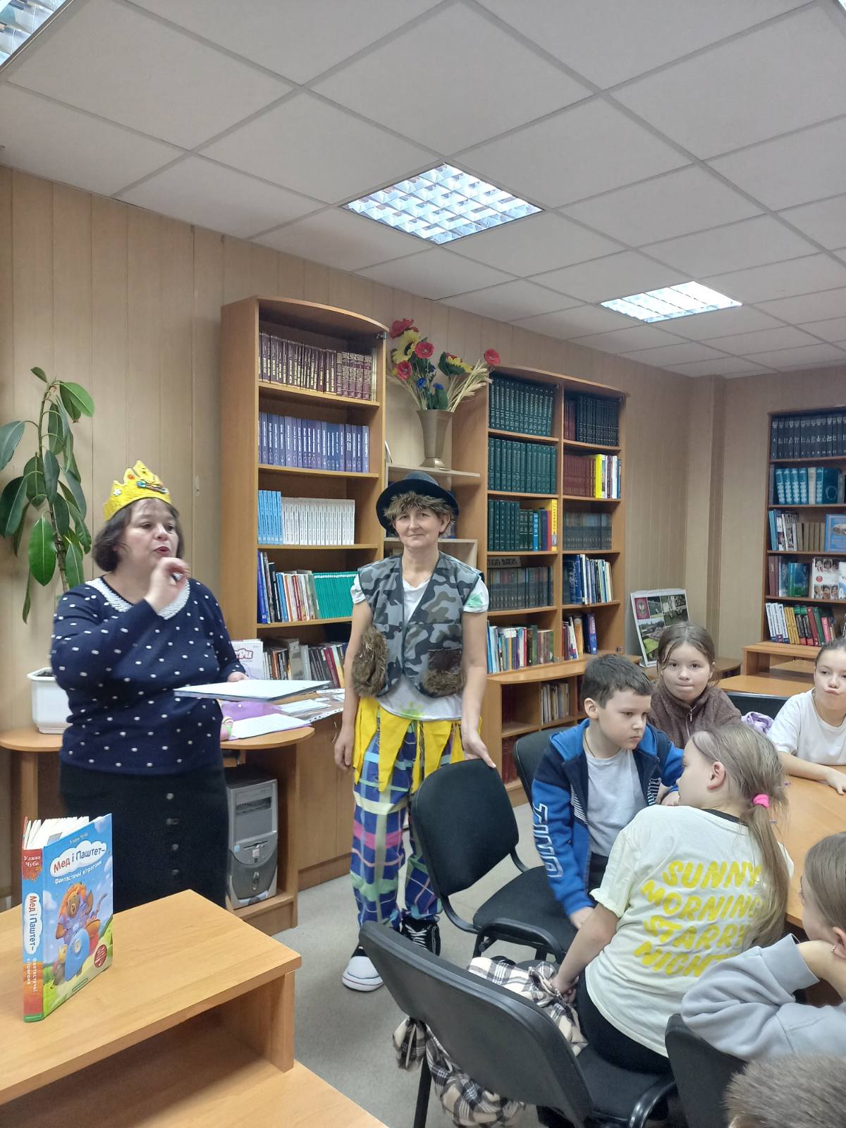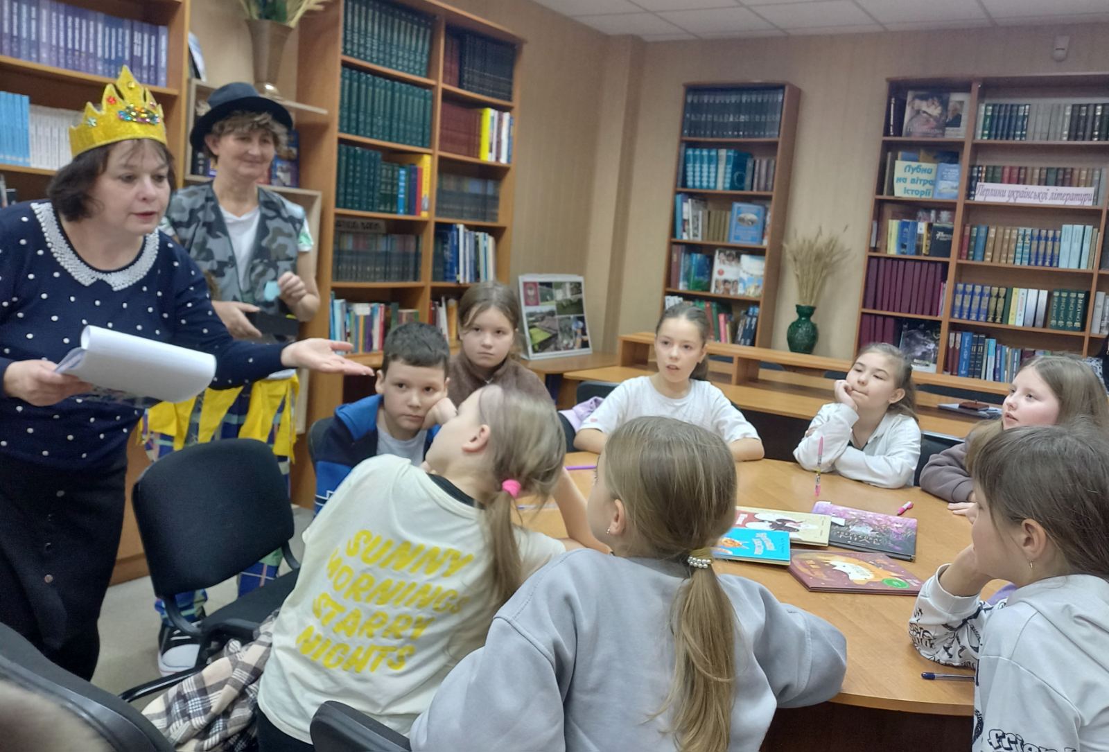 Королева Книг (Сніжана Кириченко) та Котячий Лимерик (Лариса Гончарук) провели читацькі змагання. «Казкознавчики» та «Книголюбчики» вправлялися у знанні українських народних казок, розгадували ребуси «Яка казка заховалася», грали у гру «Загадкові СМС-ки», «Впізнай книжку» та «Реклама улюбленої книжки». А за свої знання та кмітливість отримали солодкі призи. Книги допомагають бути поруч, навіть коли нас розділяють кілометри чи різні життєві шляхи. Спільне читання – спосіб говорити мовою серця поруч і на відстані, знайти одне одного між сторінками улюблених книжок.