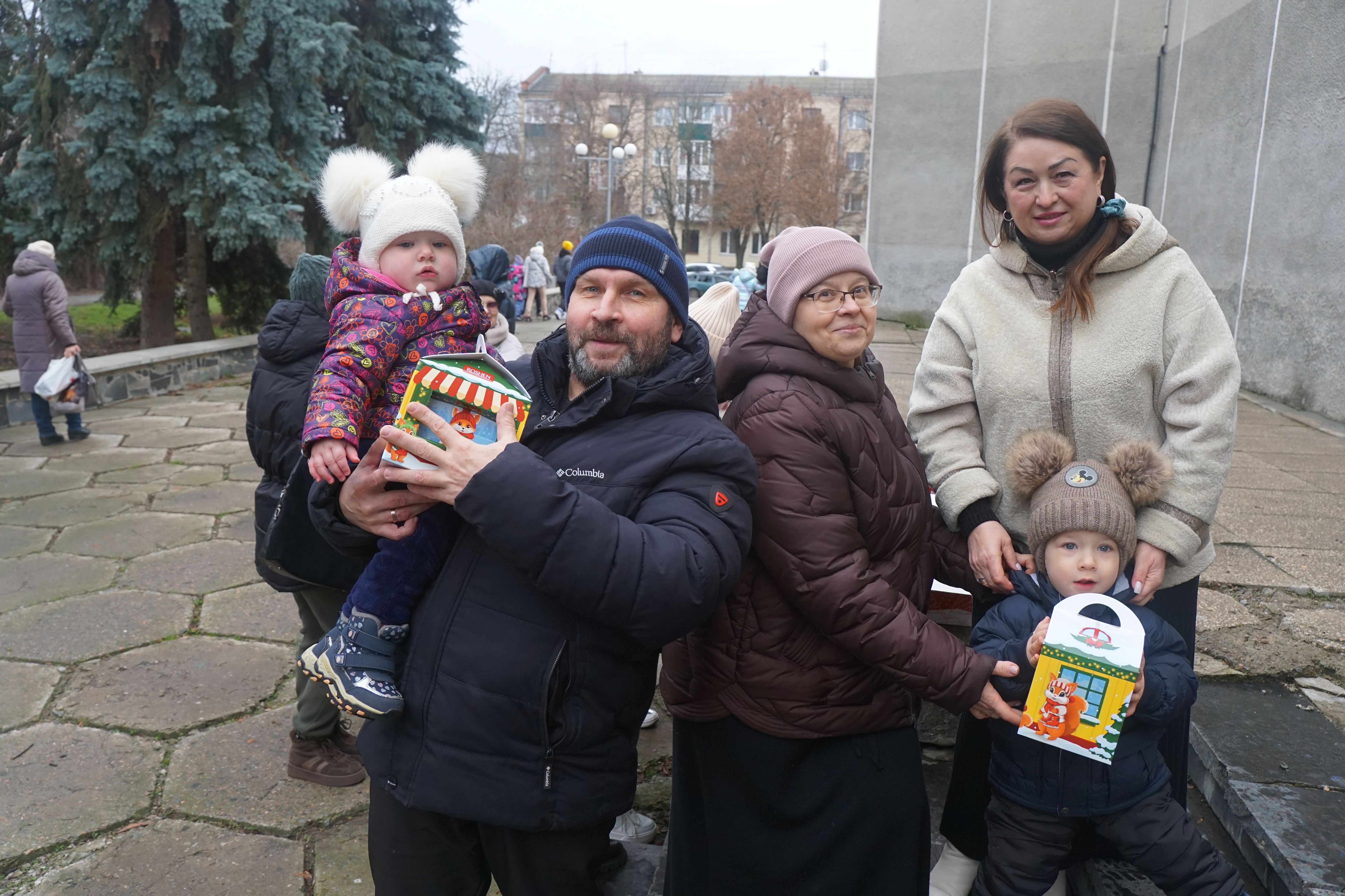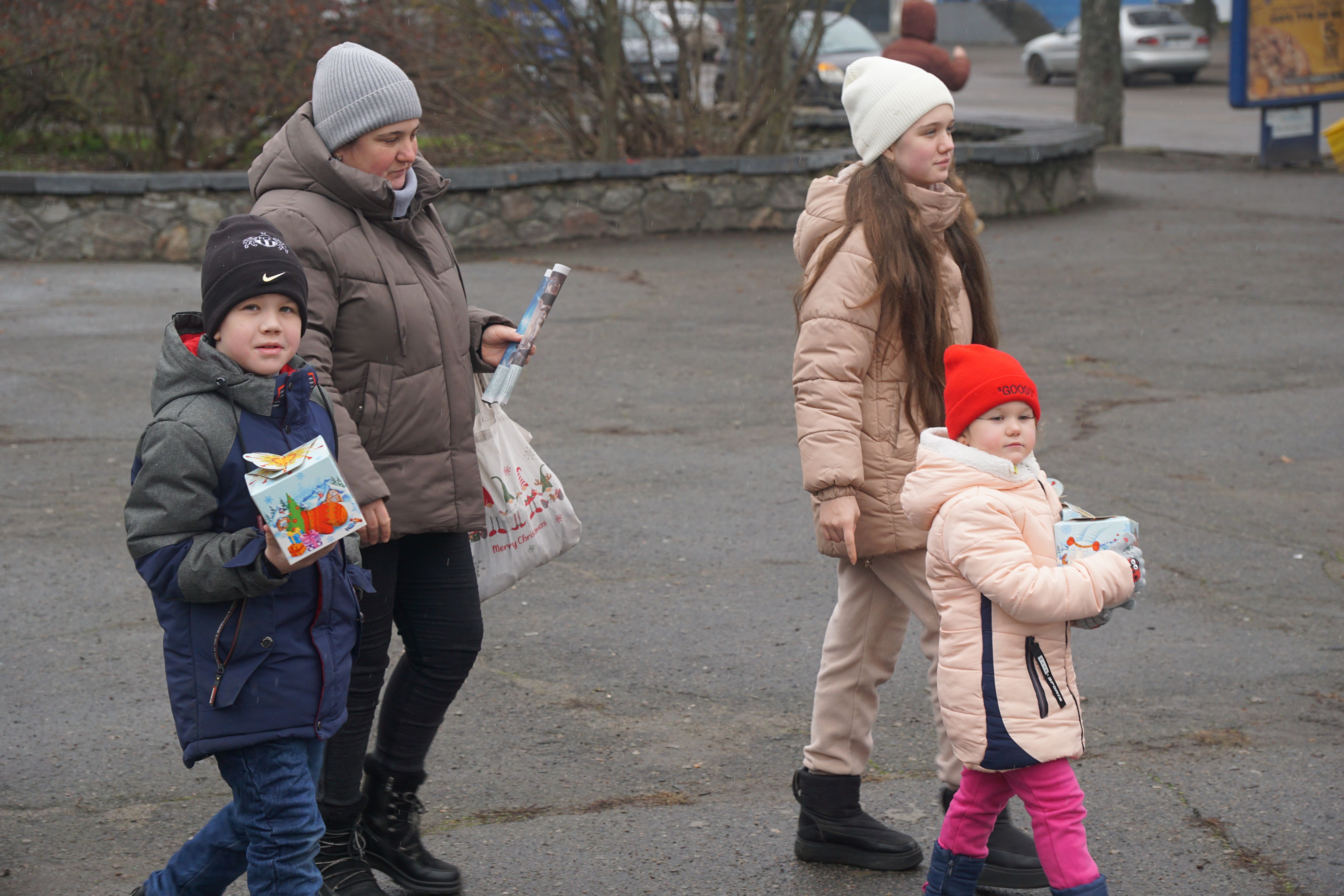 Багатодітні родини громади у яких виховується 5 і більше дітей, а також багатодітні родини з числа внутрішньопереміщених осіб також отримали подарунки.