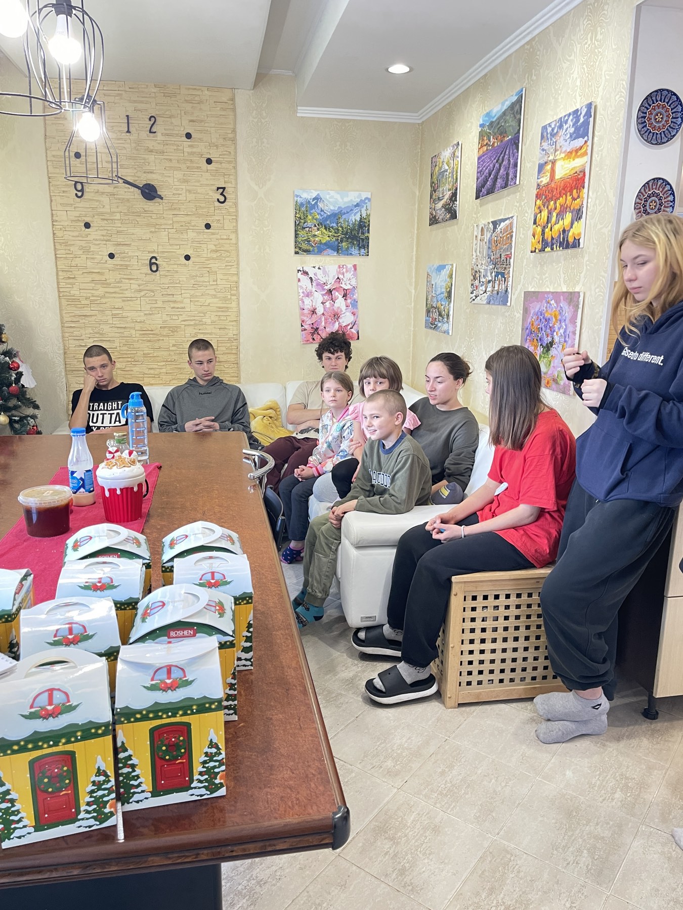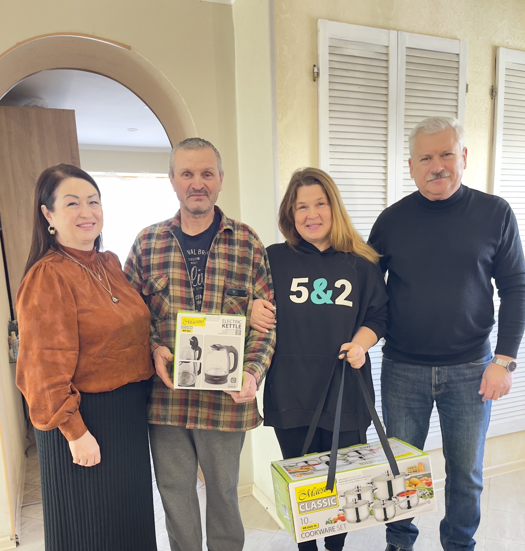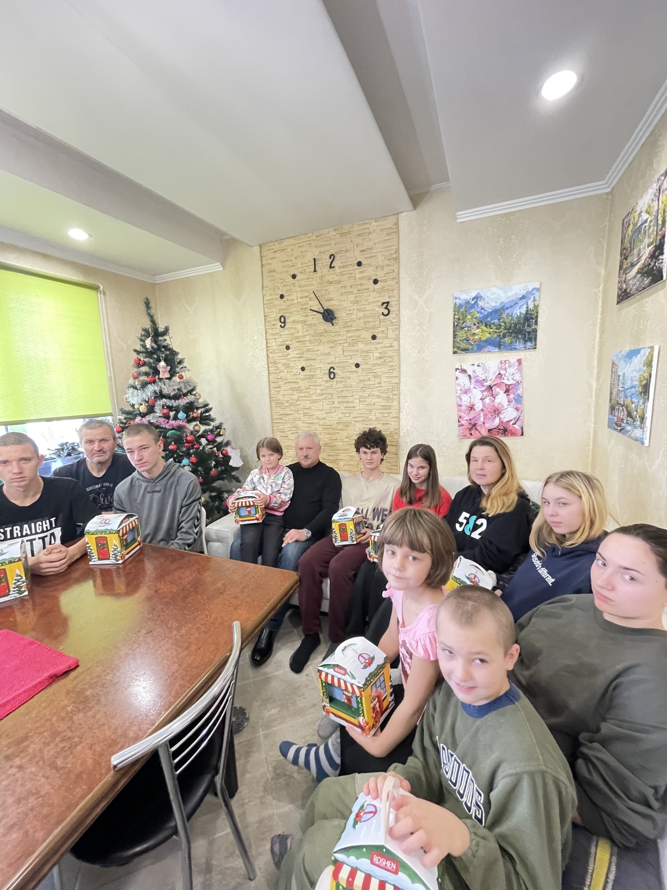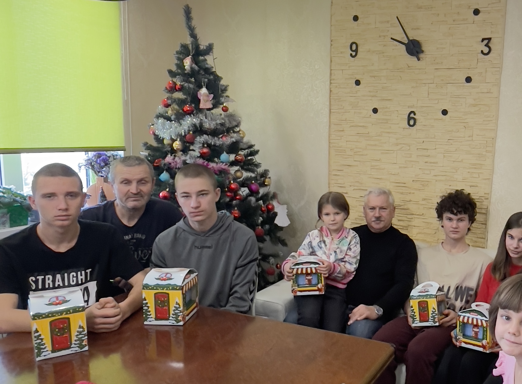 Родині подарували набір посуду, дітям вручили солодкі подарунки та новорічні сюрпризи, а сама зустріч відбулася в теплій, щирій та святковій атмосфері.
