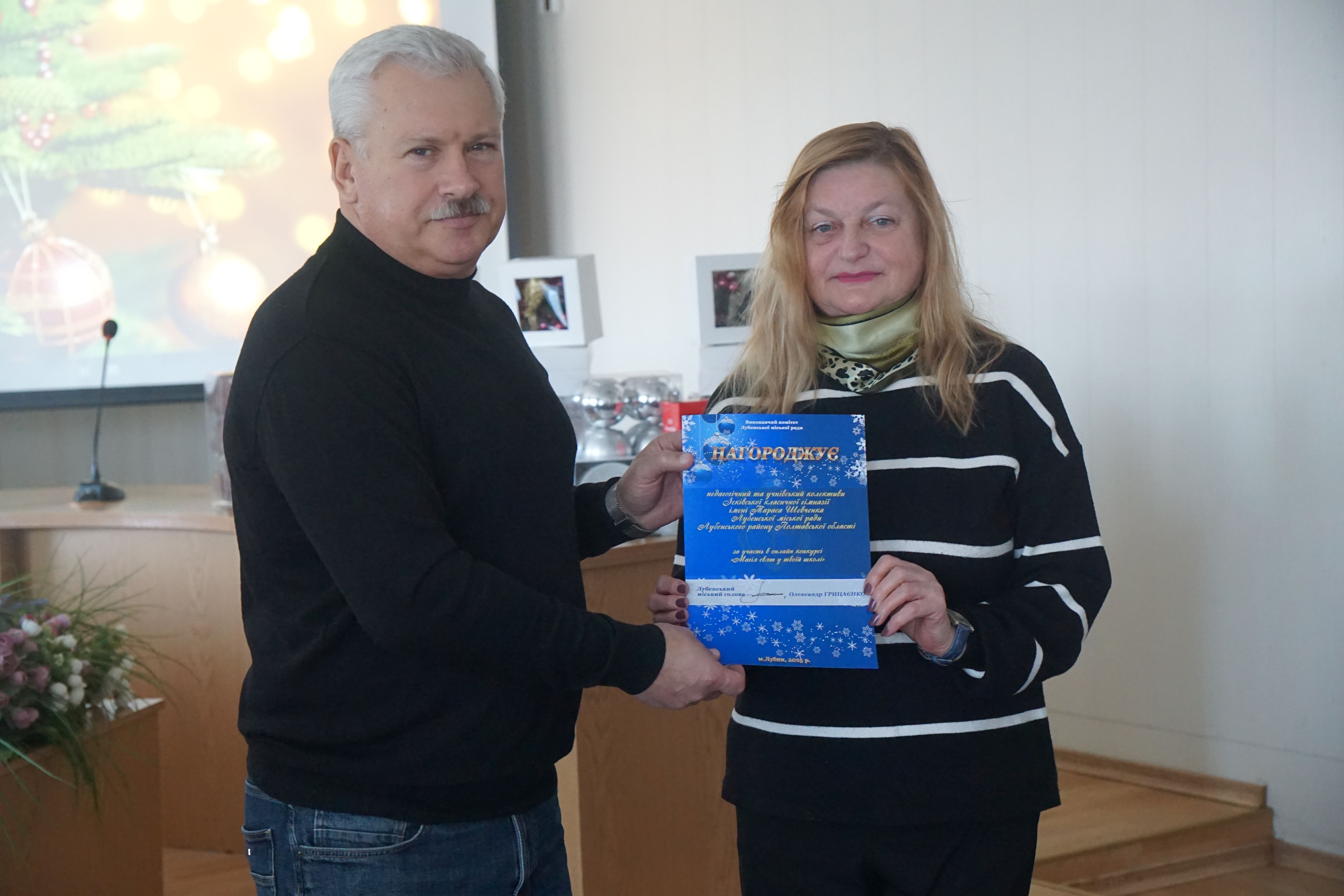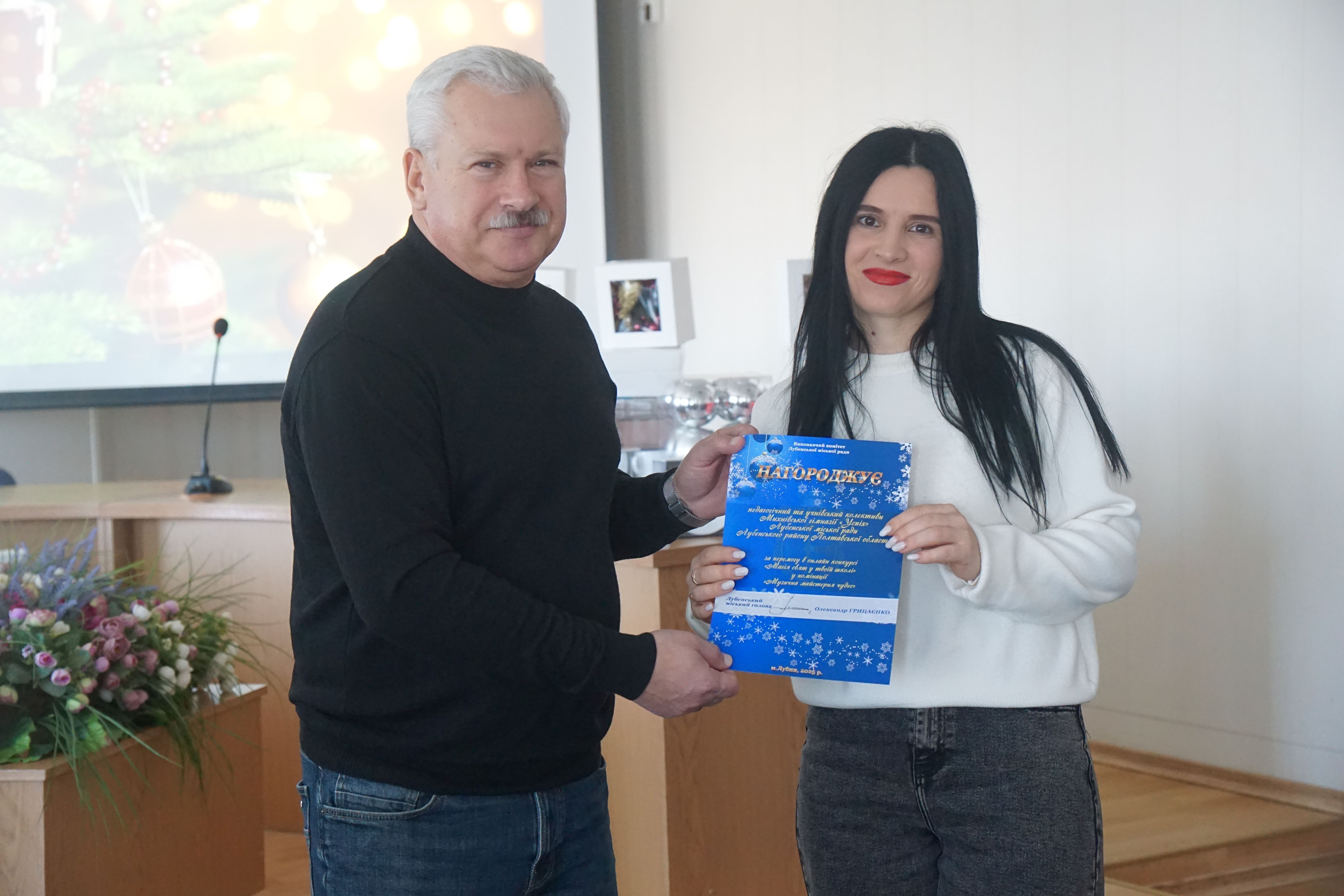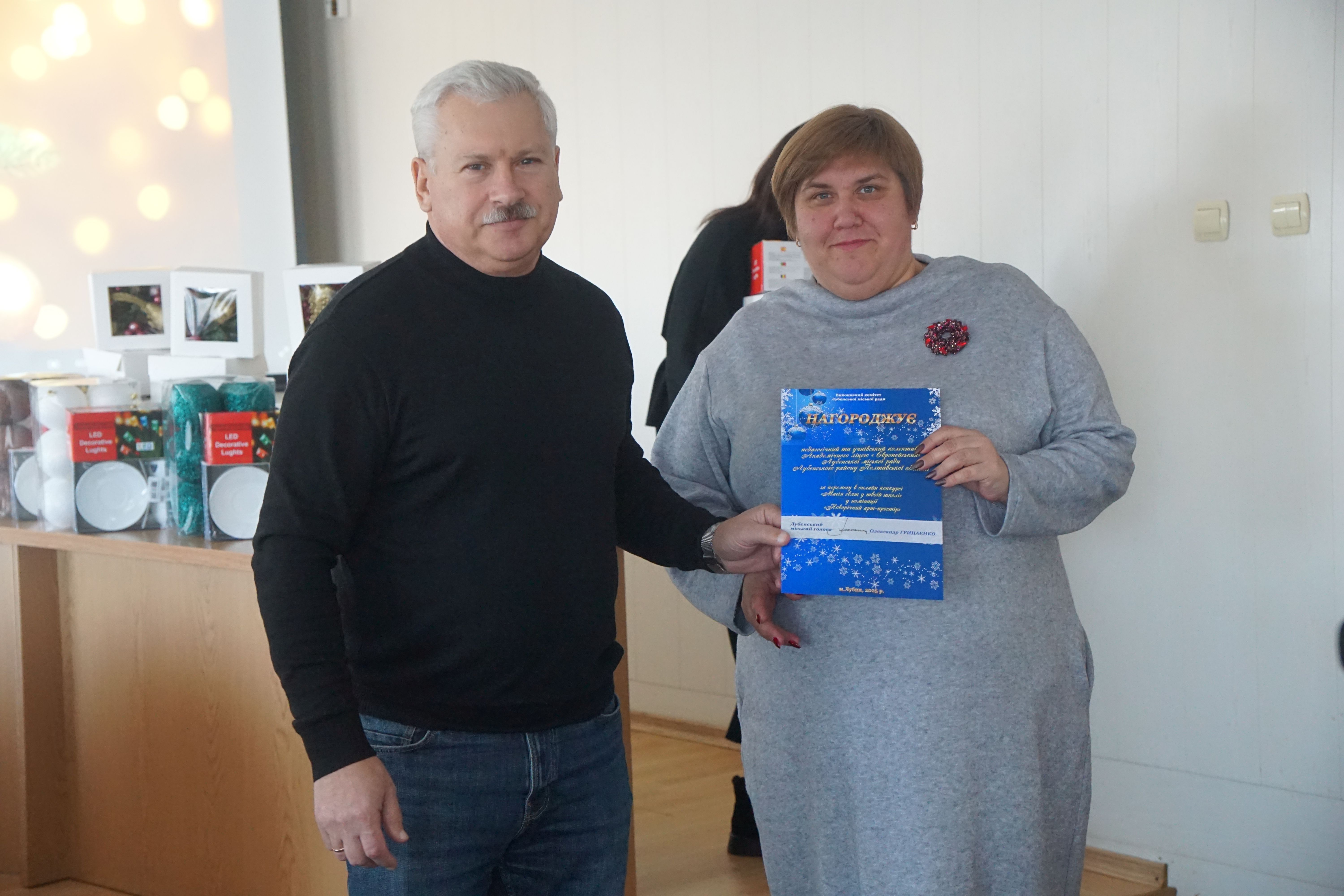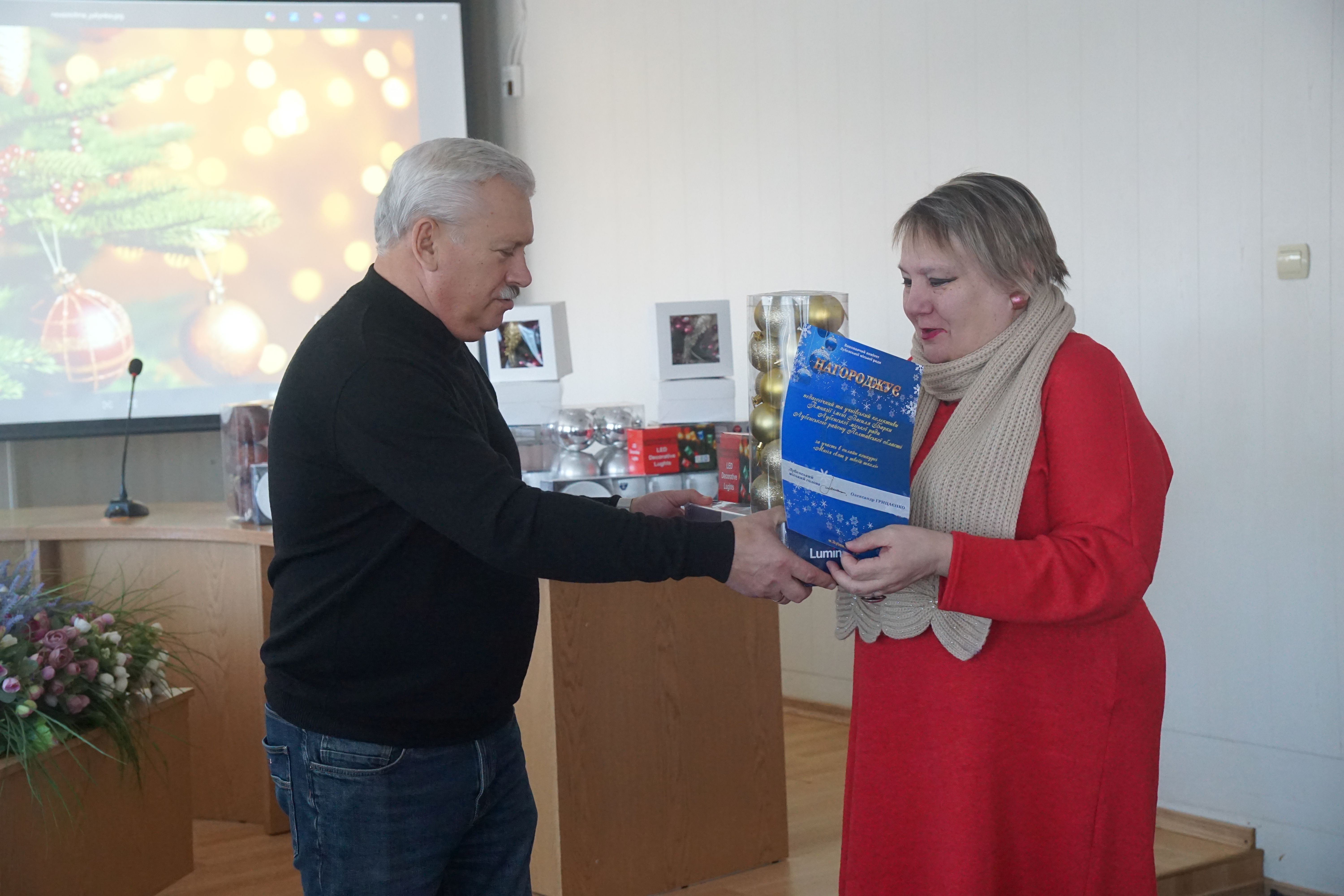 Привітав переможців Лубенський міський голова Олександр Грицаєнко та разом з начальником відділу сім’ї, молоді та спорту Світланою Скибою вручили представникам освітніх закладів громади подарунки.