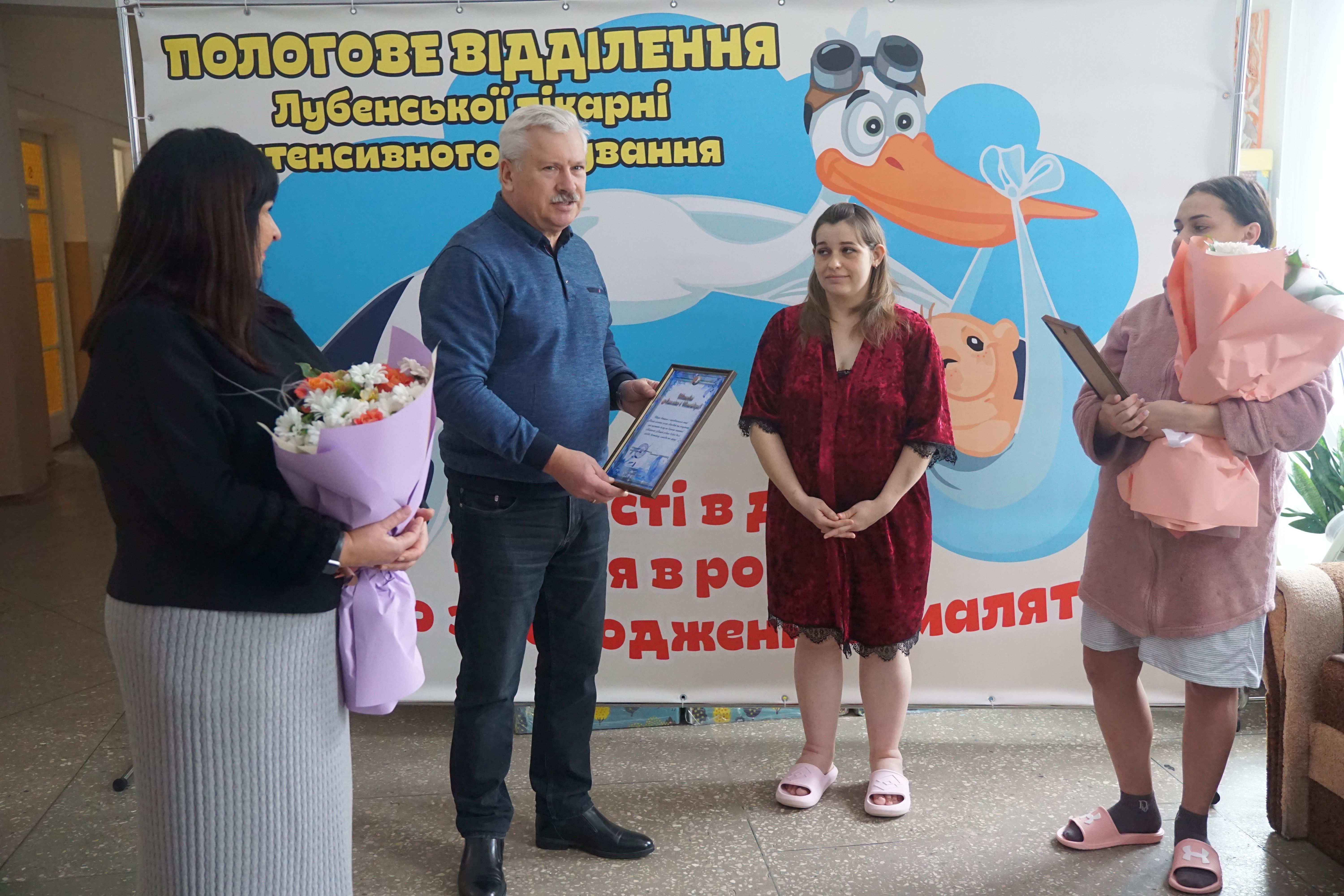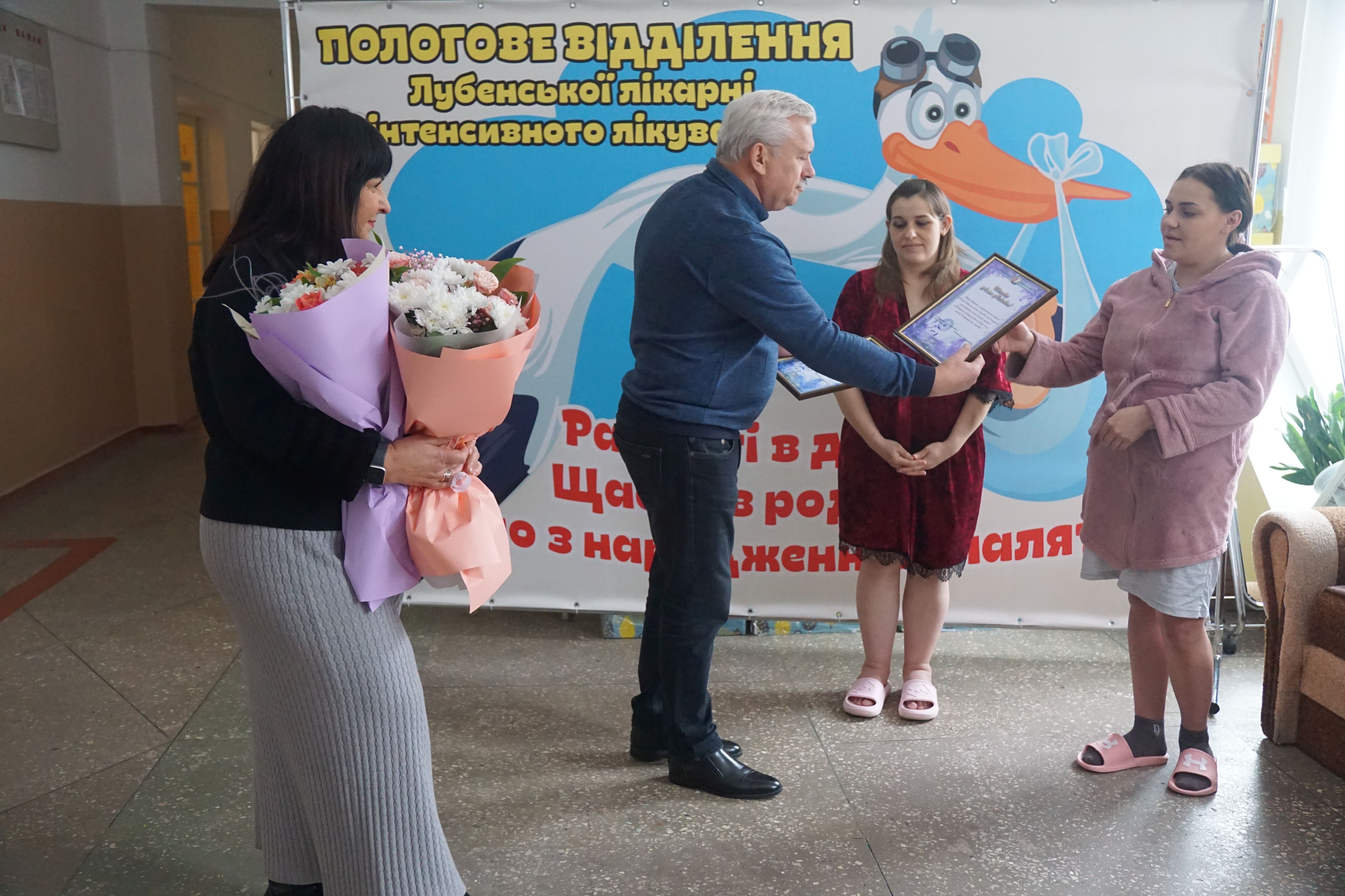 Олександр Грицаєнко побажав породіллям злагоди в родинах, а новим маленьким мешканцям нашої громади - зростати під мирним небом. Медикам подякував за роботу.