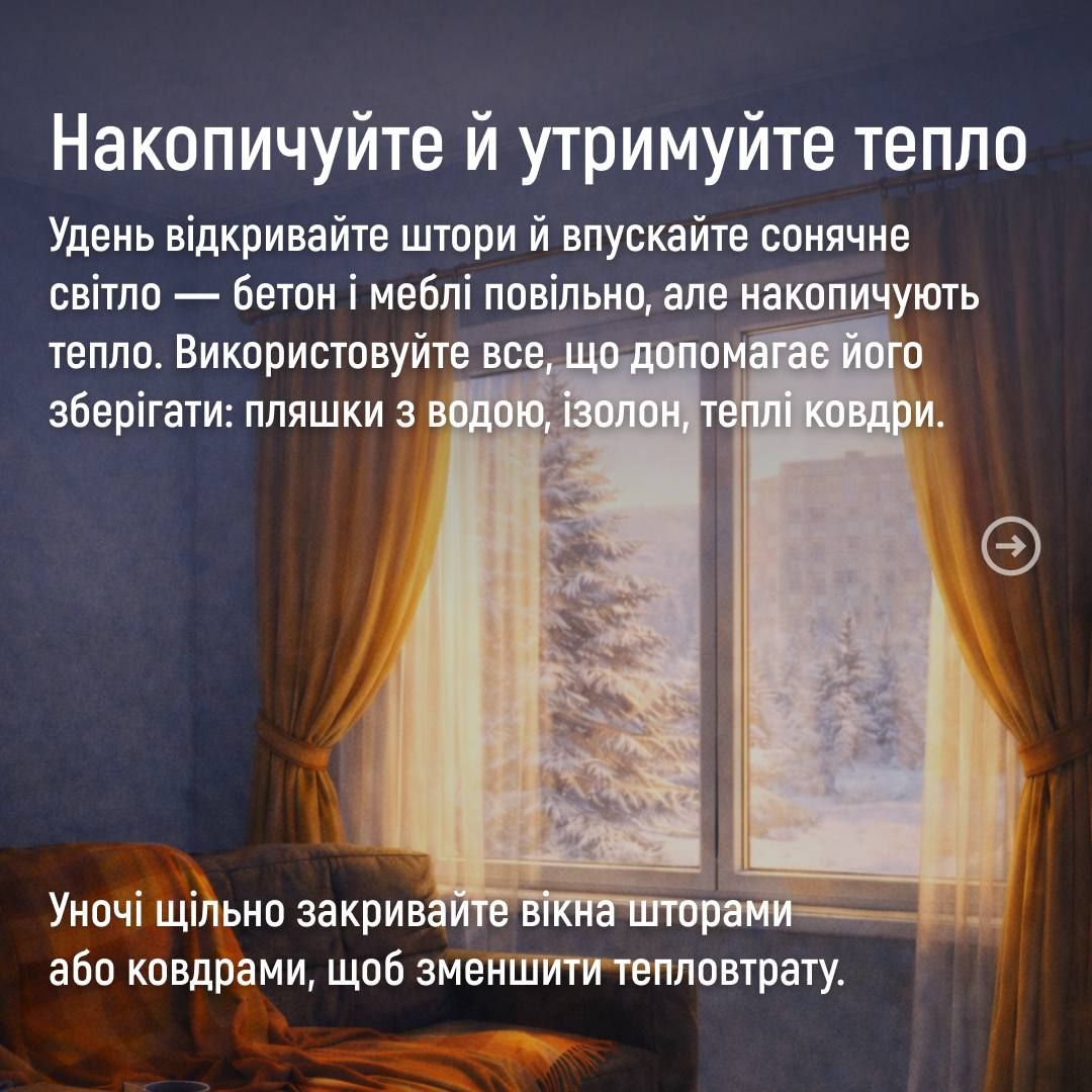 Зібрали поради, як налагодити побут, зберегти здоров’я та залишатися на зв’язку навіть у найтемніші часи. Гортайте картки, щоб знати, як діяти!