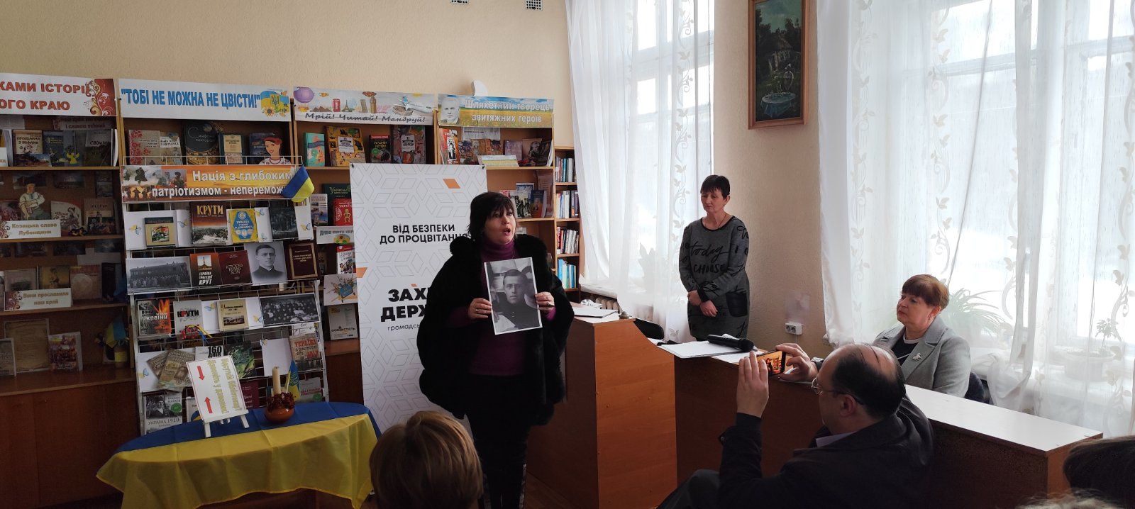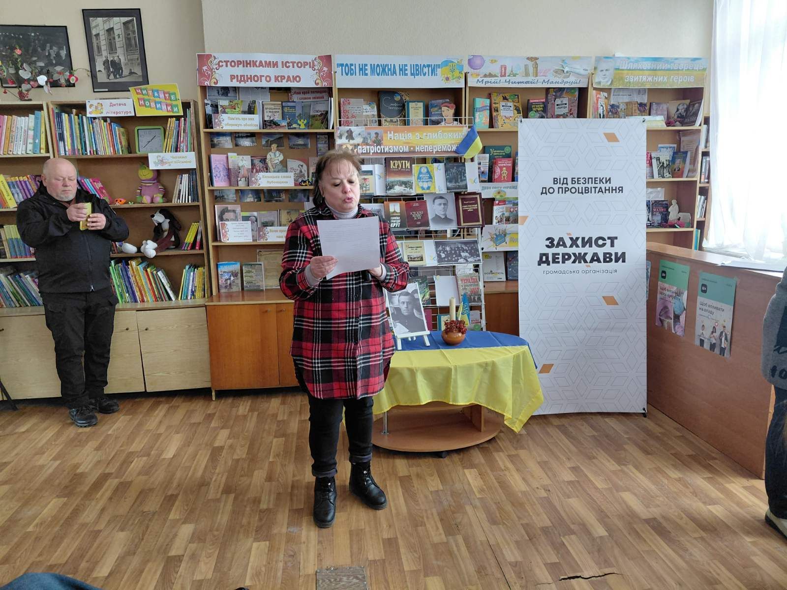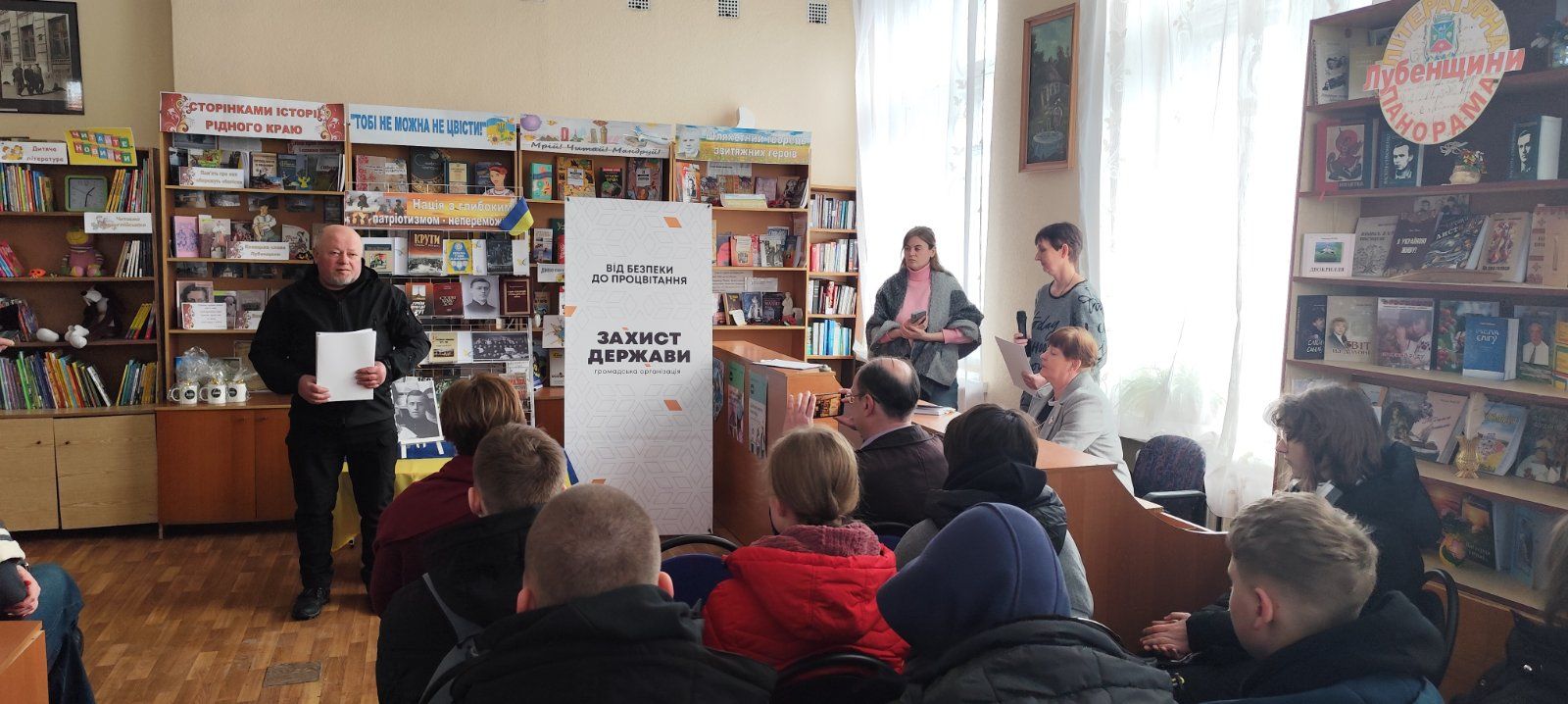 До заходу приєдналися представники громадської організації ГО «Захист держави» - керівник Лубенського осередку Віталій Головко та його заступник Віктор Симоненко. Вони вручили грамоти за активну громадянську позицію та сприяння реалізації просвітницьких ініціатив директору Лубенської публічної бібліотеки імені Володимира Малика Валентині Сьомак та учасникам заходу наголосивши, що ГО «Захист держави» системно працює у сфері військово-патріотичного виховання молоді, популяризації історії України, народних традицій та збереження культурної спадщини.