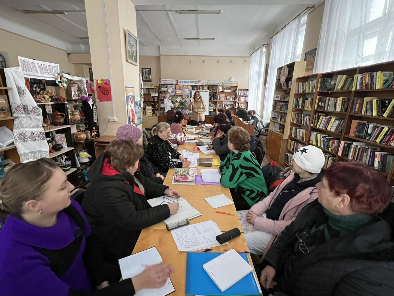 Гостя розповіла чому програма «Скринінг здоров'я 40+» є надзвичайно важливою для громади, які обстеження входять до переліку та хто може нею скористатися. Пані Олена надзвичайно пізнавально та практично означила як жити своє життя та насолоджуватись ним, як долати страхи. Бібліотекарі спілкувалися про відчуття безпеки та пріоритети в житті. Обговорили, які необхідні медичні обстеження, враховуючи нинішні випробування. Ментальне здоров'я це – знання, уміння, розвиток, досвід та позитив! Тож бажаємо нашим колегам та читачам завжди бути здоровими!