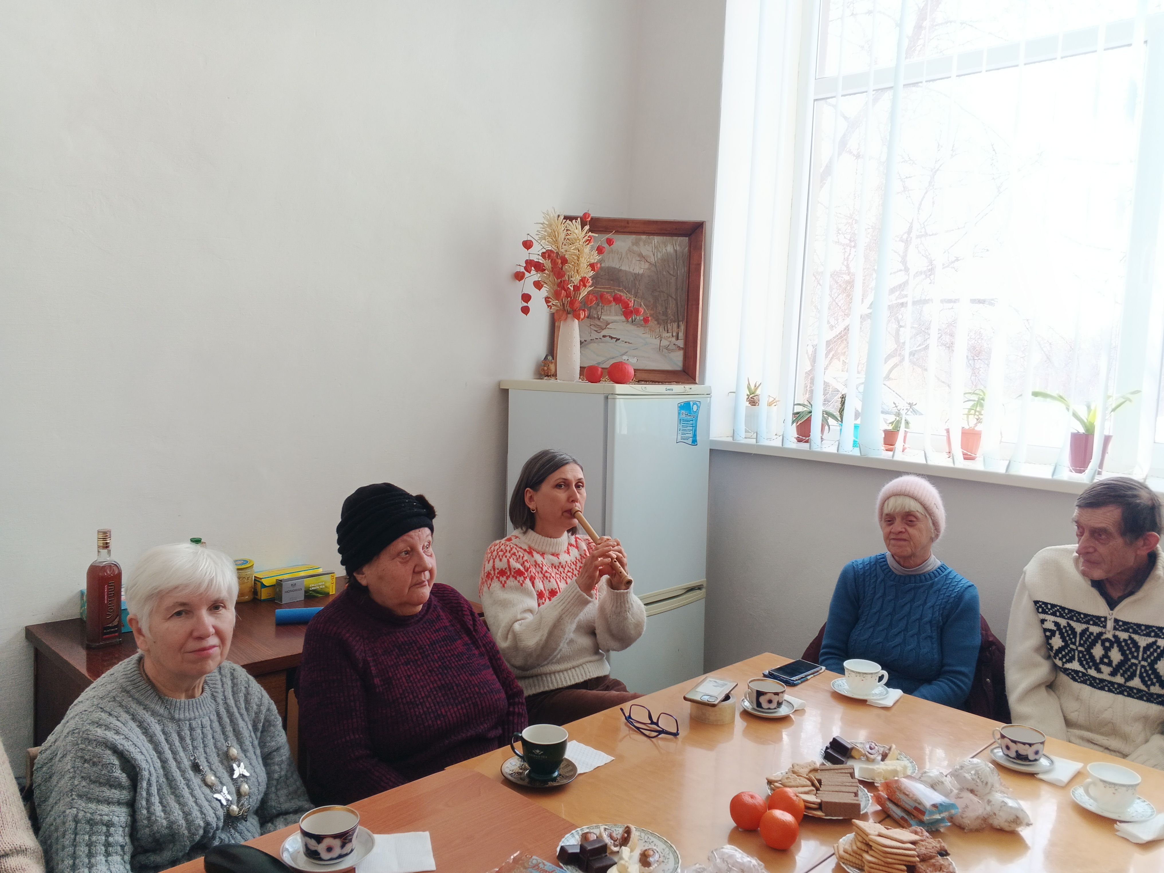 Родзинкою зібрання стали прекрасні мелодії на сопілці у виконання Світлани ПазичДобрі вчинки, зроблені тихо, мають дивовижну силу – роблять світ світлішим і теплішим. Щира подяка небайдужій краянці Євгенії Клиші за велику щедрість, чудові смаколики, якими вона пригостила учасників читацького клубу «Палітра».