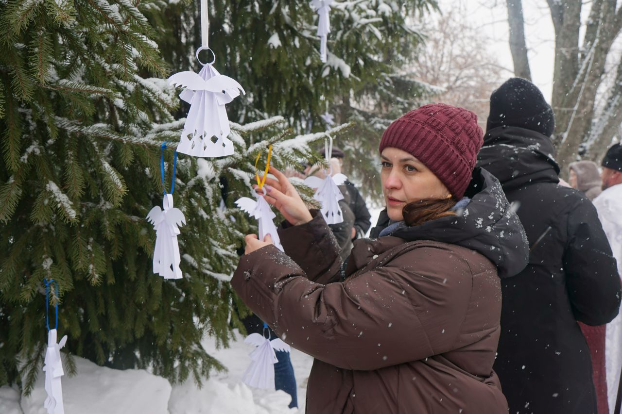 Учасники зібрання долучилися до акції «Янголи пам’яті»: на деревах розвісили паперових янголів – символ болючих втрат, пам’яті та віри в перемоги світла над темрявою.