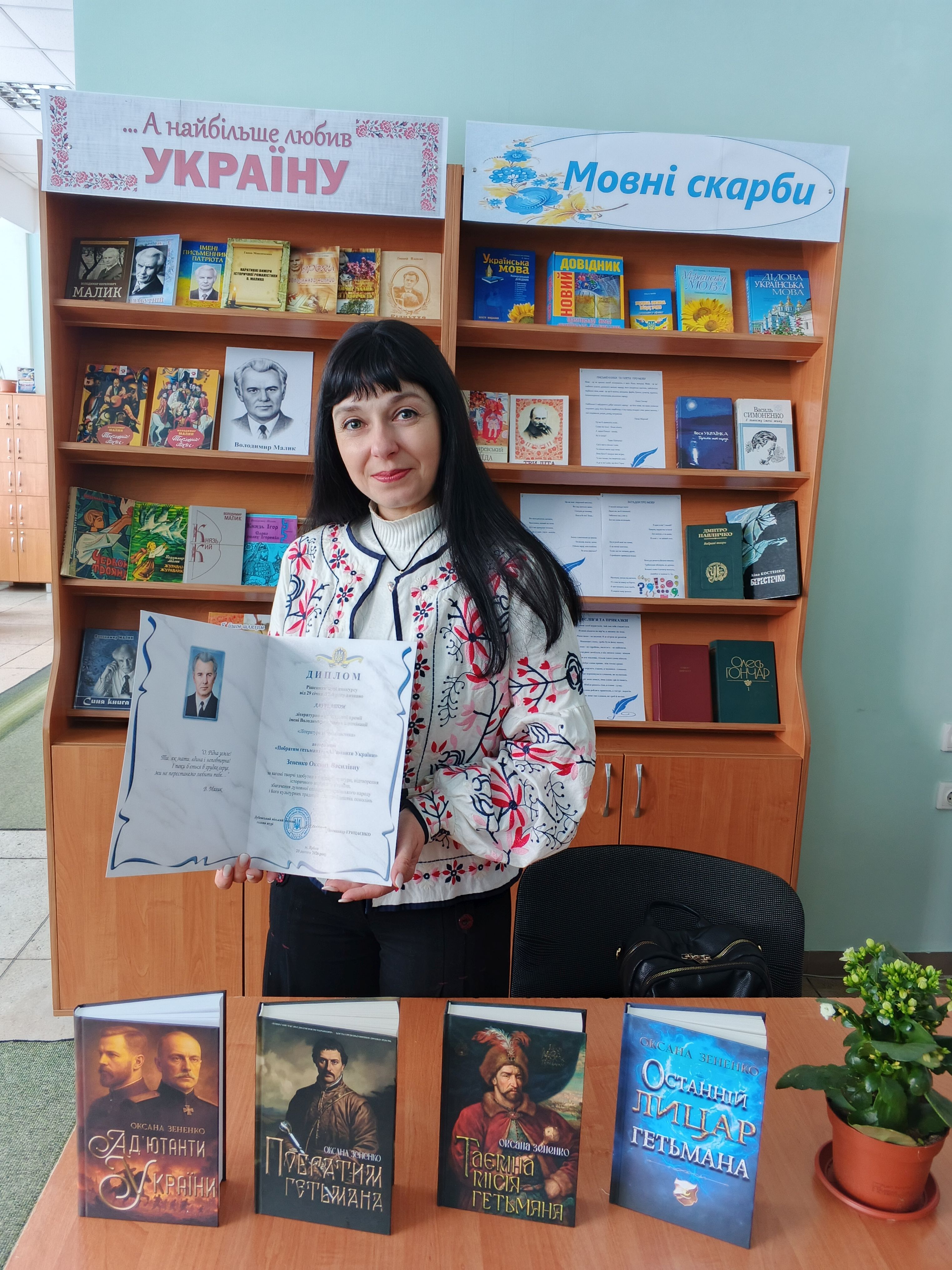 У Лубенській міській бібліотеці для дорослих імені Володимира Леонтовича відбулася творча зустріч з лауреаткою літературно-мистецької премії імені Володимира Малика в номінації «Література та публіцистика» за книги «Побратим гетьмана» та «Ад’ютанти України», письменницею, дослідницею української історії Оксаною Зененко.