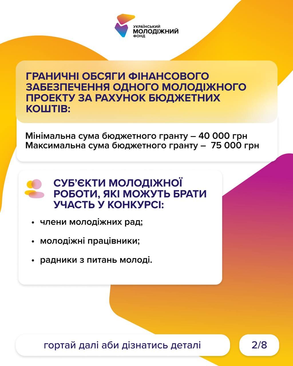 Коротко інформацію виклали на картинках, а от детальну інформацію знайдете на сайті УМФ - https://uyf.gov.ua/programs/blahopoluchchia-molodi-fo