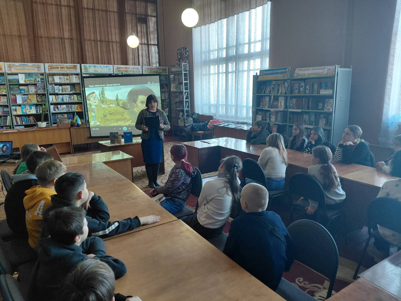 Під час вікторини, яку провела бібліотекар Марина Кононенко, учні дізналися: скільки разів бував Шевченко у Лубнах, його улюблену страву та цікаві факти з біографії Кобзаря.