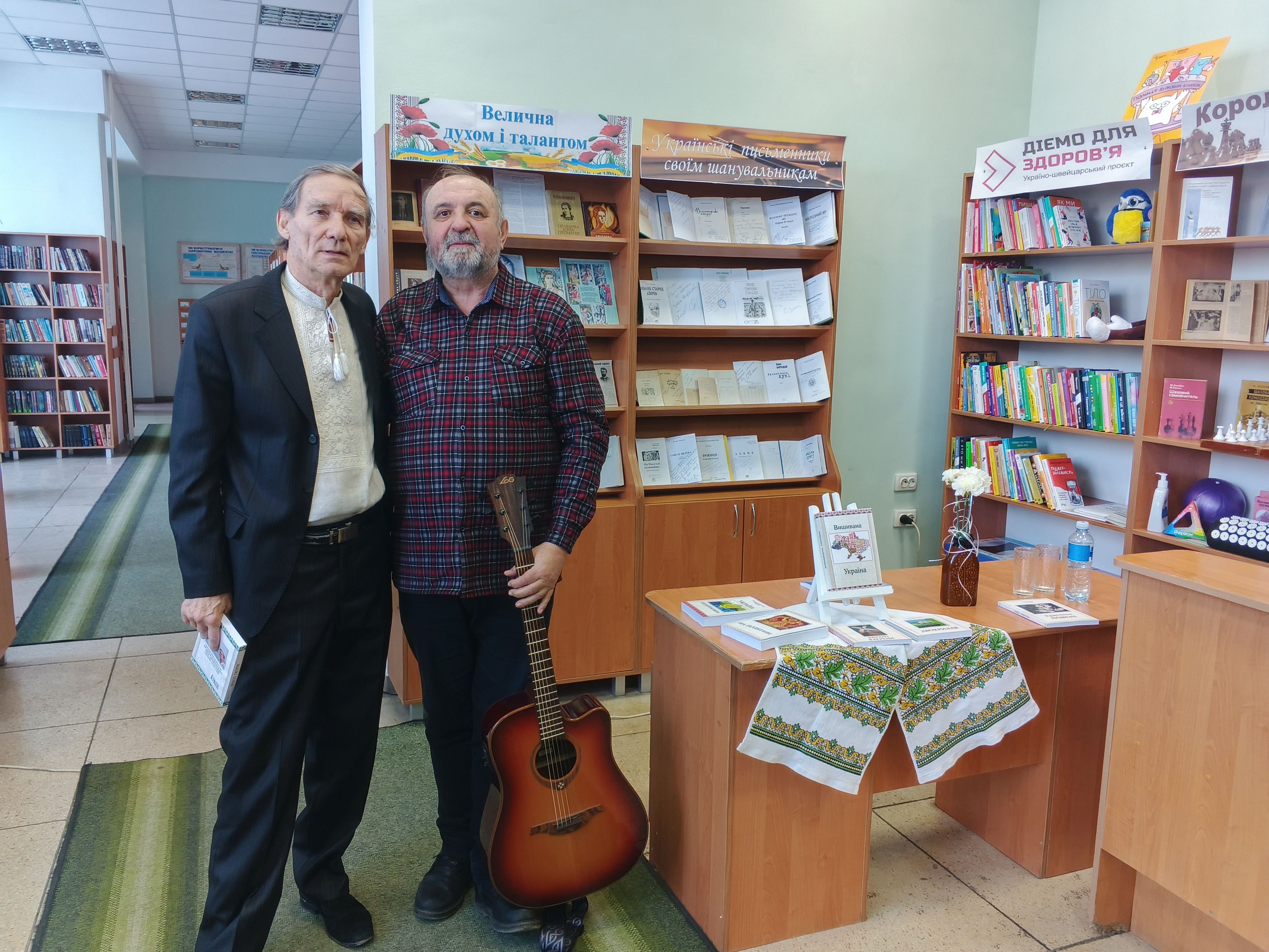 Для українців вишивка – це не просто мистецтво чи прикраса одягу, а символ пам’яті роду, зв’язку поколінь, захисту духовної сили. Саме цю ідею втілює у своїй творчості член Полтавської спілки літераторів Борис Кононенко, який прочитав кілька своїх віршів. Для слухачів прозвучали і пісні на слова автора: «Мамі» (виконав Анатолій Супрун) та «Гей, Богуне» (виконав Анатолій Куценко).Ведуча заходу - завідувач бібліотекою Світлана Голуб, відмітила, що збірка «Вишивана Україна» - не просто поезія, в ній голоси часу, біль, надія, любов, вишиті словом, яке звучить сильно, гідно. А ще щиро побажала майстрам пера невичерпної енергії, цікавих задумів, успіхів у творчих починаннях.
