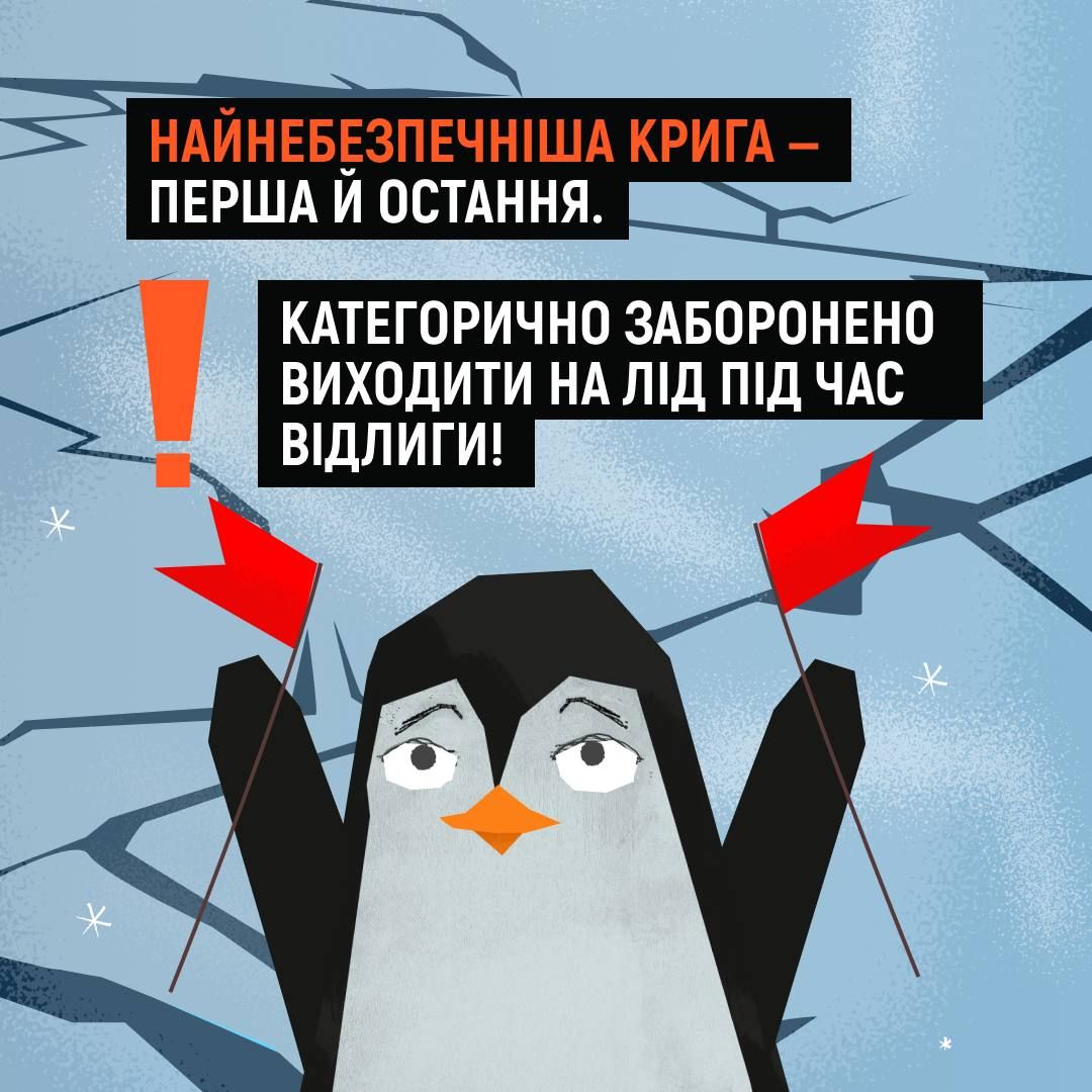 З першим потеплінням крига стає максимально підступною: плюсові температури та сонце руйнують її зсередини, хоч зовні поверхня здається міцною.