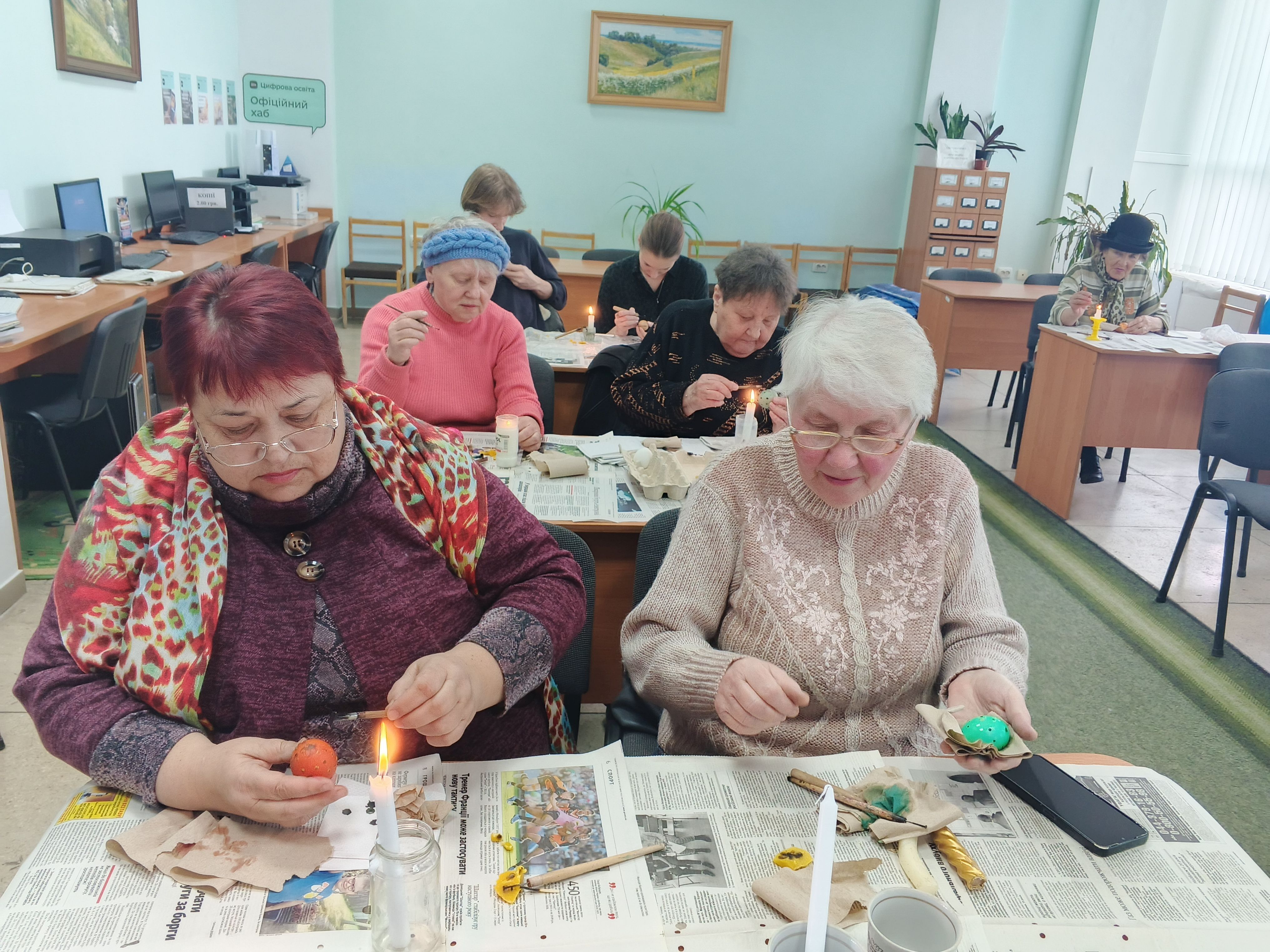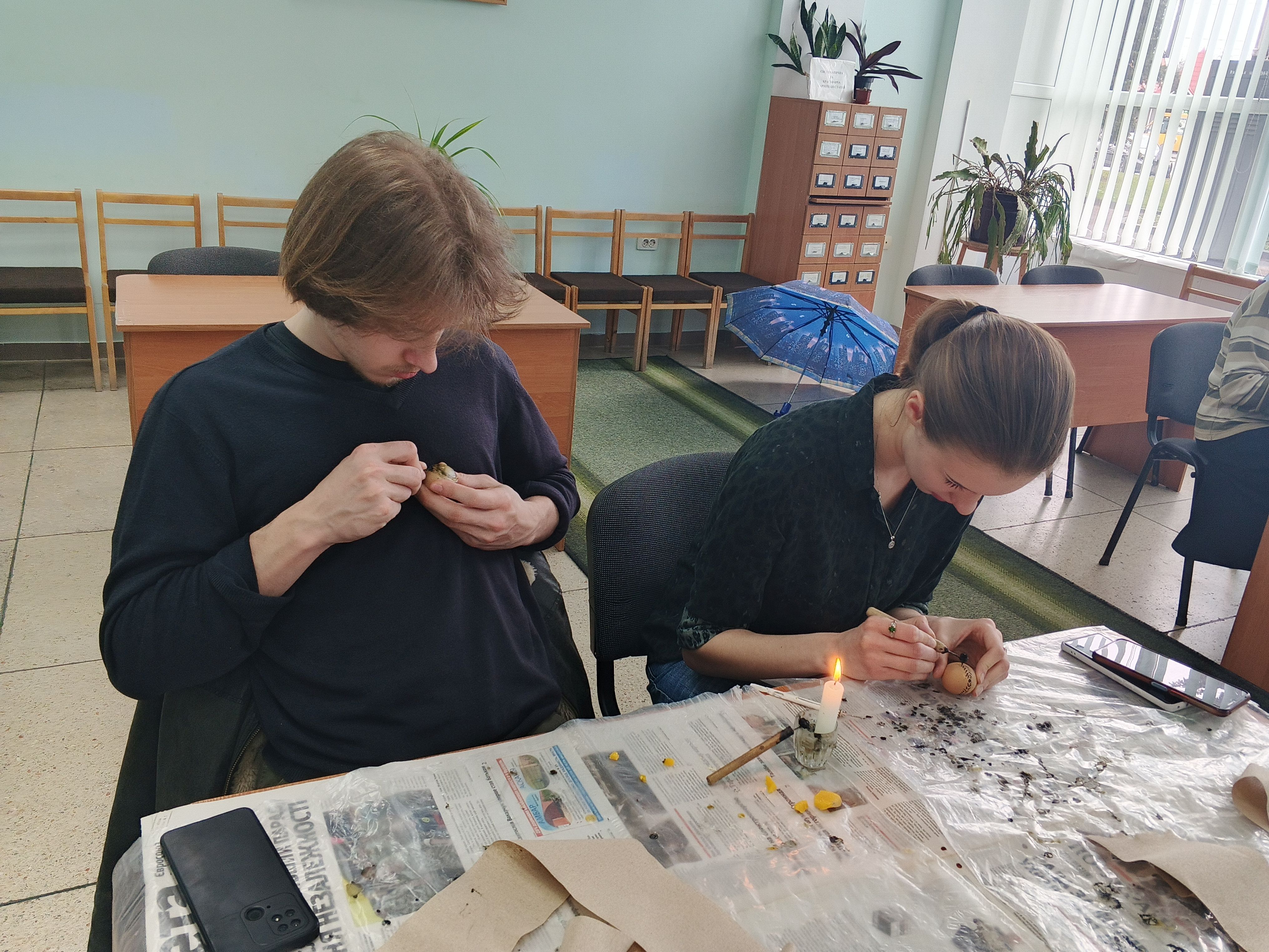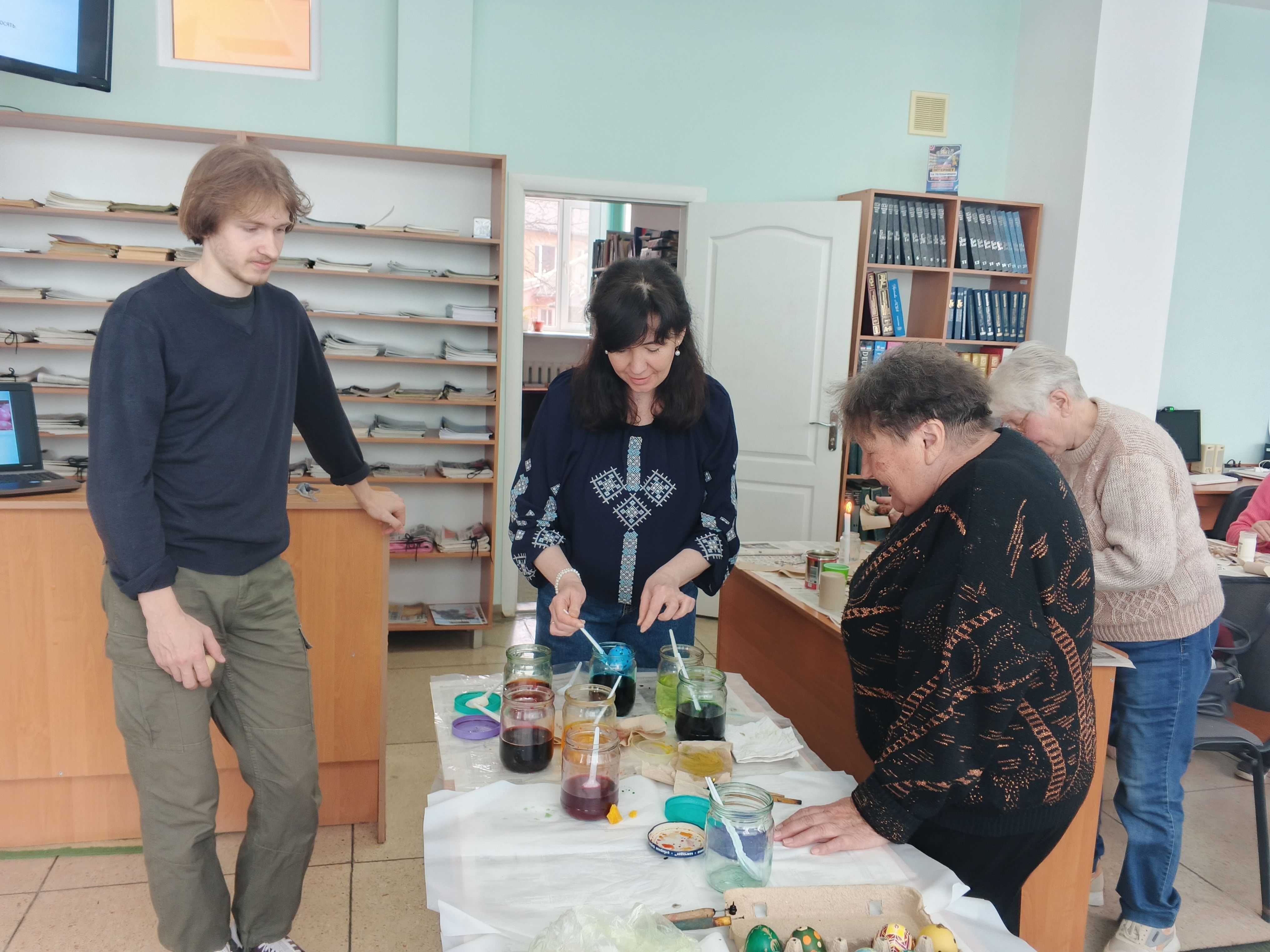 Під пильним наглядом майстрині кожен учасник зміг випробувати свої сили та створити власну маленьку «крапанку» (один із видів писанки) - справжню історію на шкаралупі. Учасники залишали бібліотеку з усмішками та власними шедеврами в руках.