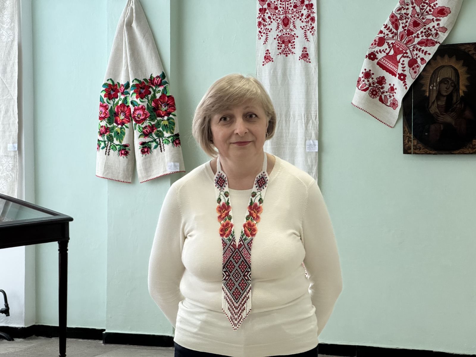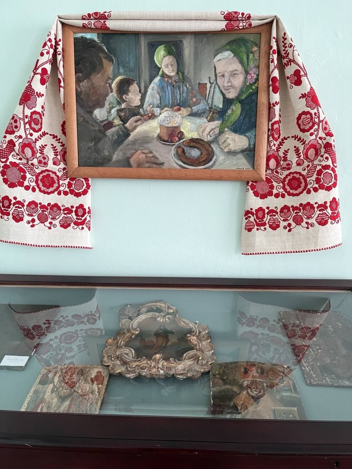 У залі також експонуються твори з фондів краєзнавчого музею - ікони, а також писанки, виконані заслуженим майстром народної творчості України Оксаною Білоус ( м. Київ) та членом НСХУ Аліною Гончаровою.