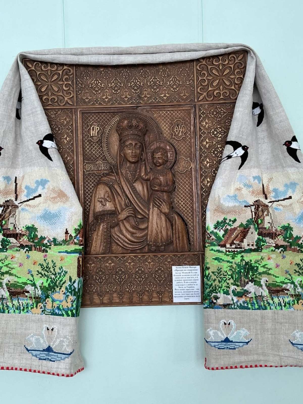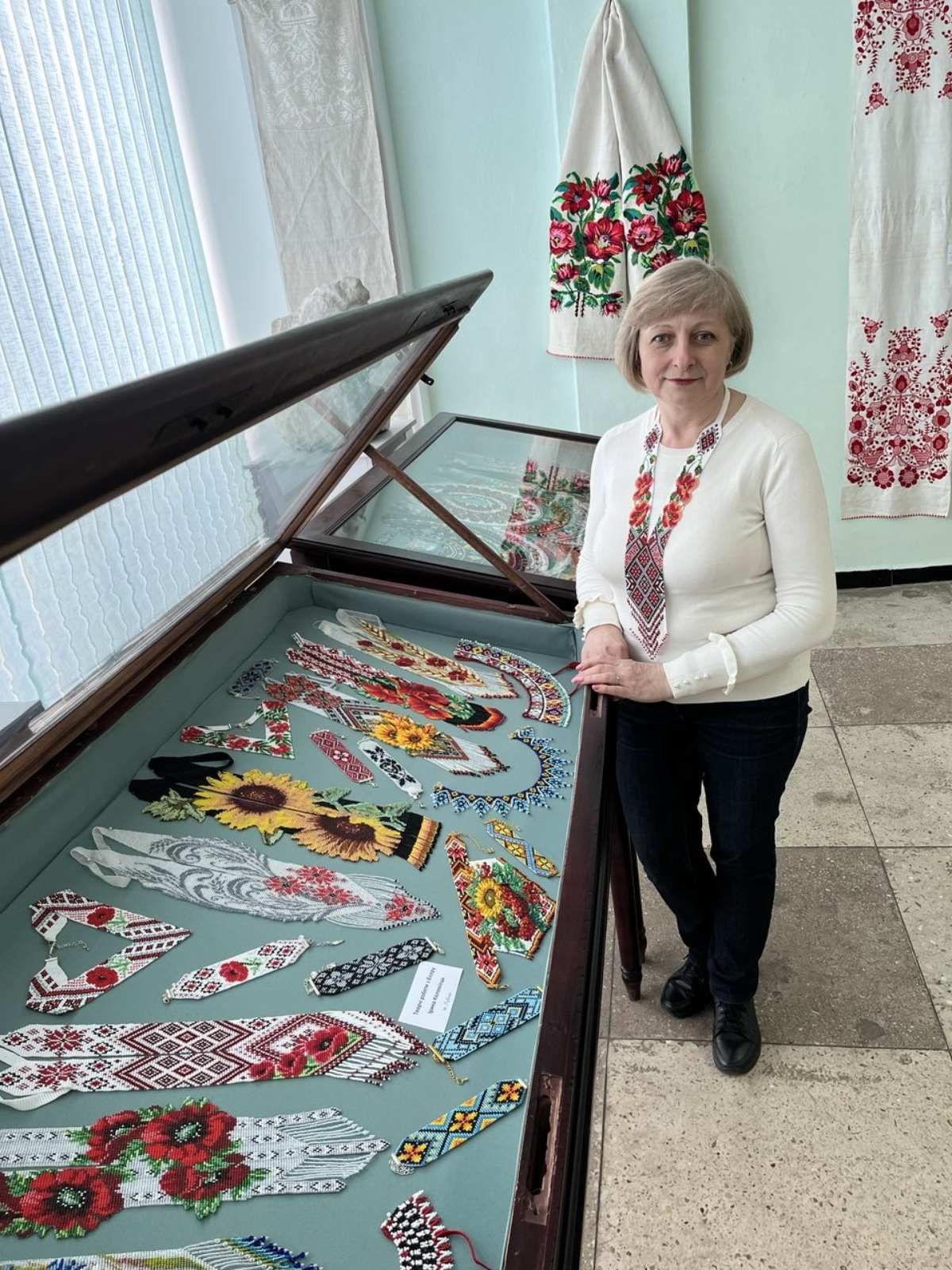 Свої роботи тут продемонстрували заслужений майстер народної творчості України Ганна Гойда, народні майстрині Ольга Сердюк, Людмила Бірюкова, Тамара Бірюкова, Ірина Коломієць, Тетяна Нагаль, Ганна Базилевич, Софія Перепелиця, Олена Дяченко, мисткиня Діана Дрига, іконописиця Олена Нестерова та юна художниця Анастасія Литвиненко.