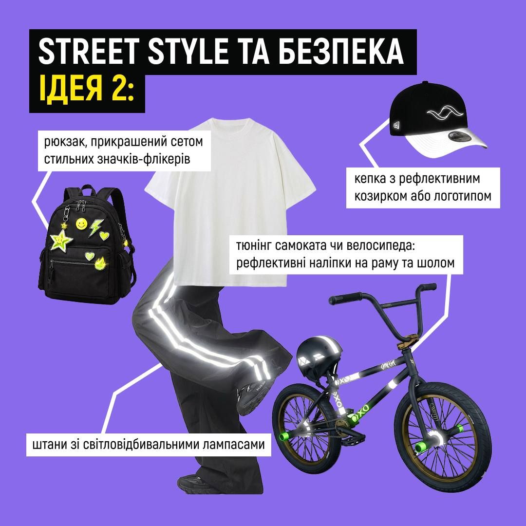 Обирайте світлі кольори та обов'язково додавайте світловідбивальні елементи — ці маленькі деталі рятують життя!