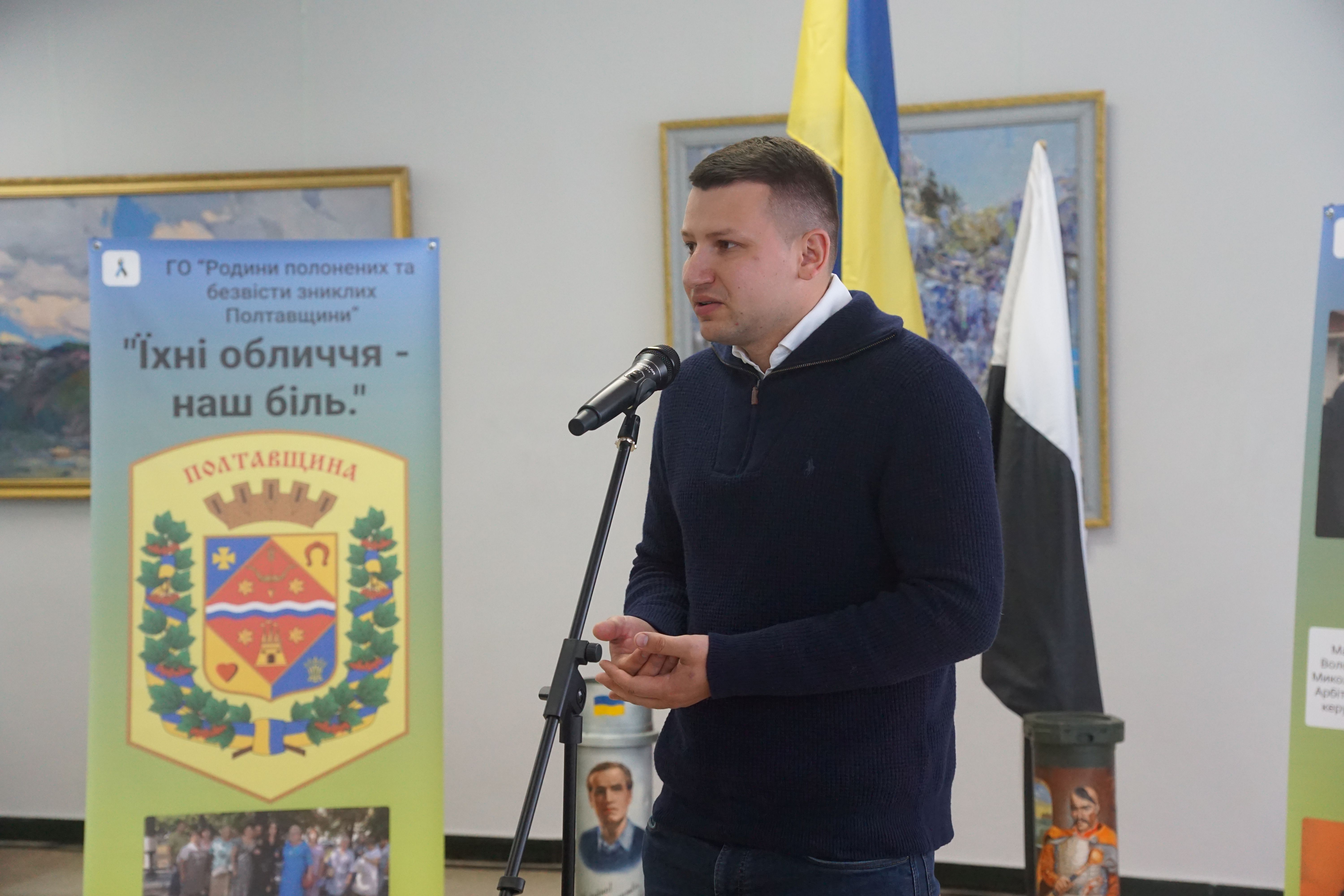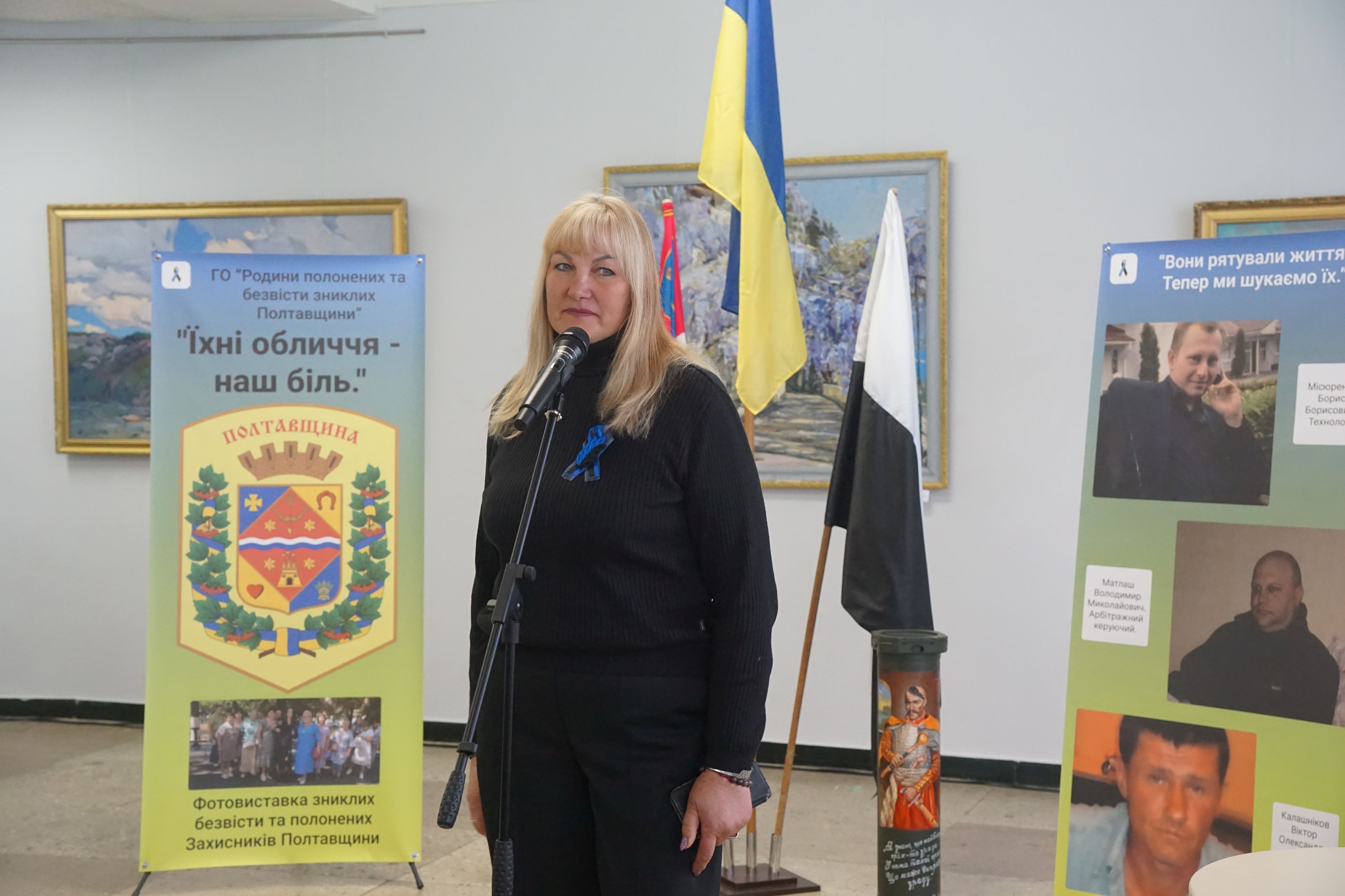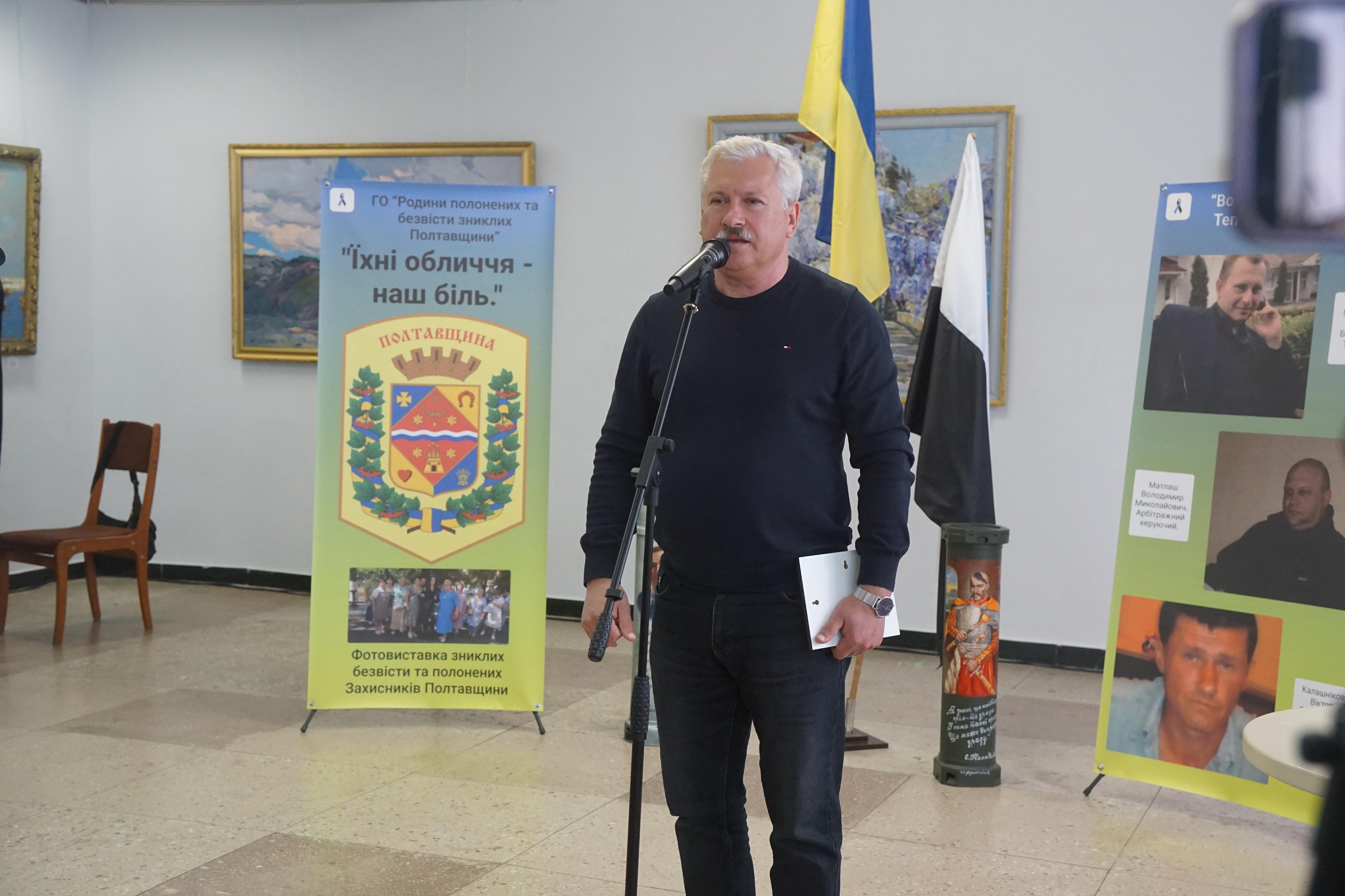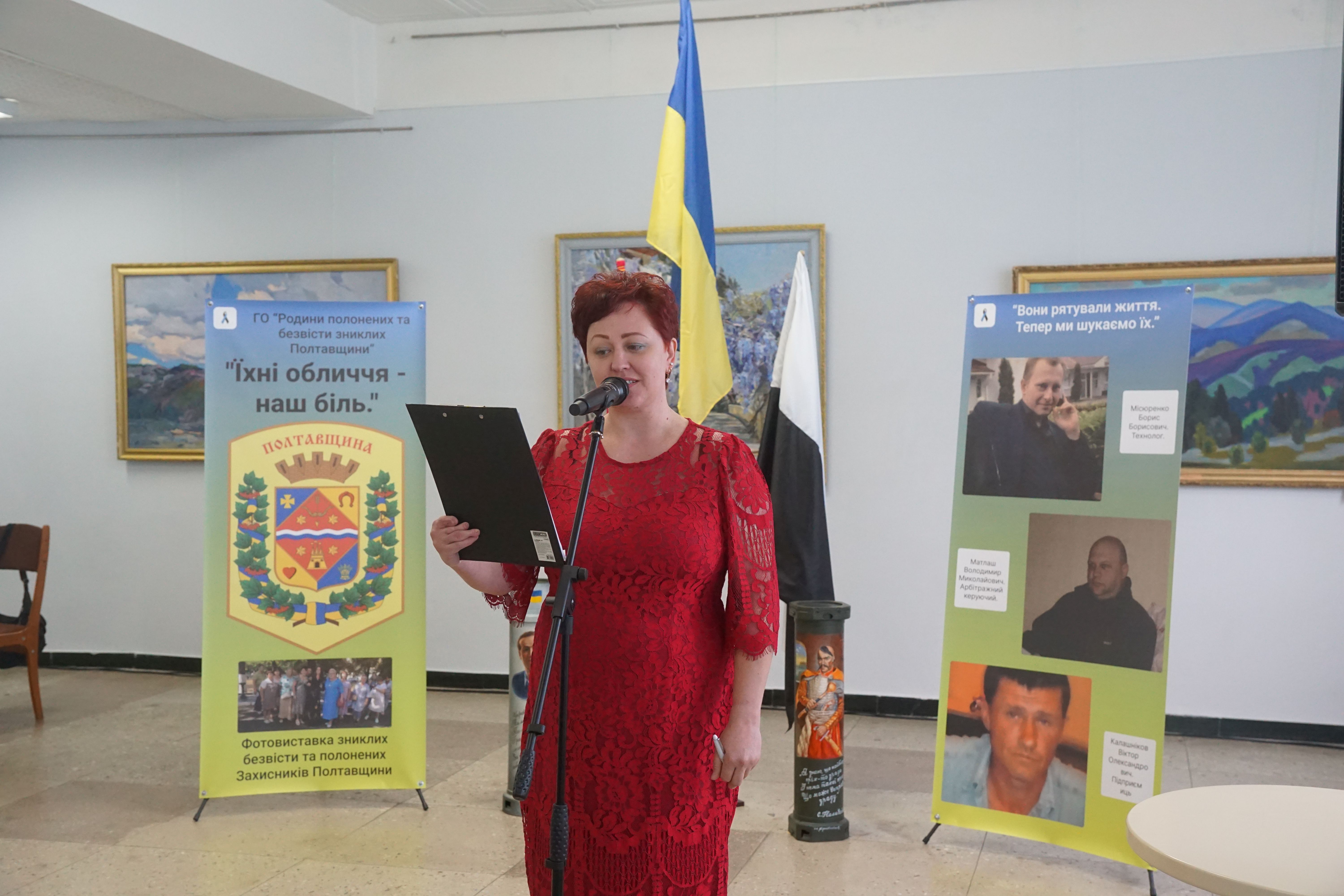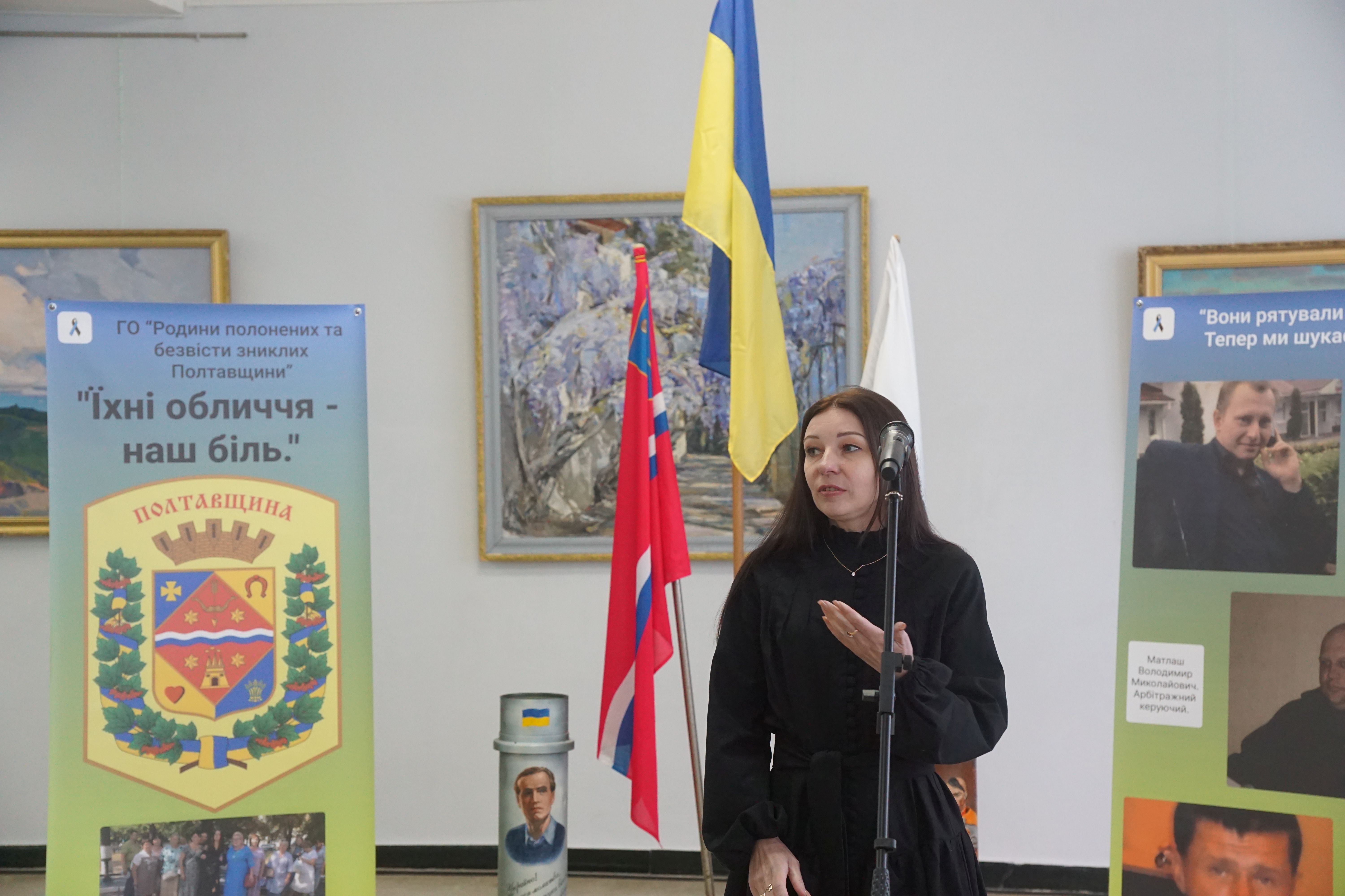 Про створення подорожуючої фотовиставки, ідею, оформлення і бажання аби громади Полтавщини знали своїх героїв в обличчя йшлося у виступах голови ГО «Родини полонених та зниклих безвісти Полтавщини», керівниці та головної організаторки проєкту Лідії Місюренко, ініціаторки та дизайнерки фотовиставки, дружини безвісти зниклого Євгенії Мєх, координаторки виставки Наталії Кіяшко.