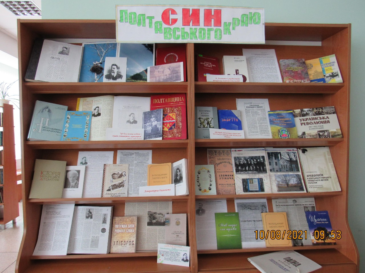 Присутні мали змогу ознайомитись з літературою, присвяченою родині Леонтовичів, яка представлена на книжковій виставці «Син Полтавського краю».