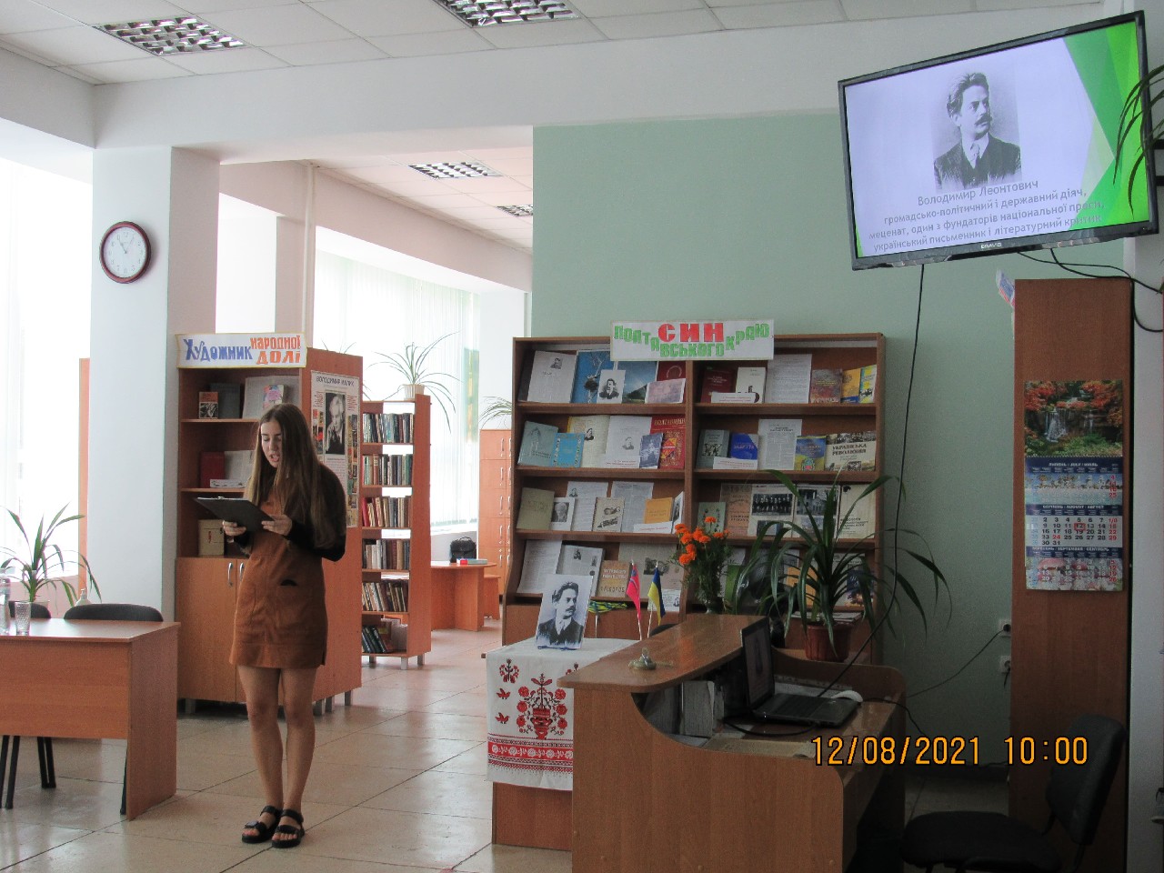 12 серпня міська бібліотека для дорослих ім.В.Леонтовича запросила своїх користувачів на круглий стіл «З Україною в серці», присвячений 155-річчю з дня народження Володимира Леонтовича – громадсько-політичного діяча, промисловця, хлібороба, мецената, письменника, земляка, ім’я якого носить наша бібліотека.