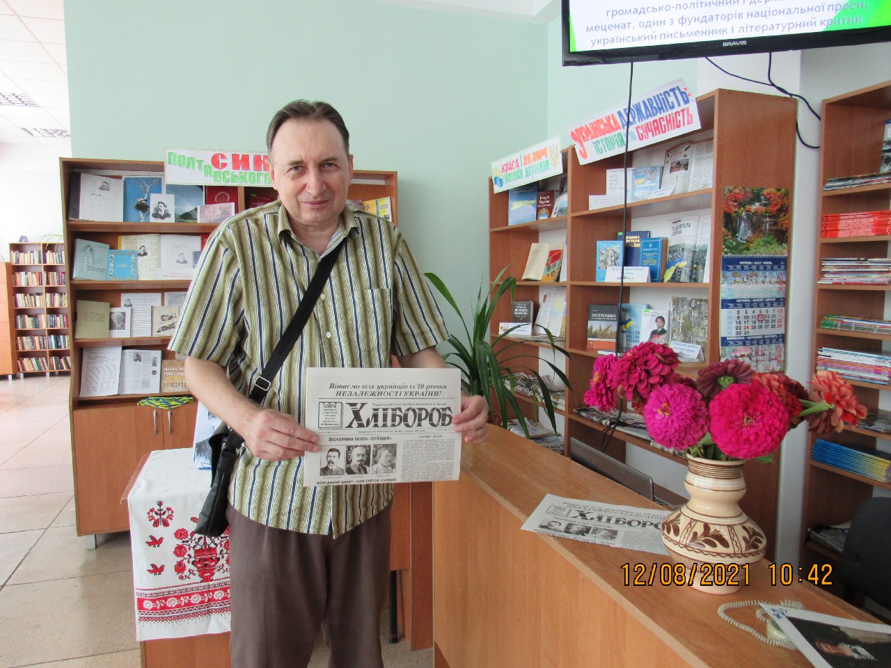 Цього дня не обійшлося і без подарунка – головний редактор і засновник газети «Хлібороб» Олег Гаврильченко презентував бібліотеці новий випуск газети «Хлібороб», що символічно, адже Володимир Леонтович теж був видавцем і хліборобом.