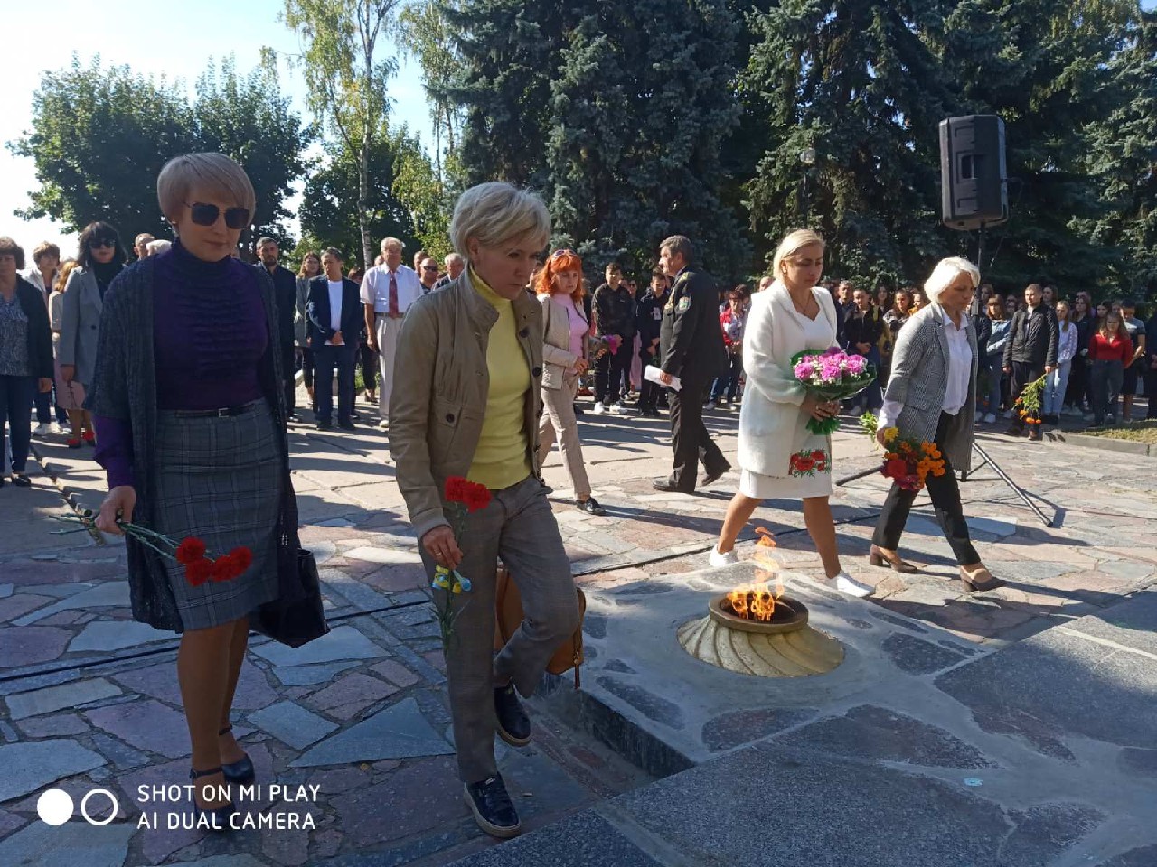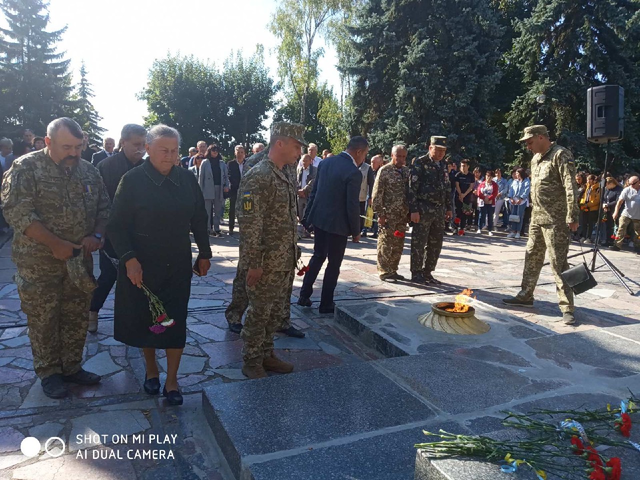 Хвилиною мовчання вшановано захисників-визволителів Лубенщини різних років, до вічного вогню лягли квіти.