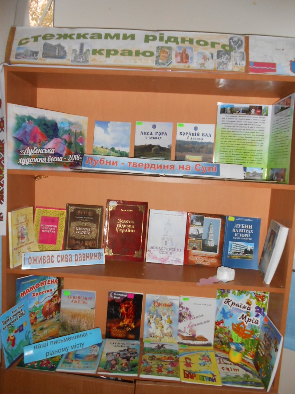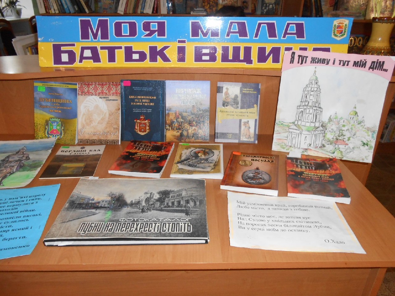 До послуг відвідувачів у бібліотеці оформлена книжкова виставка «Стежками рідного краю» та тематична викладка літератури «Моя мала Батьківщина».