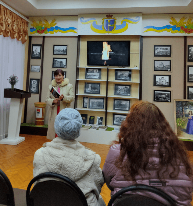 Присутні мали змогу переглянути спогади жителів міста про трагедію Засульського яру, книги присвячені Голокосту, які надав Генадій Хенкін та  унікальні  фото з наукового архіву музею.