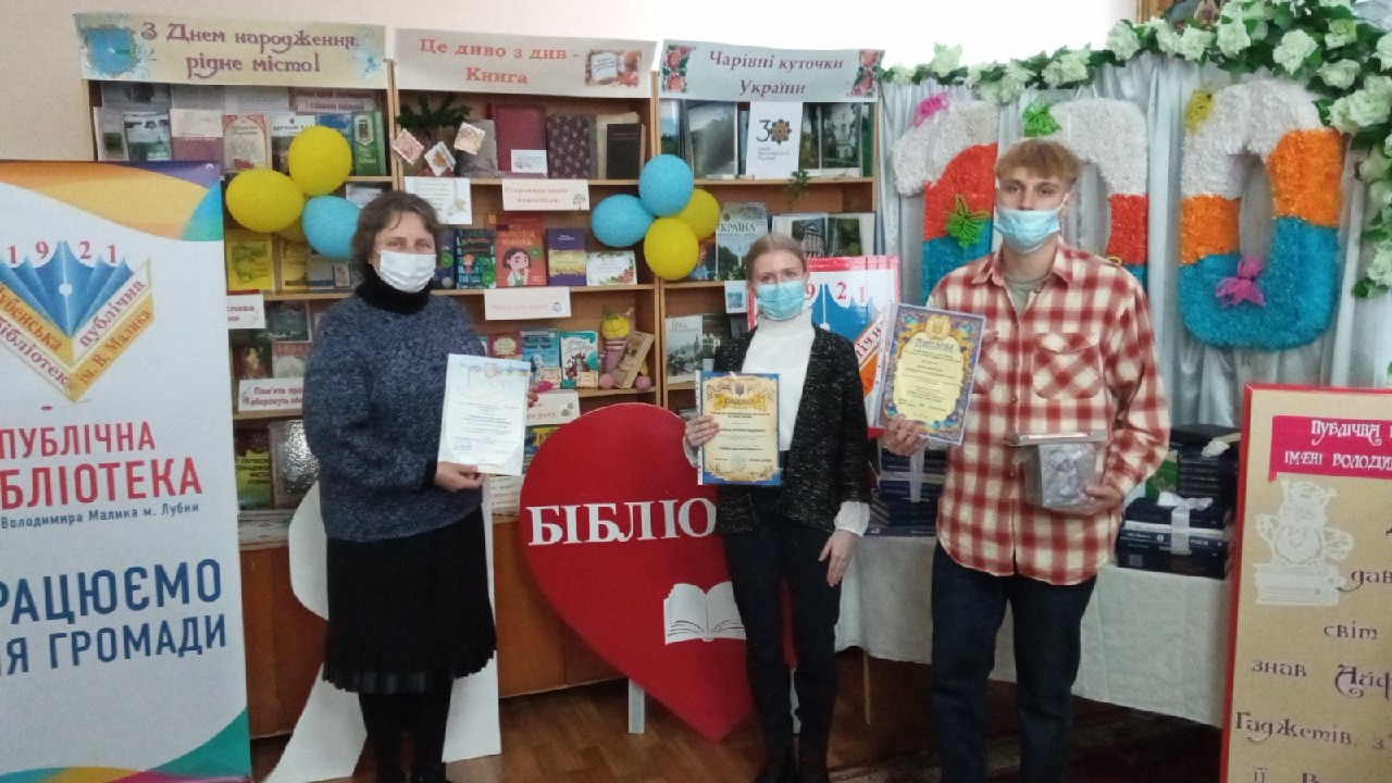 Грамотою Управління культури і мистецтв виконавчого комітету Лубенської міської ради нагороджено пошуковий загін «Зерно просвіти»Лубенської ЗОШ №1 I-III ступенів за пошукову роботу з історії бібліотечного руху на Лубенщині, керівники Світлана Шуляк та Тетяна Шелег. Диплом департаменту культури і туризму Полтавської обласної державної адміністрації третього ступеня принагідно вручено Кулику Руслану, користувачу Публічної бібліотеки та Подяку обласної бібліотеки для юнацтва ім. О.Гончара користувачці філії №2 Лубенська міська бібліотека імені Володимира Леонтовича Катерині Кривець які взяли участь в обласних конкурсах.