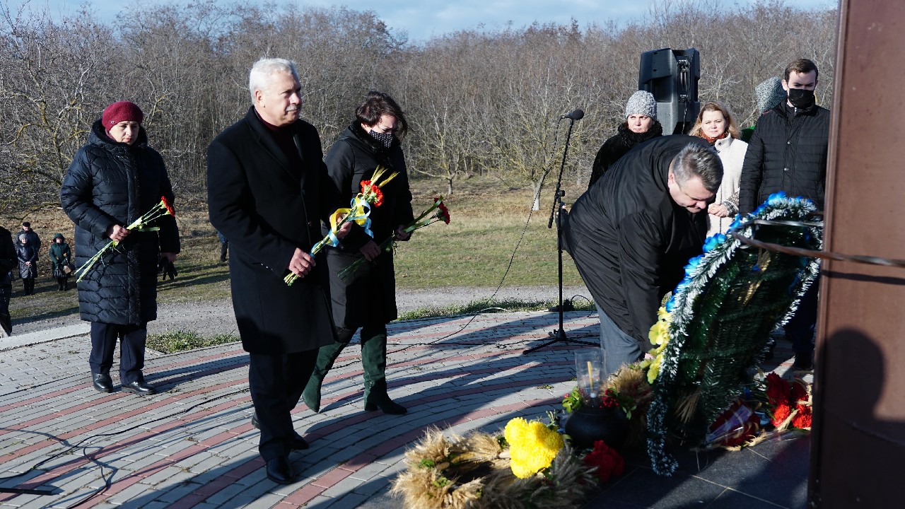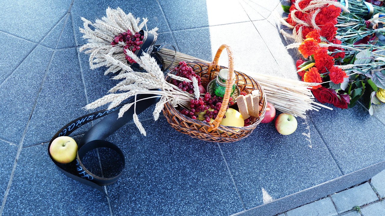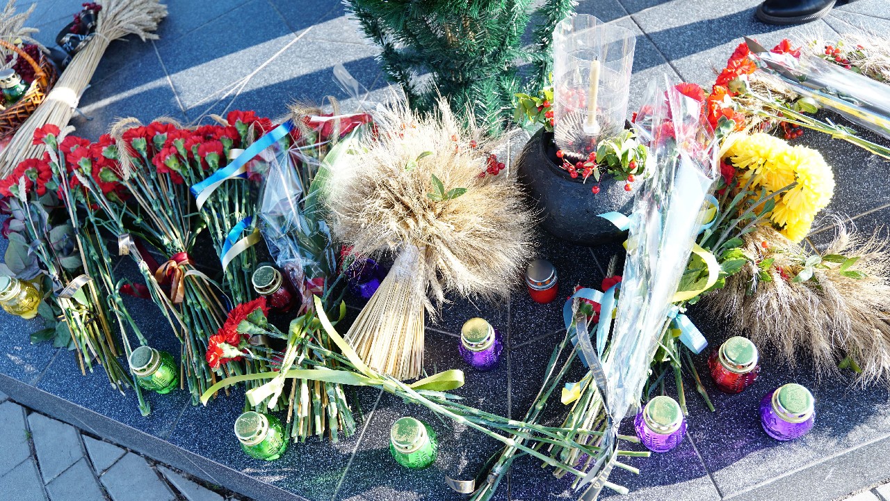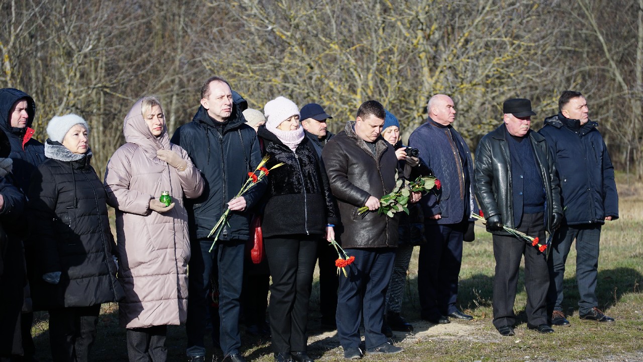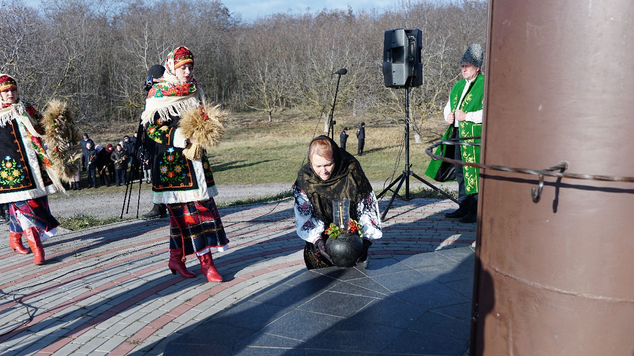 Хвилиною мовчання усі присутні вшанували пам’ять жертв голодоморів, а меморіал "Голодомор -33" прикрасили засвічені лампадки та живі квіти.