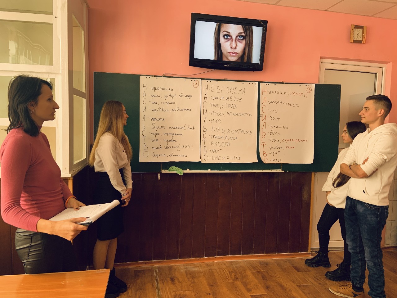 Під час зустрічі зі старшокласниками було обговорено проблему домашнього насильства, його види, ознаки та наслідки. Діти дізналися, як реагувати та як діяти, якщо вони стали свідками чи постраждали від домашнього насильства. У ході заняття було показано науково-пізнавальні відеоролики, які спонукали підлітків до емоційної та жвавої дискусії, також поширено інформаційні матеріали: «Про домашнє насильство простими словами», «Як реагувати на домашнє насильство, якщо ви стали його свідком», «Як допомогти близькій людині, яка зазнає домашнього насильства», і надано контакти допомоги у випадку домашнього та/або гендерно зумовленого насильства.