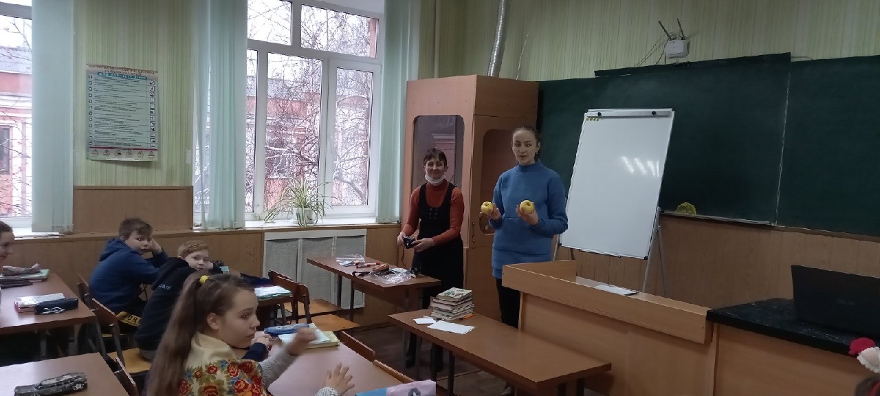 Щоб краще зрозуміти, як цькування впливає на людину, діти розіграли історію «Про два яблука». Завдання полягало у тому, щоб знайти у гарному яблуку щось собі не до смаку і вдарити ним по столу. Після цього яблуко розрізали і побачили, що воно зіпсоване всередині, хоча зовні два яблука залишилися однаковими. Так і булінг – якщо людину без причини, заради розваги чи вигоди для себе, весь час ображати, вона зазнає великих душевних страждань, які скалічать її душу, навіть якщо зовні цього не буде видно.