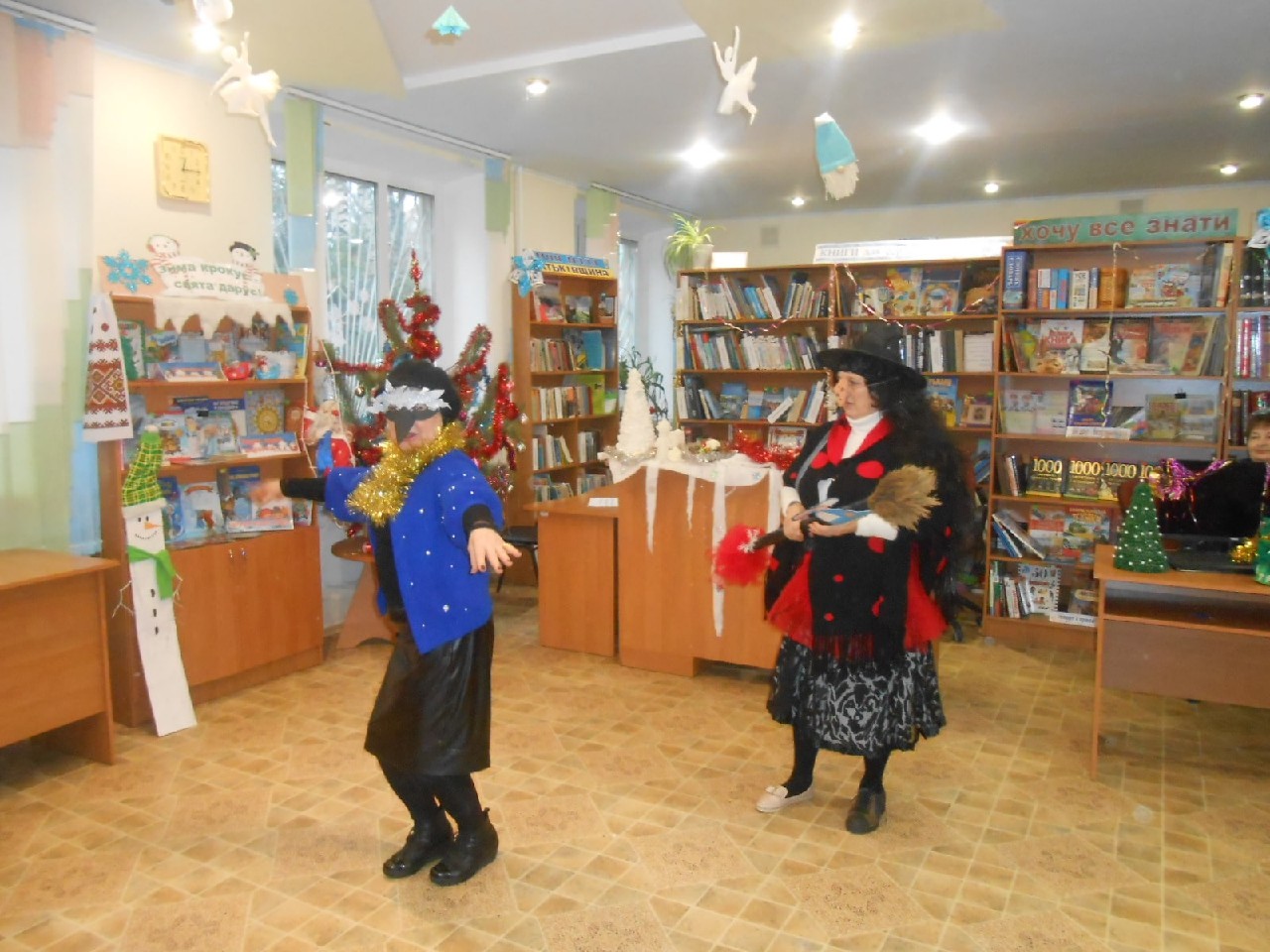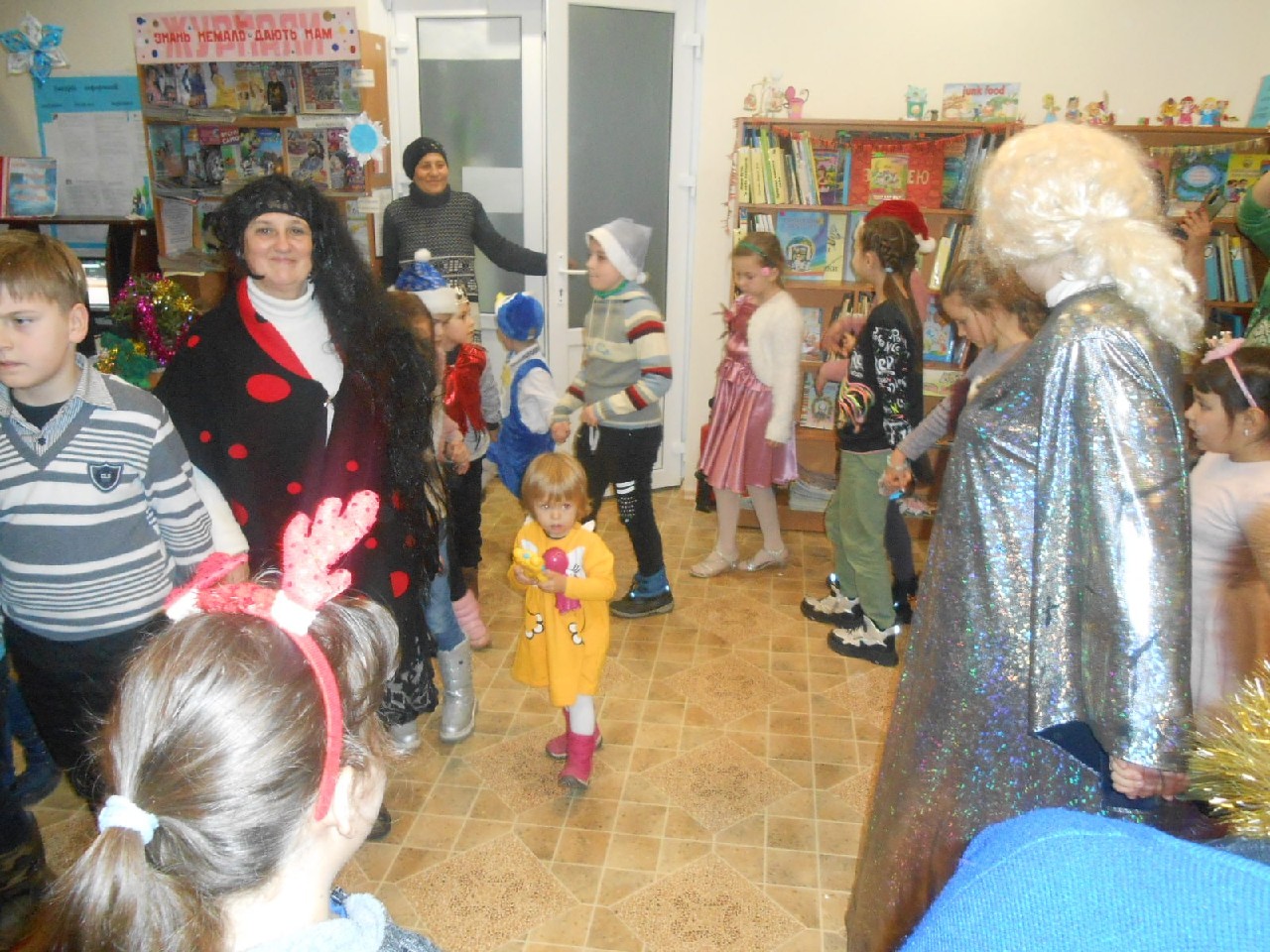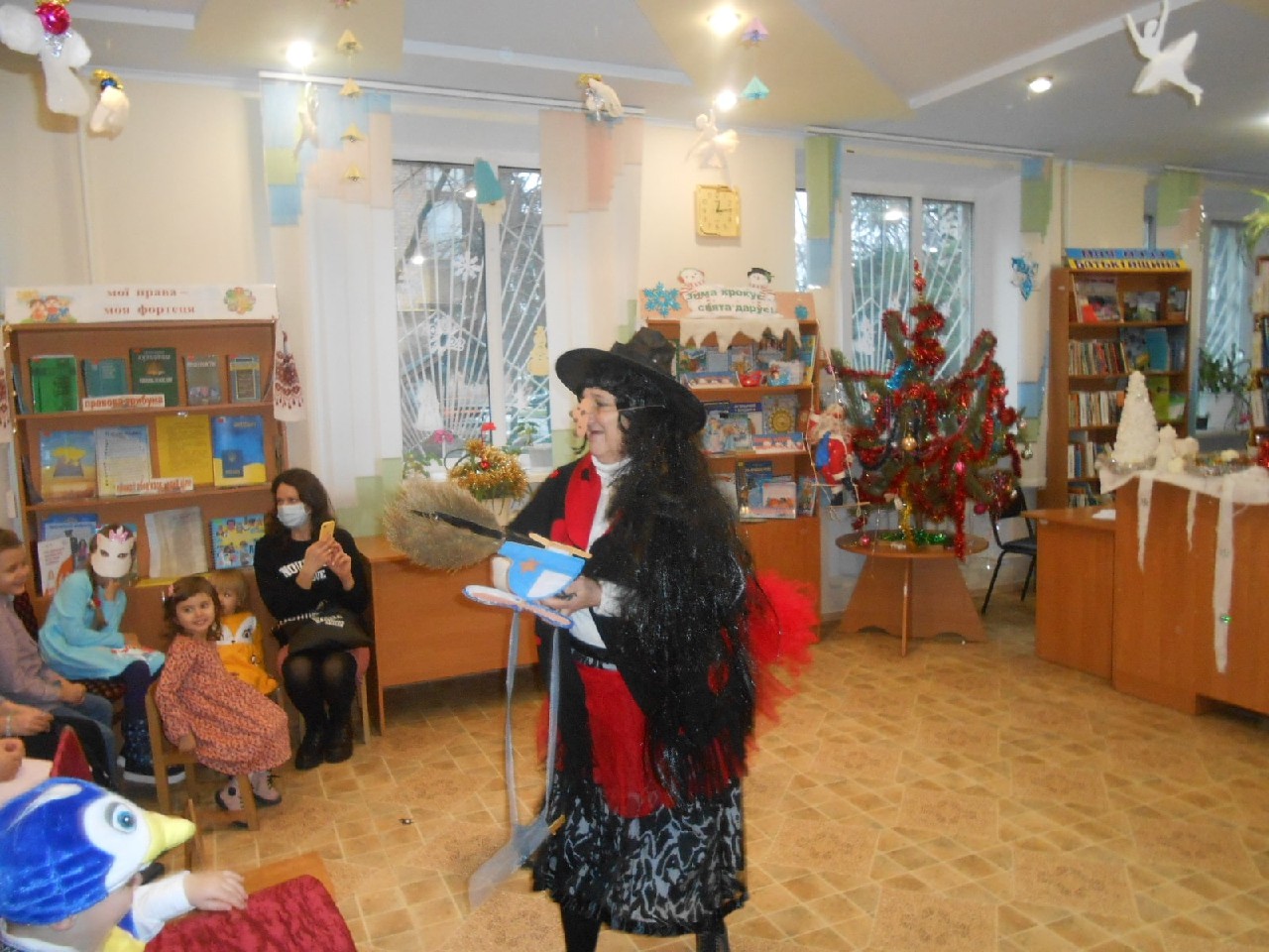 Розважали дітей Бібліогосподиня, Зима-чарівниця, Баба Яга, Ворона Кармен, Карабас-Барабас, ролі яких виконали працівники книгозбірні. А діти також потішили активністю, артистизмом, ерудованістю, щирою дитячою радістю.