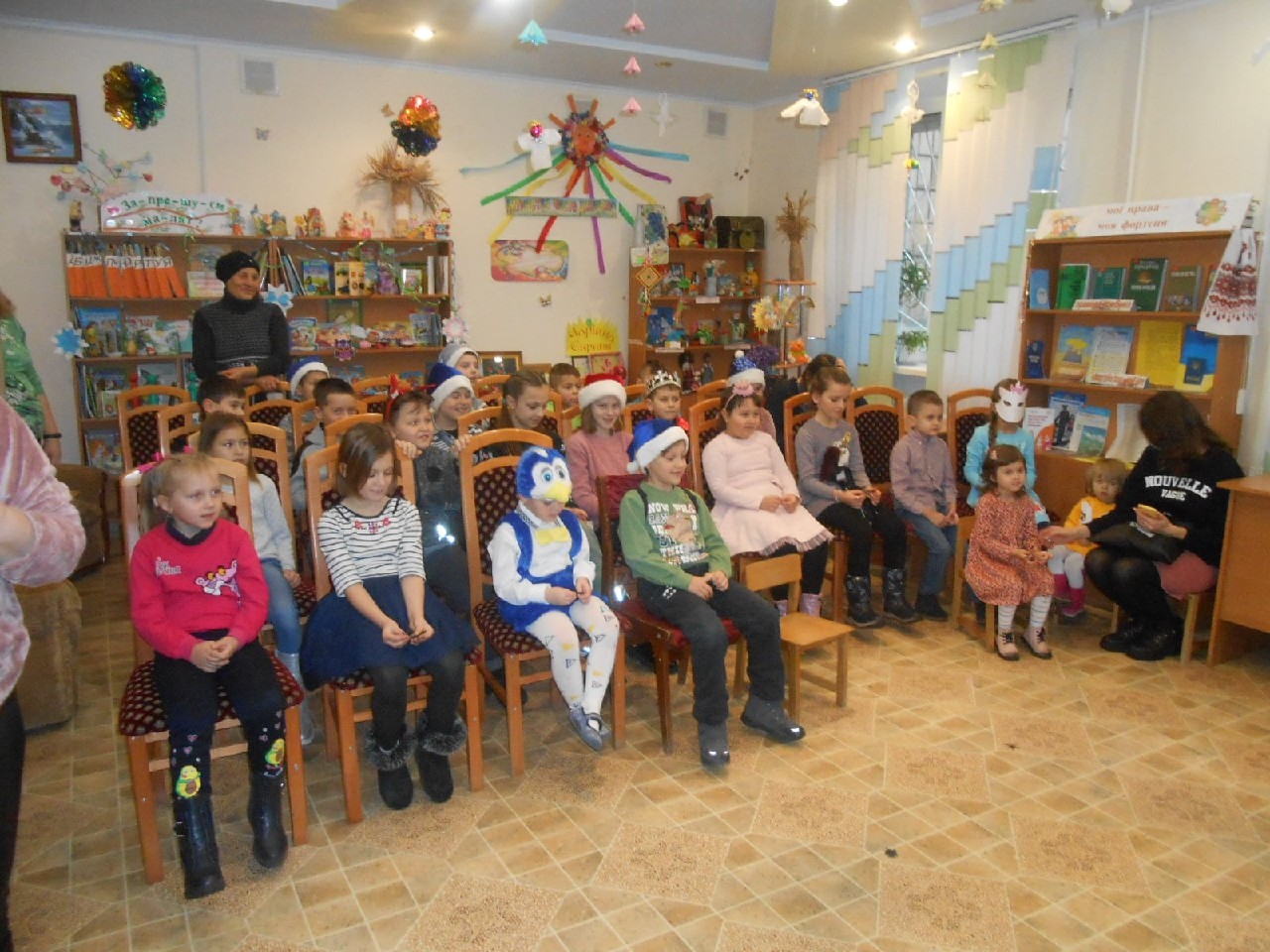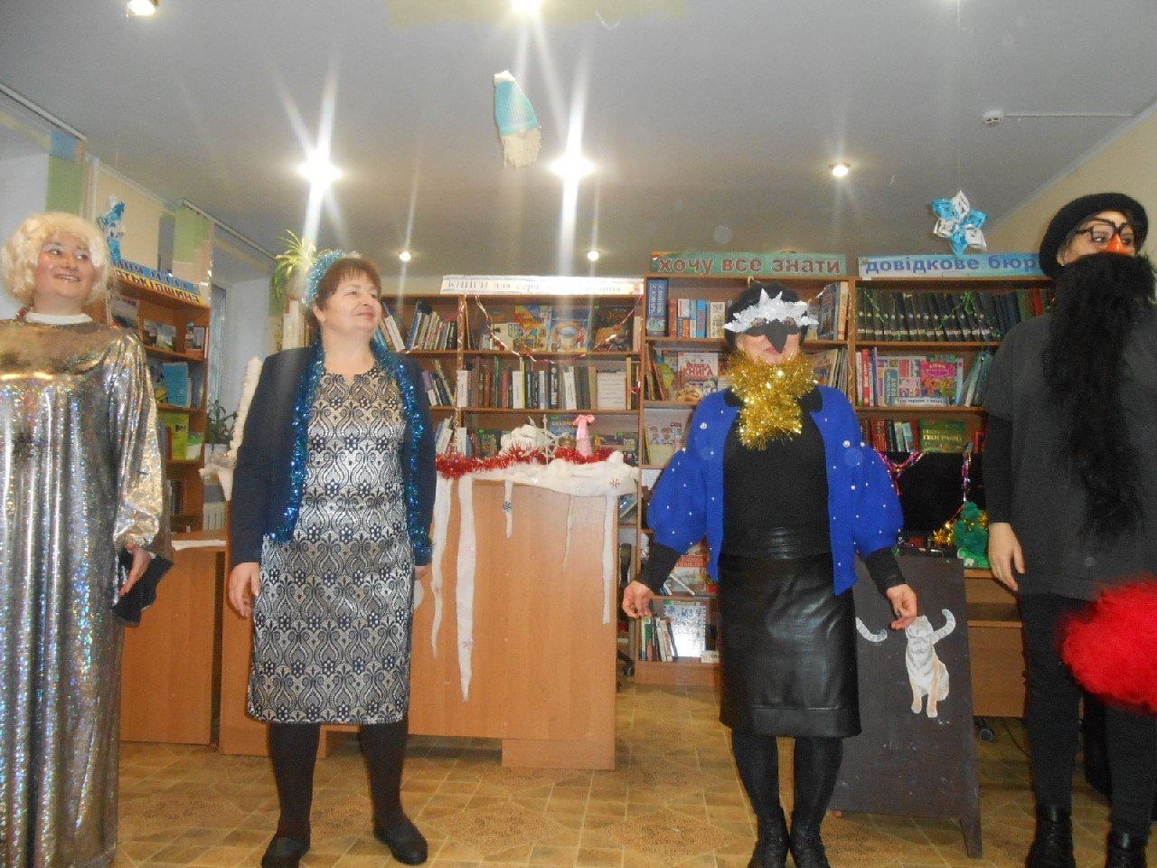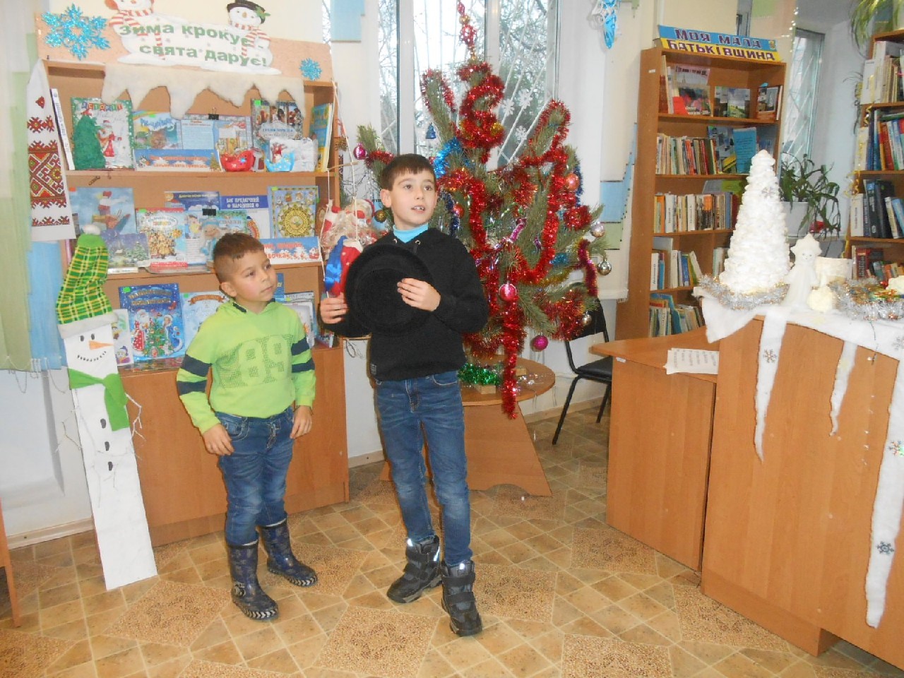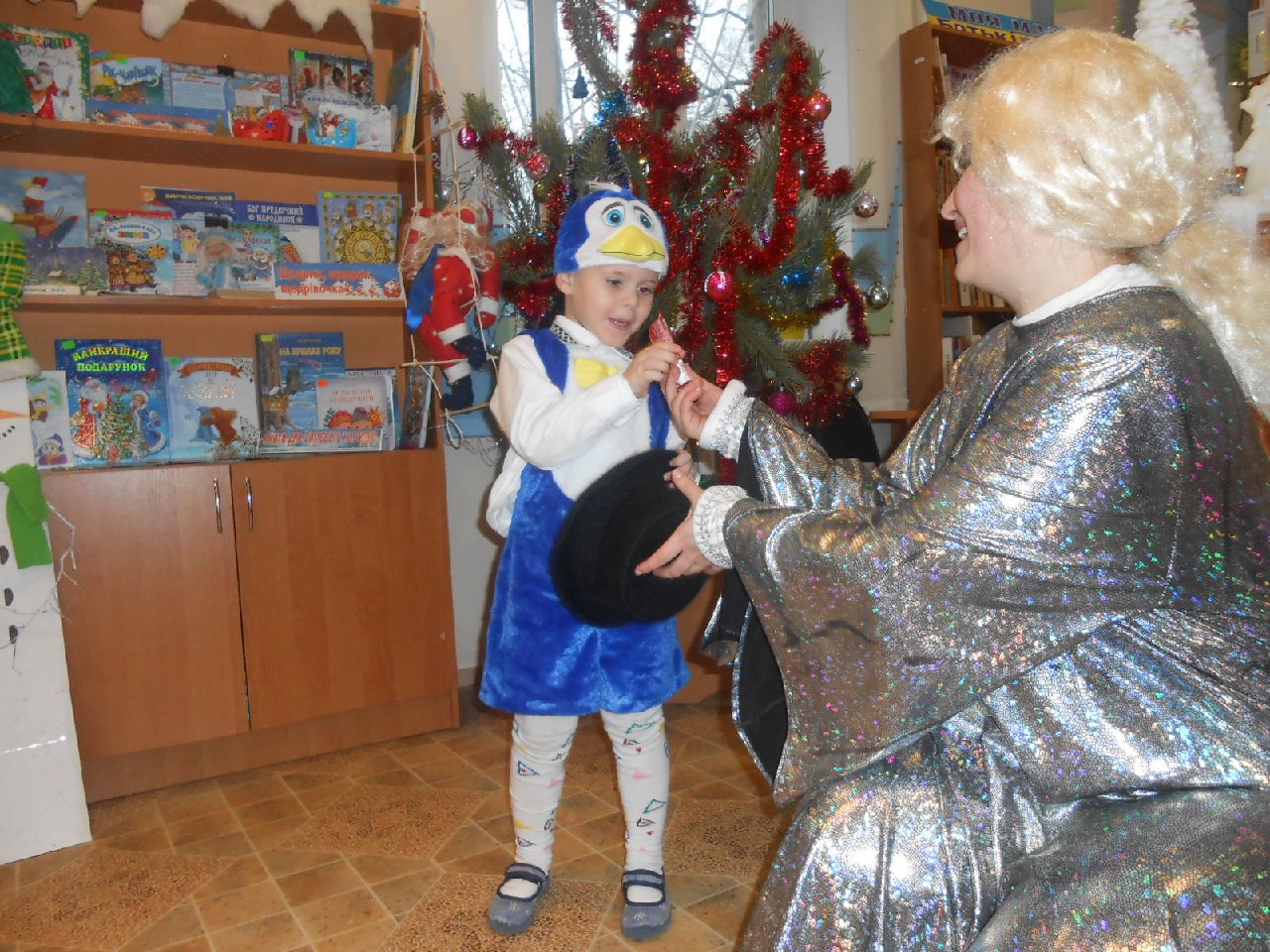 Розважали дітей Бібліогосподиня, Зима-чарівниця, Баба Яга, Ворона Кармен, Карабас-Барабас, ролі яких виконали працівники книгозбірні. А діти також потішили активністю, артистизмом, ерудованістю, щирою дитячою радістю.