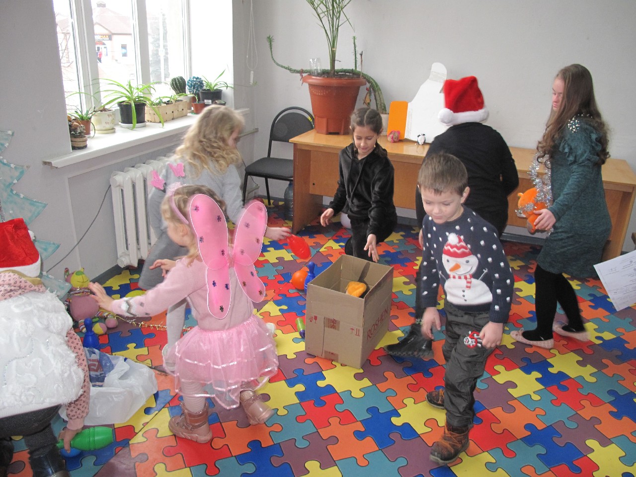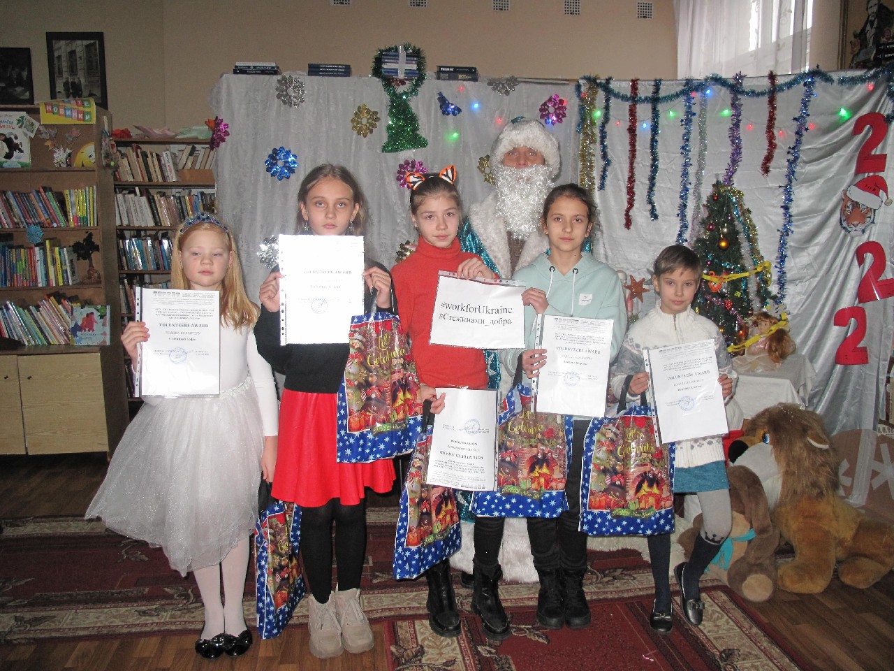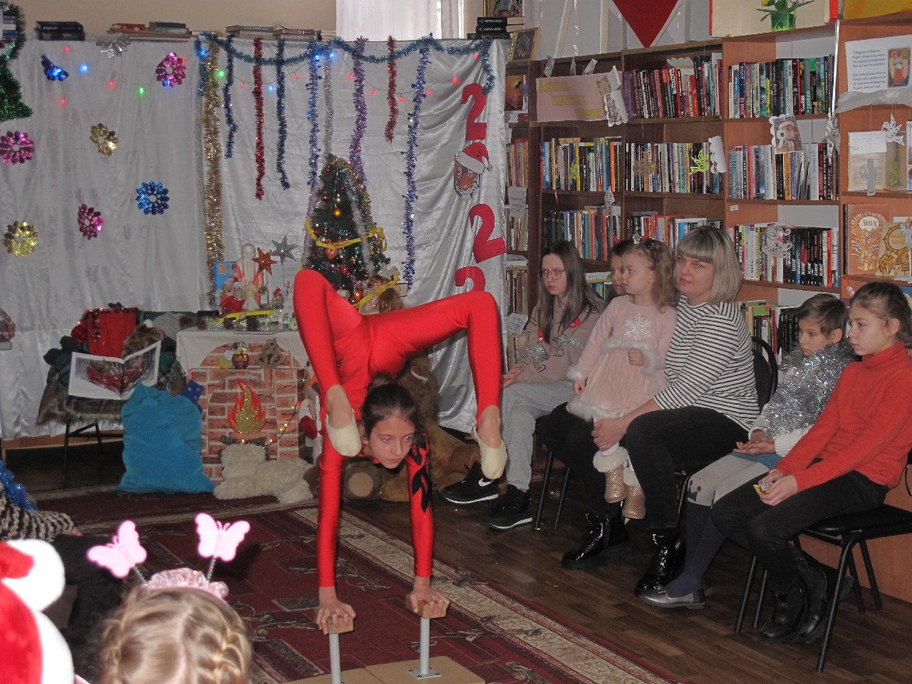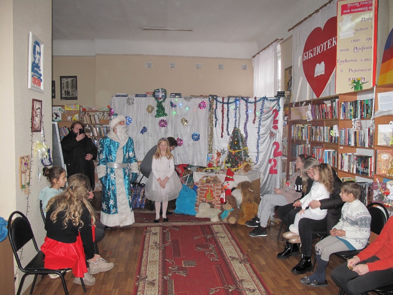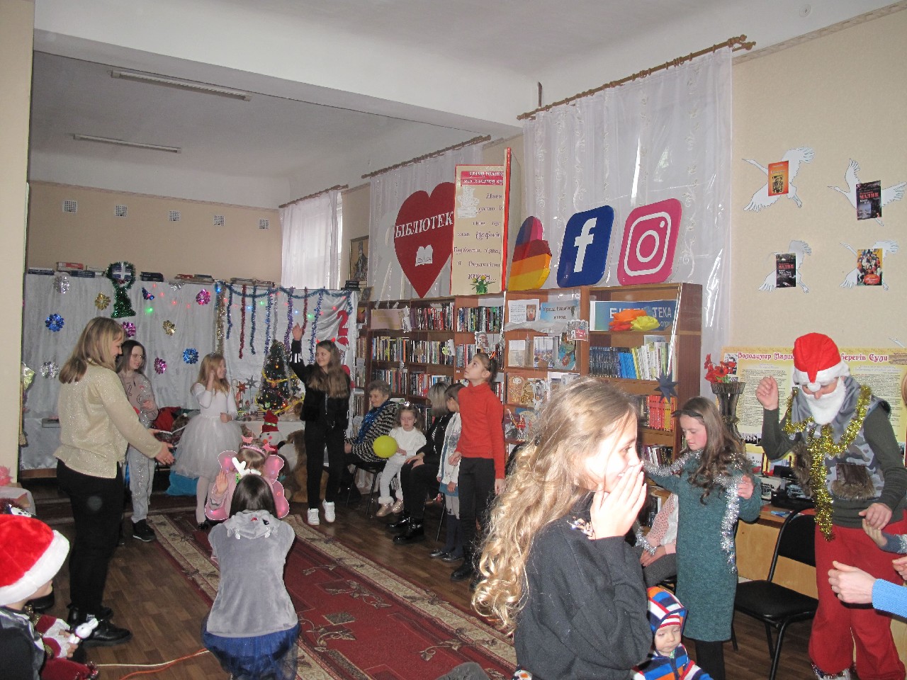 Весела Новорічна круговерть захопила всіх учасників заходу. Бібліотекар відділу обслуговування Ольга Шевельова запросила малят до цікавого дійства, влаштувавши інтерактивну гру «Рукавичка». А ще були жваві руханки та хоровод, гімнастичний номер у виконанні Мар’янки Лисенко, пісенька про маму Віки Слюсаренко та щедрівочка Даринки Карпухіної. Так бібліотека запалила зірочки юних талантів, користувачів книгозбірні. Насамкінець дітки отримали від Дідуся Мороза та Снігуроньки новорічні подарунки. Солодощі люб’язно надали добродійники компанії «Тандем» Ян Вікторович Сазанков та Сергій Вікторович Кочерга. На завершення дійства директор Публічної бібліотеки імені Володимира Малика Валентина Сьомак привітала дітей та їх рідних з прийдешніми святами.