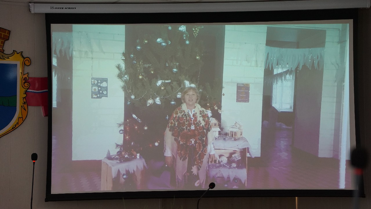 Перед показом відеопрезентаційних матеріалів виступила начальник відділу сім’ї, молоді та спорту Світлана Скиба, яка відзначила активну участь усіх шкіл Лубенщини, креативність, майстерність та багатство фантазії авторів новорічних поробок, фотозон, оформлення навчальних закладів та класів, святкових привітань тощо.