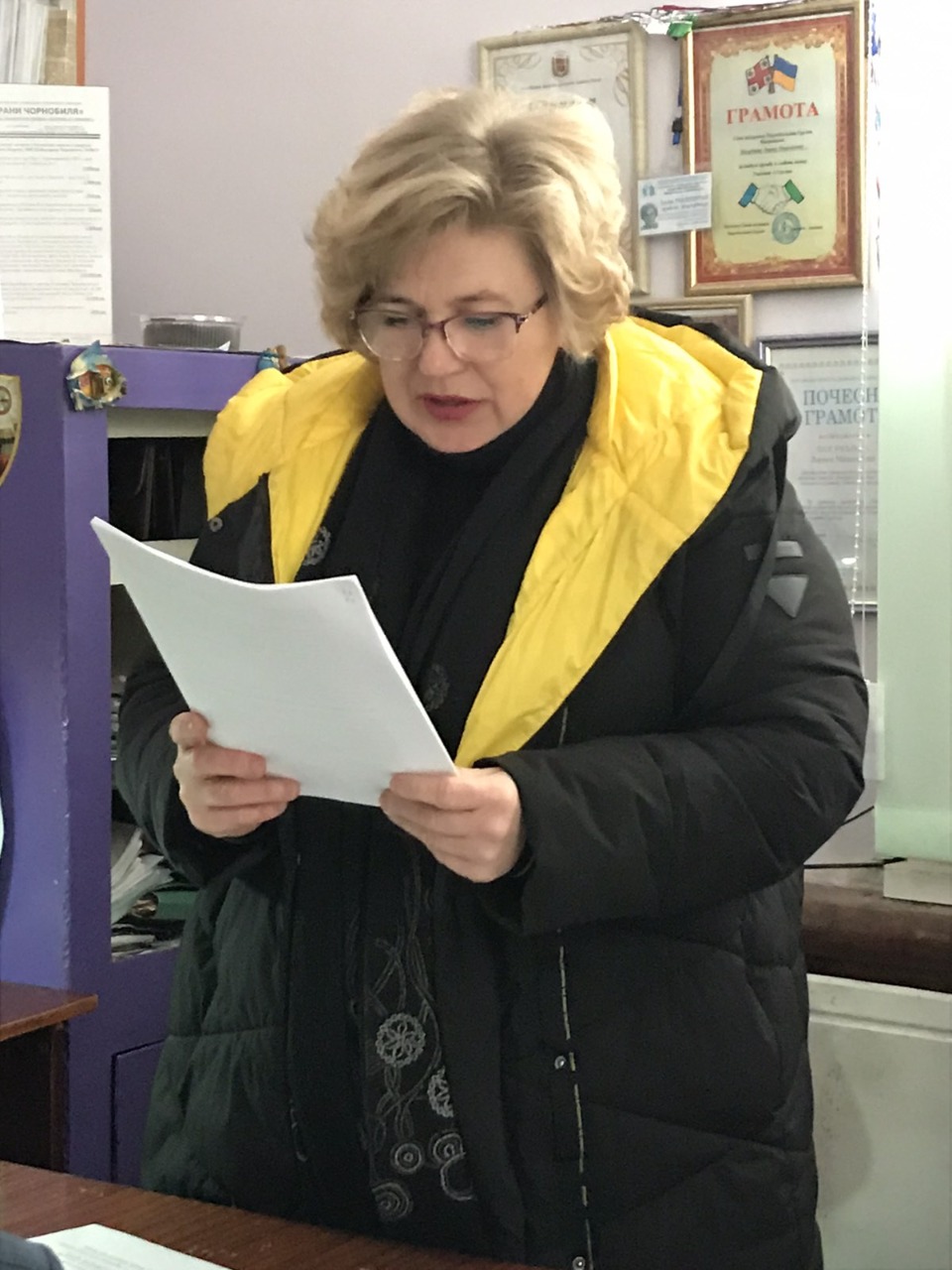 Відкривала збори головуюча Тетяна Дем’янчук і оскільки голова організації Віктор Собко був відсутнім, то звіт про проведену роботу зачитала його заступник Лариса Погребняк. Зокрема Лариса Миколаївна надала вичерпну інформацію про роботу самого Правління ЛМГОІ "Ветерани Чорнобиля".