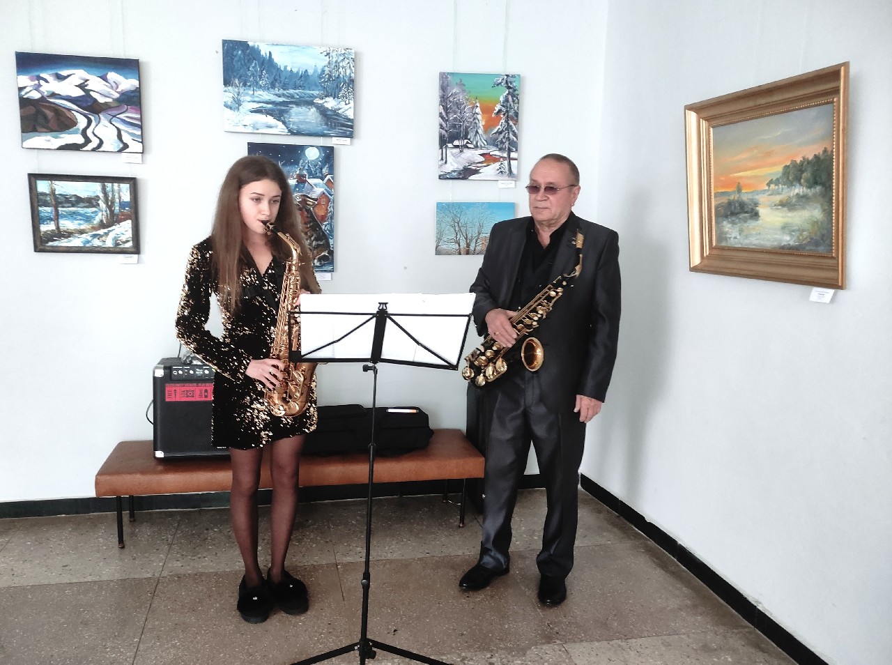 Завдяки викладачу Лубенської мистецької школи Валерію Рябцеву та його талановитій учениці Єві Данилко цінителі прекрасного могли вбирати красу не лише очима, а й на слух: прекрасні музичні композиції слугували чудовим фоном і створювали атмосферу умиротворення.