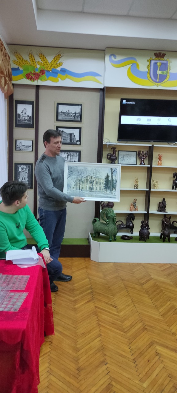 Учасник зустрічі, лубенський художник Олександр Мірошніченко зробив музею чудовий подарунок, він передав до фондів закладу картину із зображенням архітектурної пам’ятки міста- будівлі Лубенської жіночої гімназії. Чудові спікери, тепла атмосфера об’єднала навколо вивчення історії людей різних міст, віку та професій. Музейний працівник Тетяна Сафронова подякувала любителям історії за активну участь у пізнавальних музейних зустрічах та за подарунки до музейних фондів.