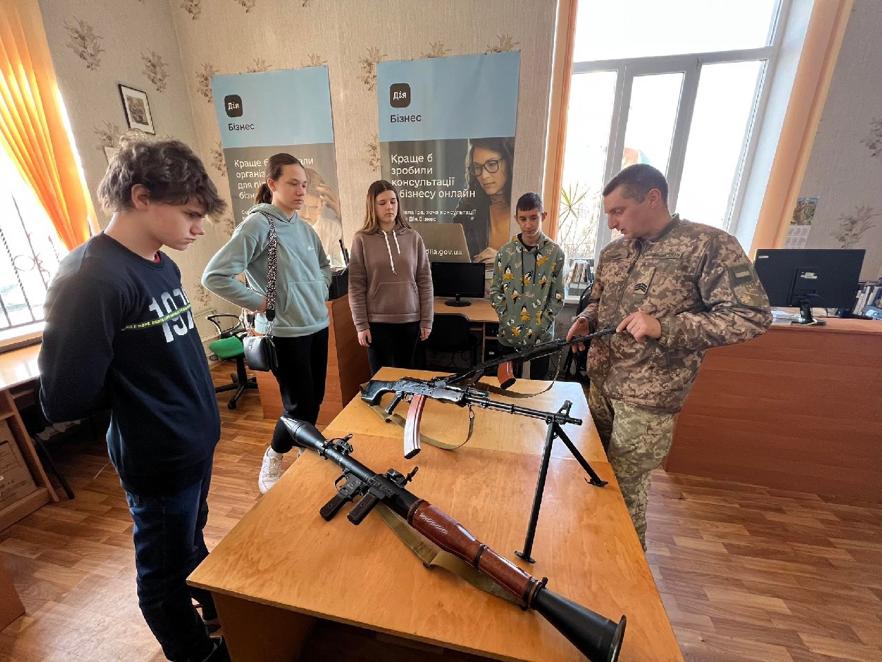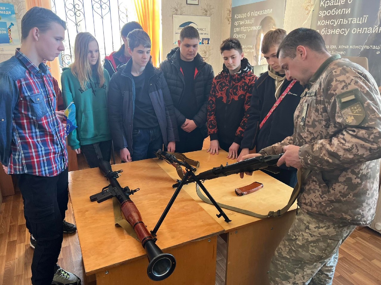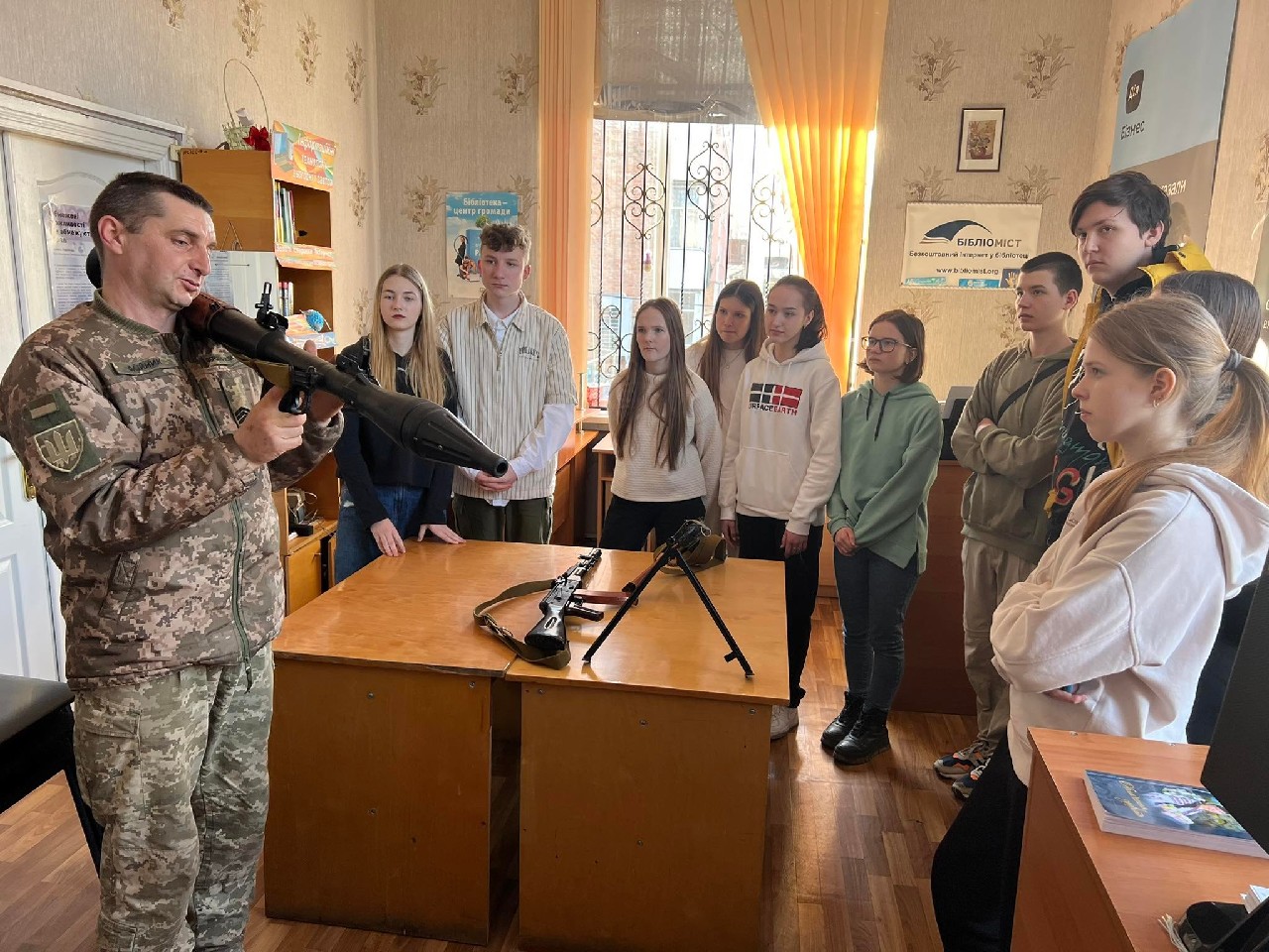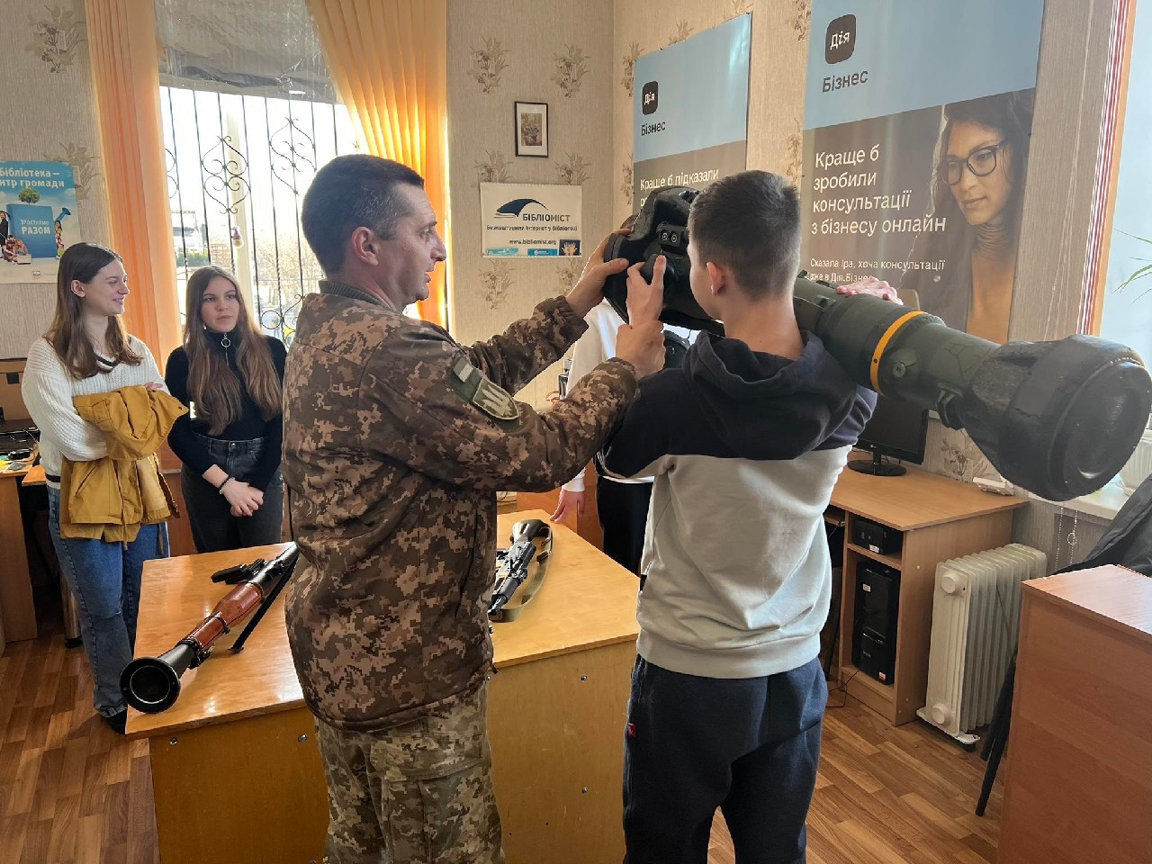 Родзинкою «Живої бібліотеки» в цей день стала можливість старшокласникам, завдяки мультимедійній системі, яку надав Лубенський територіальний центр комплектування та соціальної підтримки в реальному часі побувати в цифровому тиру та показати своє вміння.
