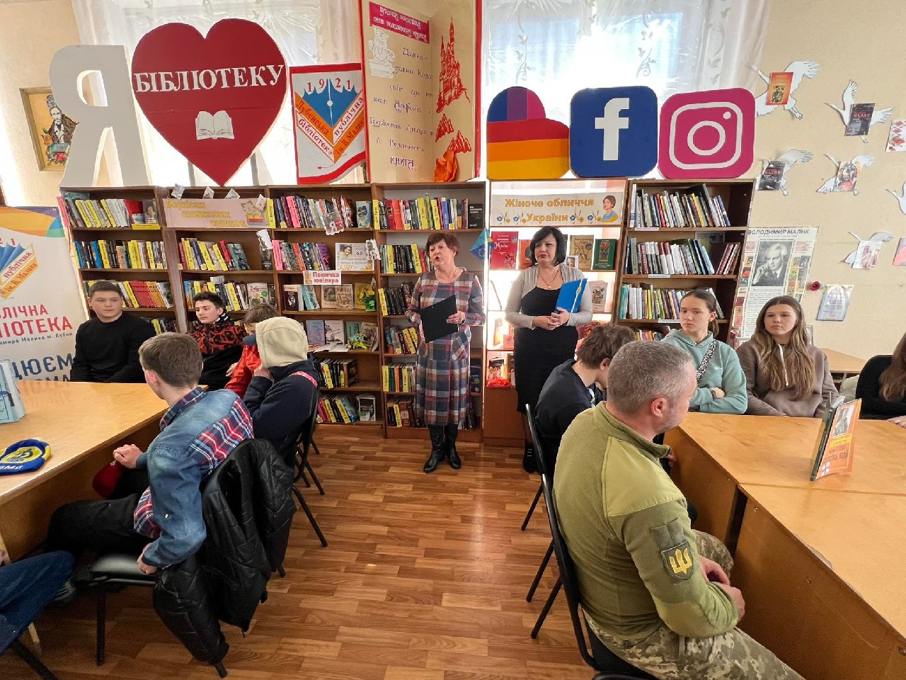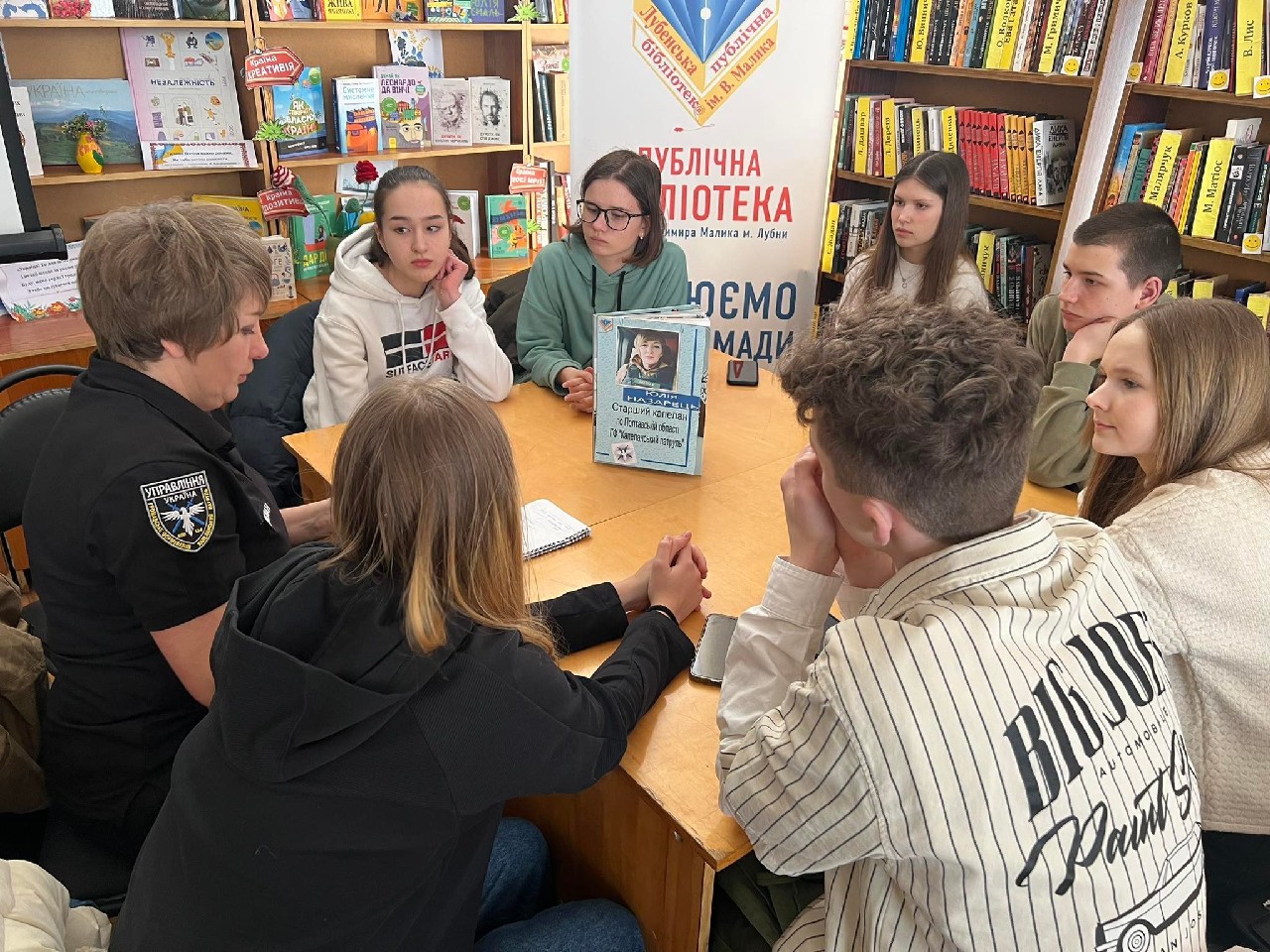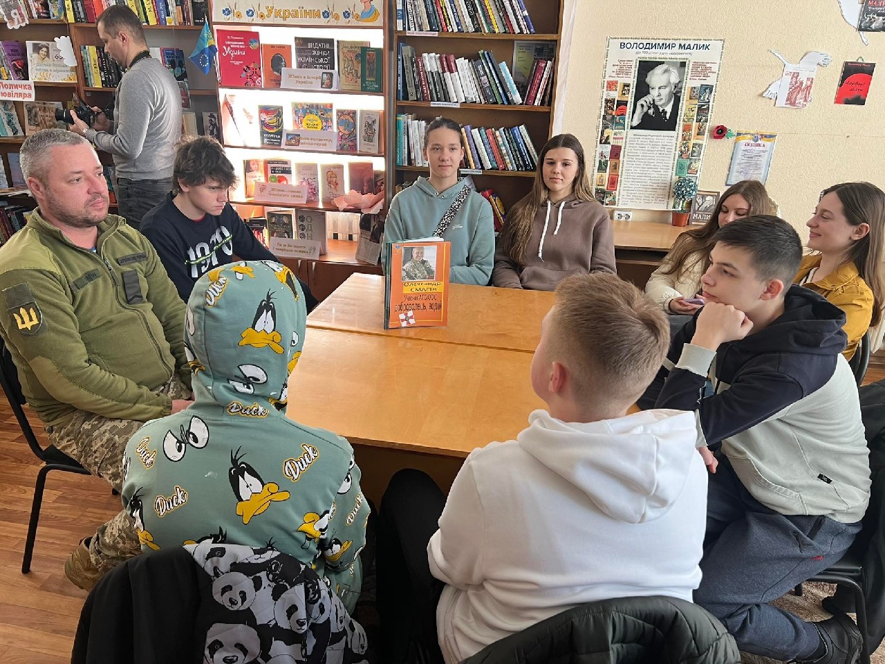 14 березня, з нагоди Дня українського добровольця, в гості до читачів (учнів 9-х класів Лубенської спеціалізованої школи I – III ступенів №6) Публічної бібліотеки ім. В. Малика завітали гості – Андрій Олійник, інструктор з медійної системи, Віталій Шокотько, інструктор відділу рекрутингу, Олександр Смагін, учасник АТО/ООС, доброволець, водій Лубенського РТЦК та ПС, Юлія Назарець, старший капелан по Полтавській області ГФ «Капеланський патруль», Олександр Назарець, волонтер волонтерської групи «З РУК В РУКИ» - це були Книжки. Відбулася акція «Живої книги». Жива книга – «це інтерактивний захід, що надає людський вимір ідеї полікультурності, оскільки сприяє початку спілкування між людьми, які походять з різних соціально-етнічних контекстів. Захід отримав таку назву, оскільки для опису його учасників, організаторів та діяльності використовується бібліотечна термінологія». Розпочався захід із вшанування пам’яті Героїв хвилиною мовчання.