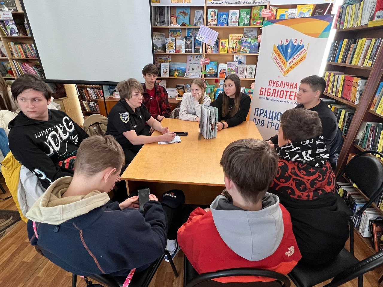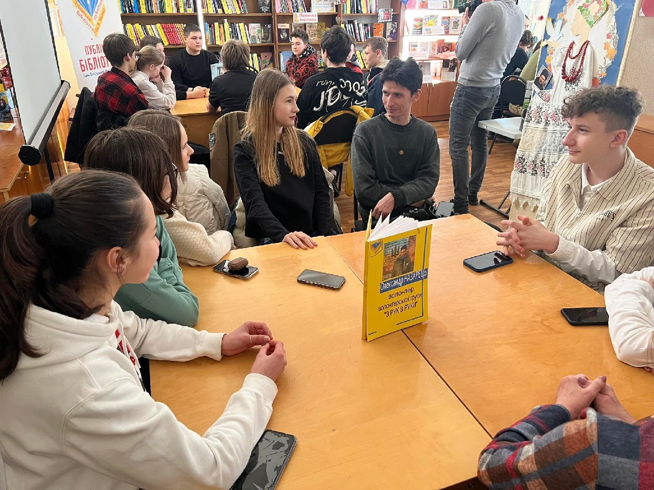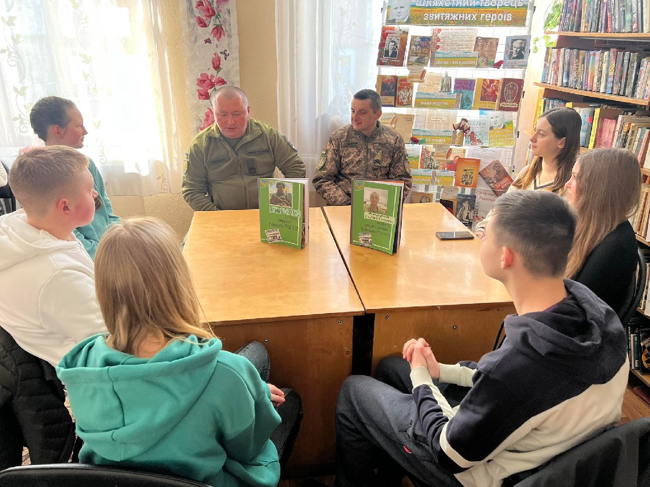 14 березня, з нагоди Дня українського добровольця, в гості до читачів (учнів 9-х класів Лубенської спеціалізованої школи I – III ступенів №6) Публічної бібліотеки ім. В. Малика завітали гості – Андрій Олійник, інструктор з медійної системи, Віталій Шокотько, інструктор відділу рекрутингу, Олександр Смагін, учасник АТО/ООС, доброволець, водій Лубенського РТЦК та ПС, Юлія Назарець, старший капелан по Полтавській області ГФ «Капеланський патруль», Олександр Назарець, волонтер волонтерської групи «З РУК В РУКИ» - це були Книжки. Відбулася акція «Живої книги». Жива книга – «це інтерактивний захід, що надає людський вимір ідеї полікультурності, оскільки сприяє початку спілкування між людьми, які походять з різних соціально-етнічних контекстів. Захід отримав таку назву, оскільки для опису його учасників, організаторів та діяльності використовується бібліотечна термінологія». Розпочався захід із вшанування пам’яті Героїв хвилиною мовчання.