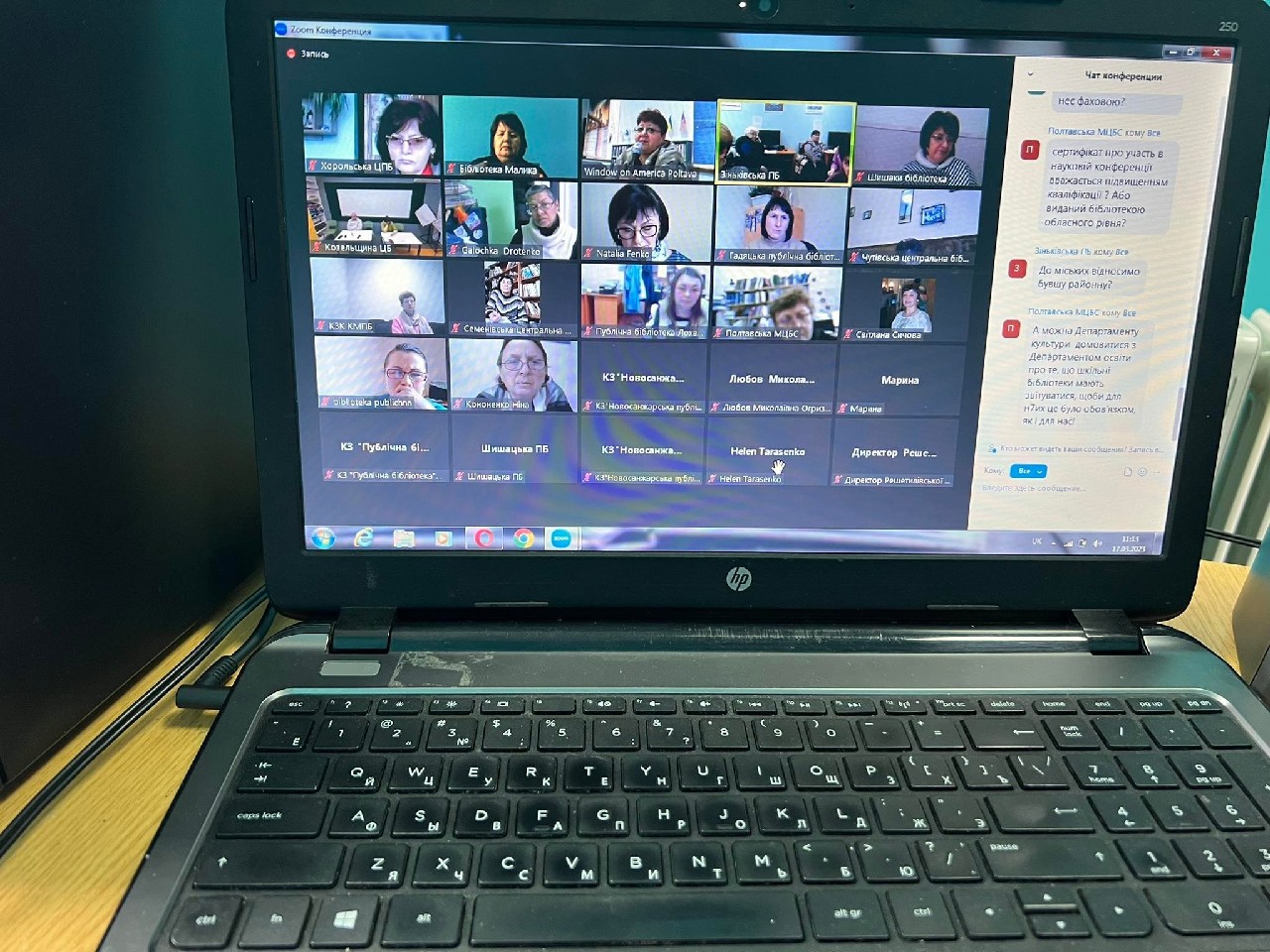 З метою більш детального розгляду даного питання 17 березня фахівцями науково-методичного відділу Полтавської обласної універсальної наукової бібліотеки ім. І. П. Котляревського, для методичних служб області, було проведено онлайн Годину професійного спілкування. Завідувач науково-методичного відділу Любов Іванівна Чорноволенко наголосила на важливості оновленої державної статистичної звітності та детально зупинилася на розділах форм, як для окремих бібліотек, так і зведених для публічних та спеціальних бібліотек.