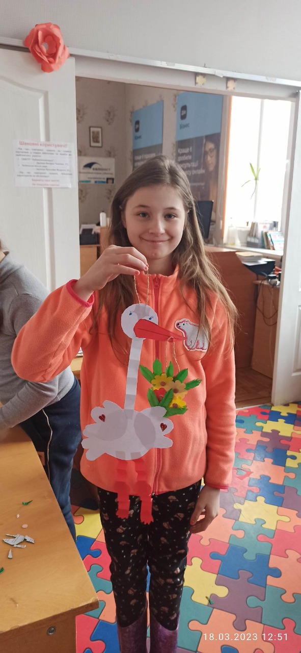 В Україні лелека вважається вісником весни, а лелече гніздо на подвір’ї приносить щастя, удачу та добробут. Сподіваємось, виготовлені руками дітей лелеки також принесуть їхнім родинам щастя та гармонію.