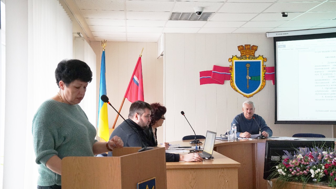 Розпочавши розгляд планових питань, перш за все, заслухали виступ головного спеціаліста відділу комунального господарства та капітального будівництва Управління житлово-комунального господарства Євгена Якименка, який доповідав з наступних питань: про проведення двомісячника чистоти, озеленення та благоустрою території Лубенської територіальної громади, про затвердження переліку обʼєктів та видів робіт для відбування покарання у виді громадських робіт та про затвердження проєктної документації. Проєкти цих рішень затверджено після того, як доповідач відповів на поставлені запитання.