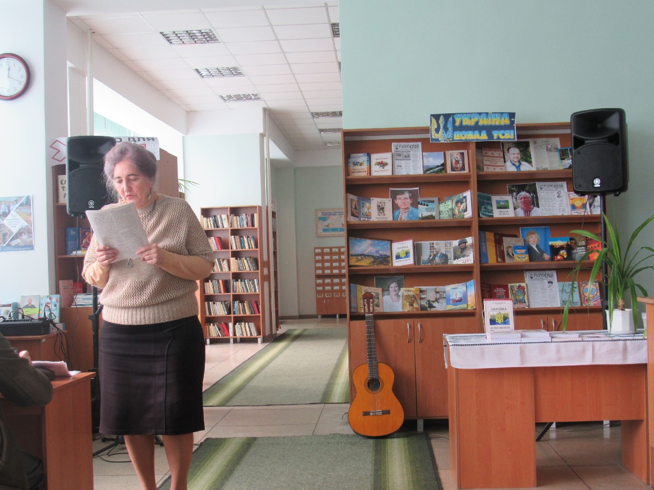 Патріотична поезія корифеїв поетичного слова України гучно лунала у читальному залі книгозбірні, запалюючи незгасимий вогонь світла, добра правди і любові у серцях щирих українців.Вірою в перемогу були сповнені виступи майстрів пера Наталії Баклай, Олександра Міщенка, Ніни Третяк, Бориса Кононенка, Ольги Хало, Олександра Печори, Олега Бородая.