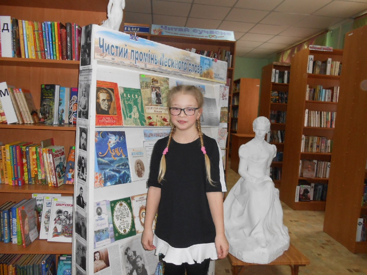 Про ці та інші цікаві факти із біографії Лесі Українки розповіла запрошеним на захід учням 4-А класу ЗОШ №1провідний бібліотекар Тамара Степаненко. Справжньою родзинкою заходу було звучання поетичних рядків відомої поетеси, які майстерно прочитали четвертокласники: Віка Бобкова, Кіра Барташ, Аня Сергієнко, Поліна Купрій, Катя Кучеренко.