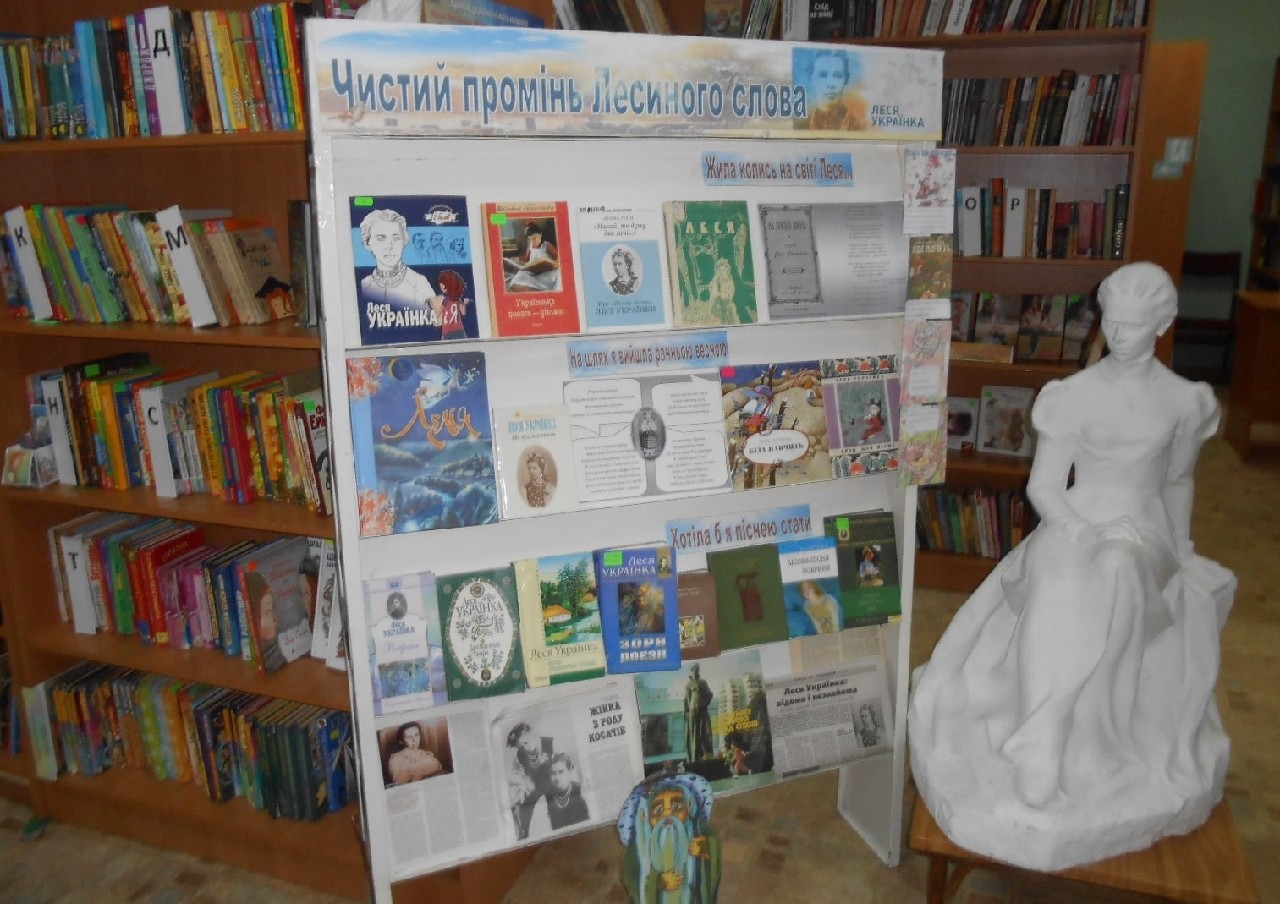 «Чистий промінь Лесиного слова» - під такою назвою в Лубенській міській бібліотеці для дітей оформлена книжкова виставка та проведена літературна година з нагоди 150-річчя від дня народження Лесі Українки.