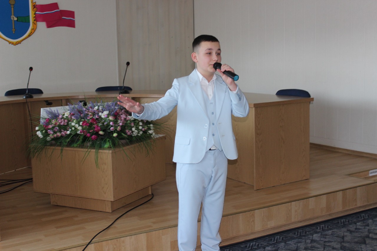 Також з нагоди свята присутніх жінок вітали пісенними композиціями у виконанні викладача вокалу музичної школи Аліни Соломахи та вихованців закладу Назара Петрусенка і Єви Данилко.