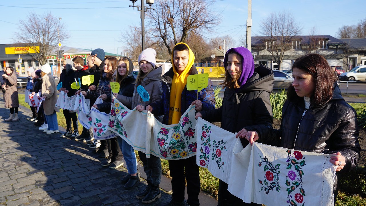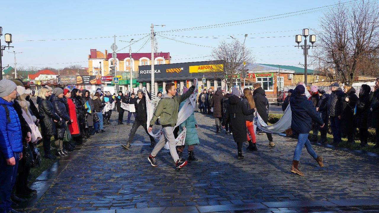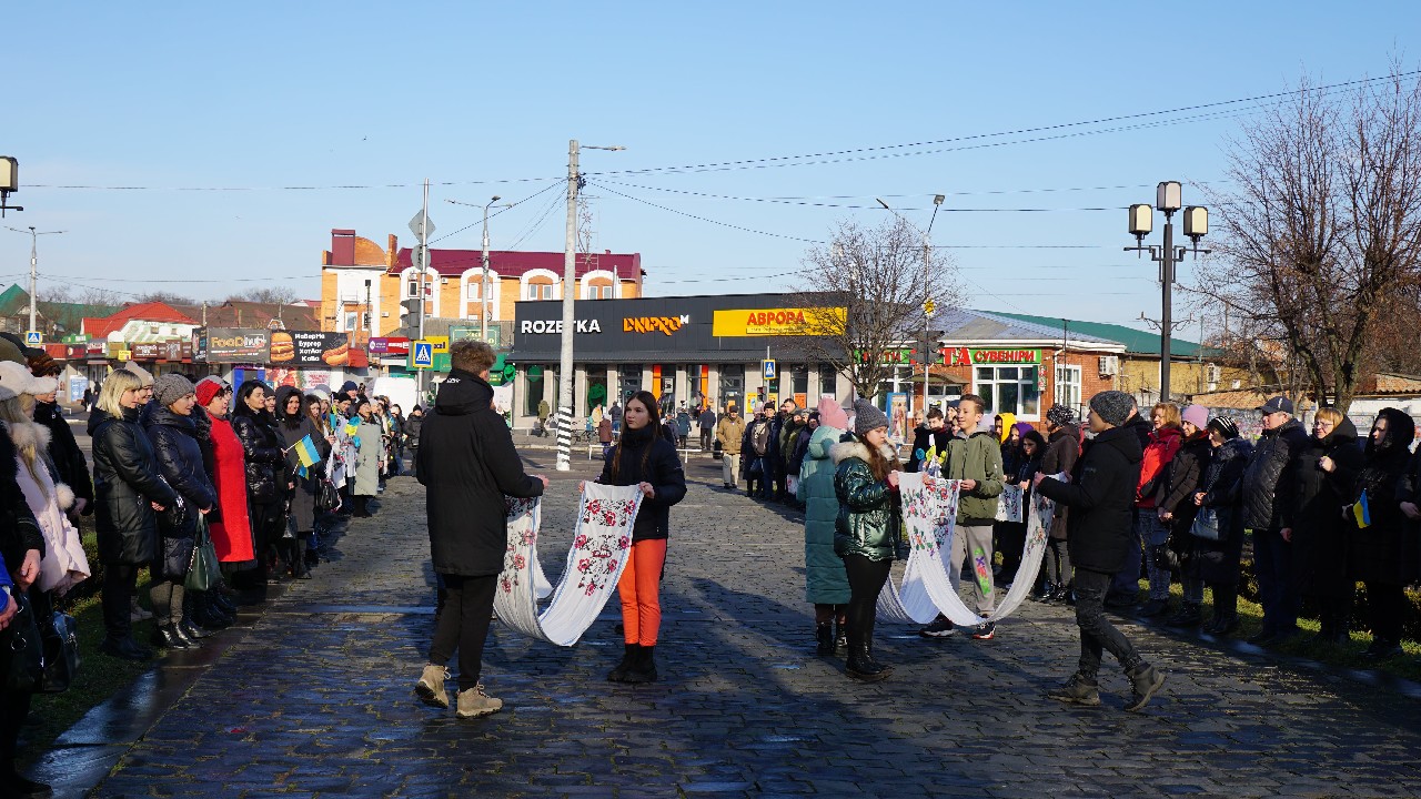 У виконанні вихованця театрального гуртка «Прем’єра» ЛЦДЮТУМ (керівник Ольга Петренко) Дмитра Ешби прозвучав високопатріотичний вірш В.Симоненка «Де зараз ви, кати мого народу?», а довершив урочистий мітинг у центрі Лубен виступ Володимира Матяша, який виконав українську пісню, що підіймає дух, а учні ЗШ №2, учасники студії народного танцю «Юність»(керівник Анатолій Царюк) продемонстрували невелику хореографічну композицію з барвистими вишиваними рушниками - духовними символами українського народу, рідного краю, батьківської оселі, тепла материнських рук. У цих поняттях також соборність нашої держави, за яку віддають життя та продовжують це робити цілі покоління нації.